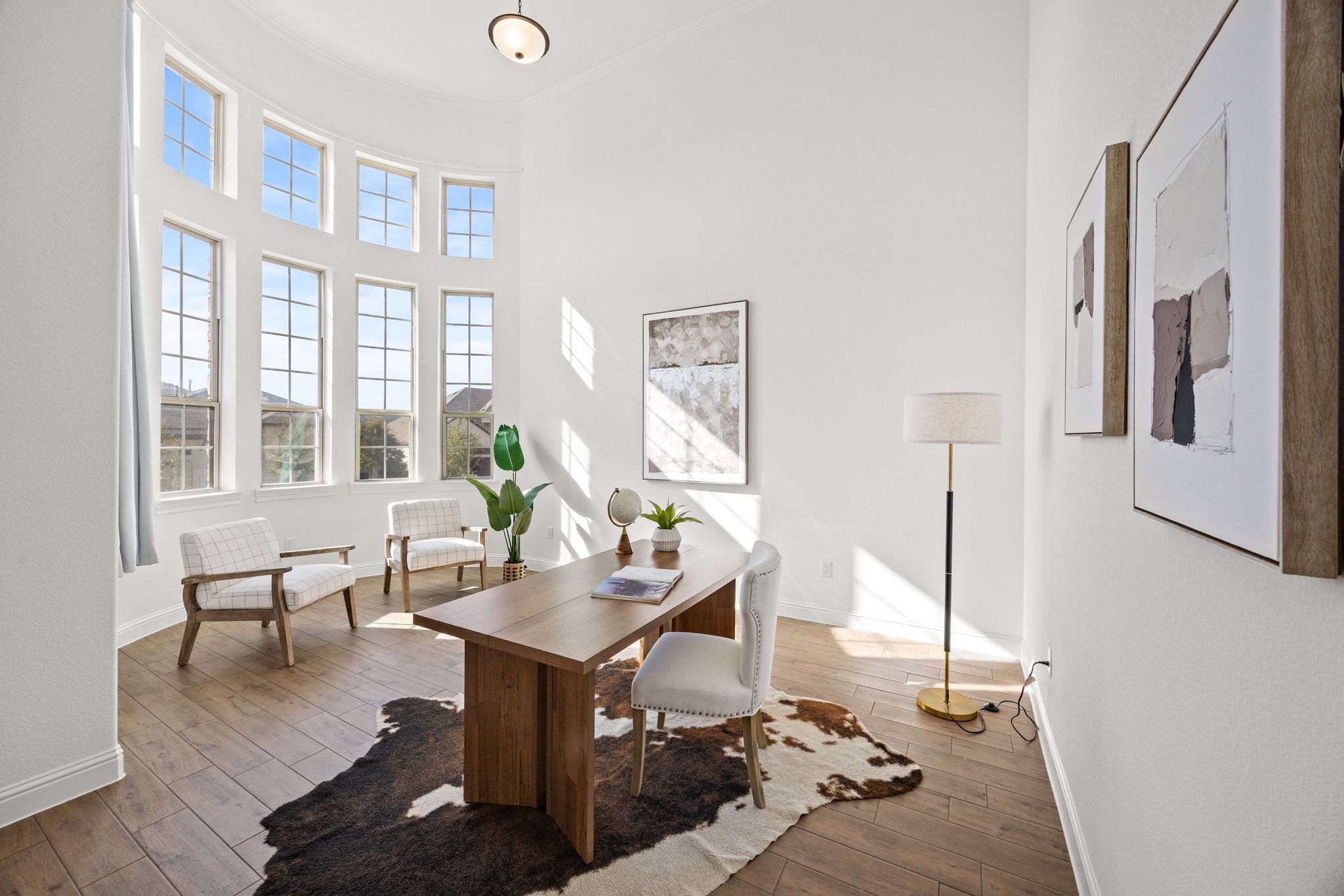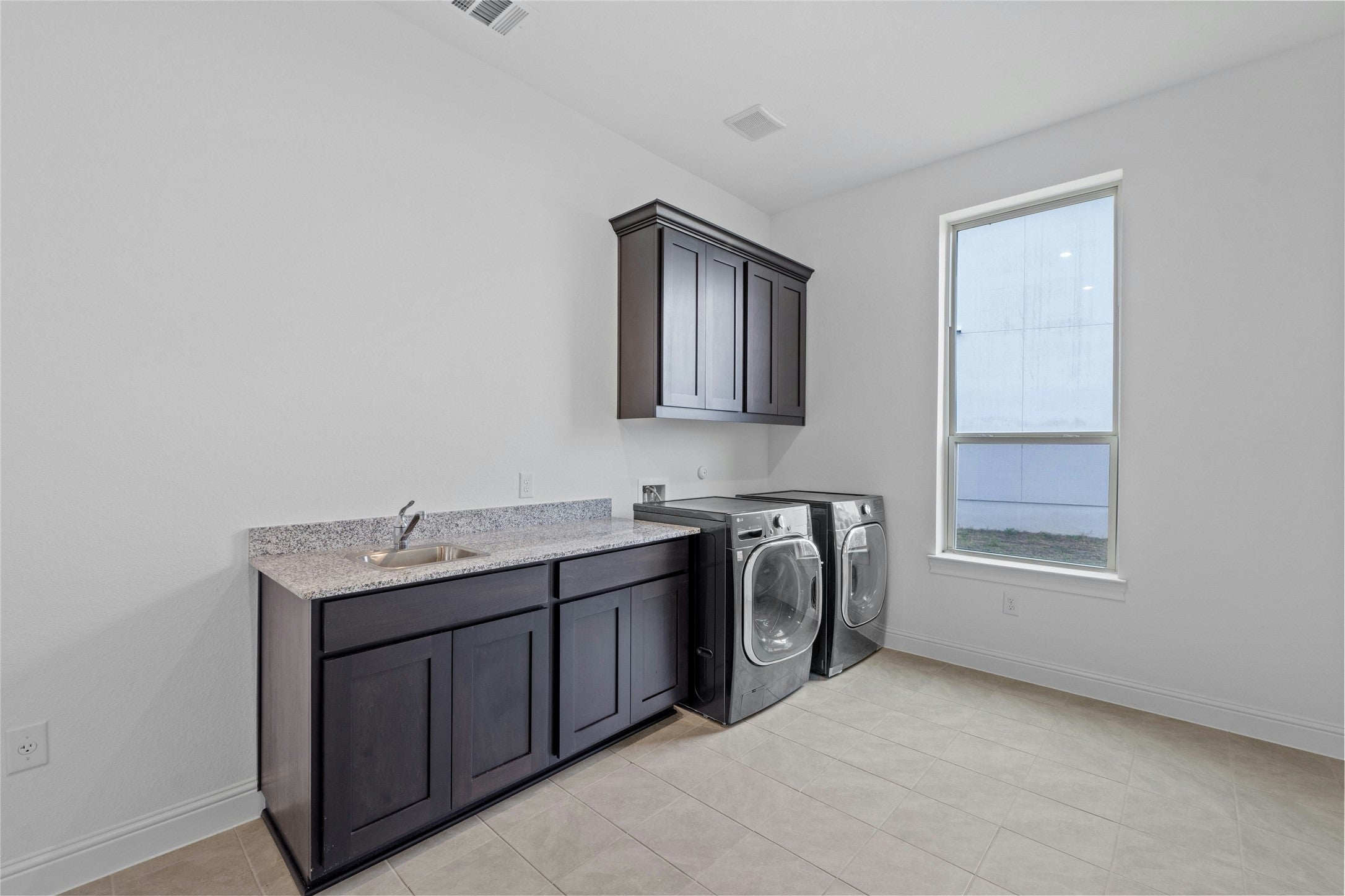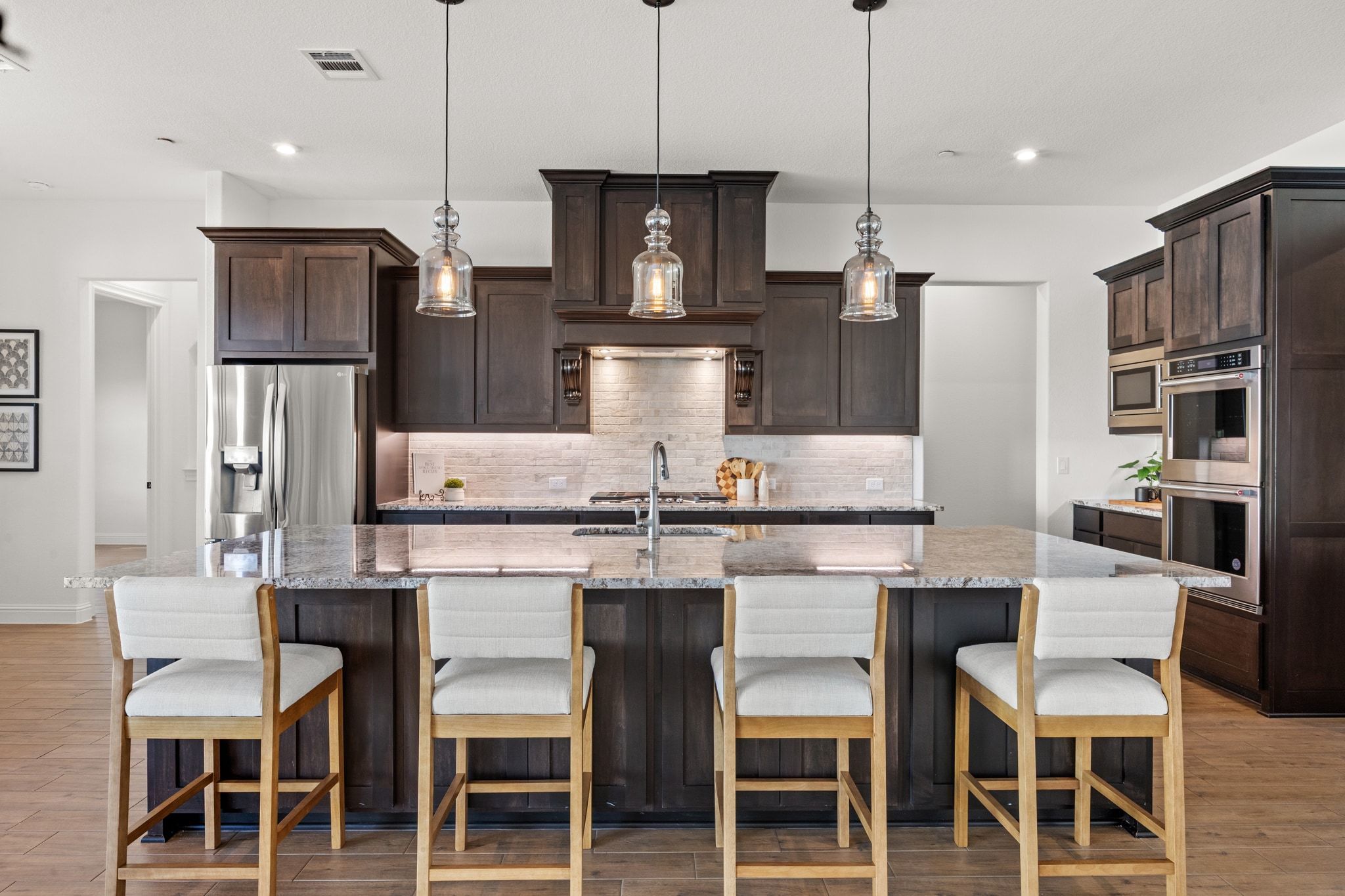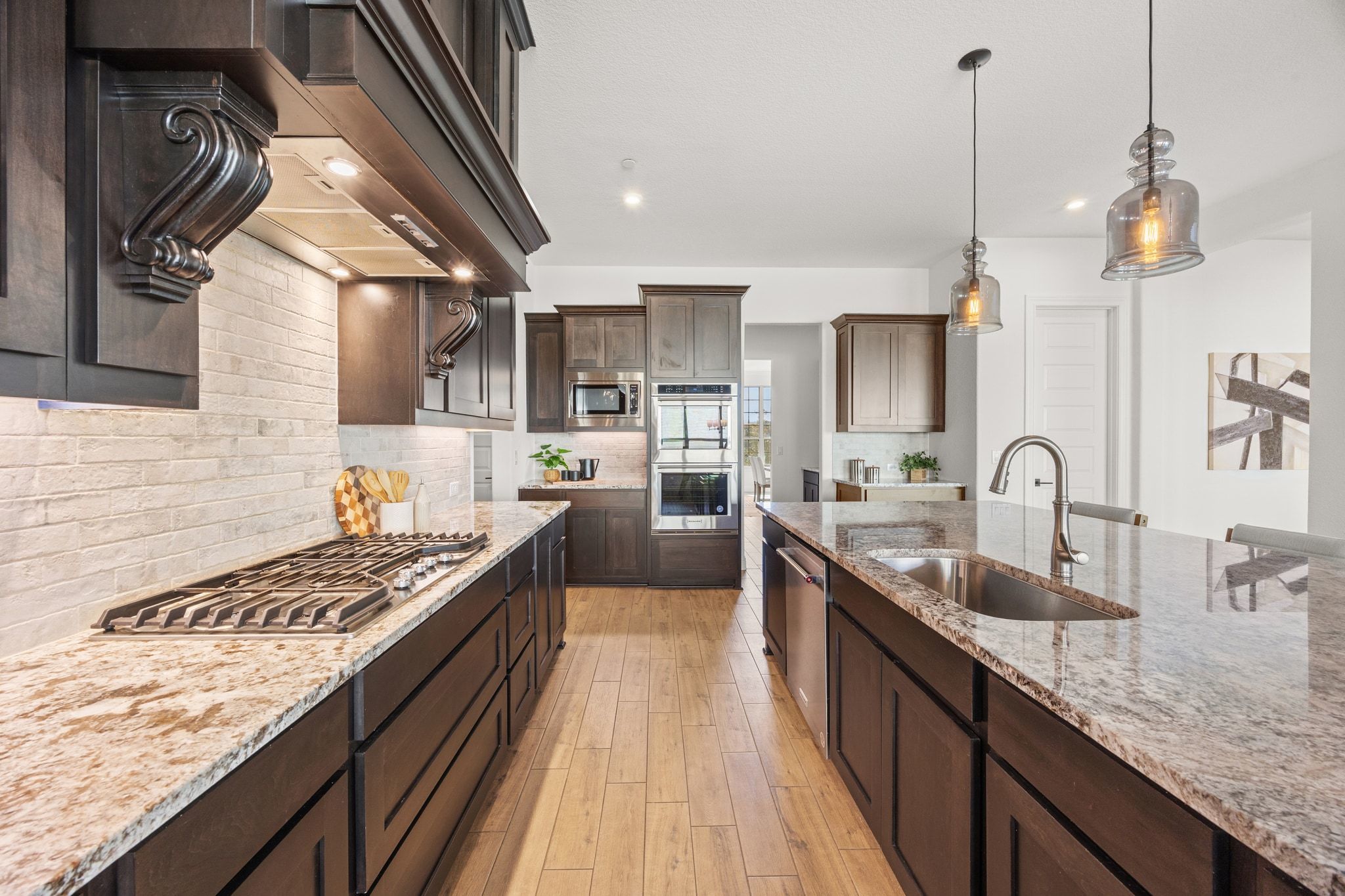 Light-filled, 5,500+ sq ft Toll Brothers home on a rare .34-acre lot, tucked away on a quiet street in Travisso and still feeling nearly new—now featuring a newly added 5th bedroom with walk-in closet, a direct response to overwhelming buyer demand. The Sandhaven plan with Berkshire stone exterior pairs Italian-inspired architecture with Texas Hill Country ease. A grand double stairwell foyer opens to a sunlit office, open-concept living with soaring ceilings and gas fireplace, and a gourmet kitchen with walk-in pantry, butler's pantry, and island seating made for gathering. The primary suite is a true retreat with 2 oversized walk-in closets and a stunning spa-style bathroom featuring a large soaking tub and dual walk-in shower. A lower-level suite with full bath provides private guest quarters. Upstairs brings three bedrooms, two full baths, a second living area, and a fully prewired media room. An oversized, multipane sliding door opens from the living room to a large covered patio and expansive yard with in-ground sprinklers—all secured by a limestone retaining wall with plenty of room to add a pool, trampoline, or playscape. Unique 3+ car garage offers additional space for workshop or home gym space. Travisso amenities include the Palazzo Clubhouse, pool, tennis and pickleball courts, trails, and easy access to top-rated Cedar Park High School. A spacious, well-appointed home built for the way you actually live.