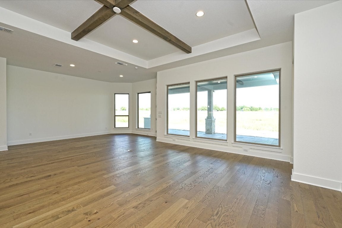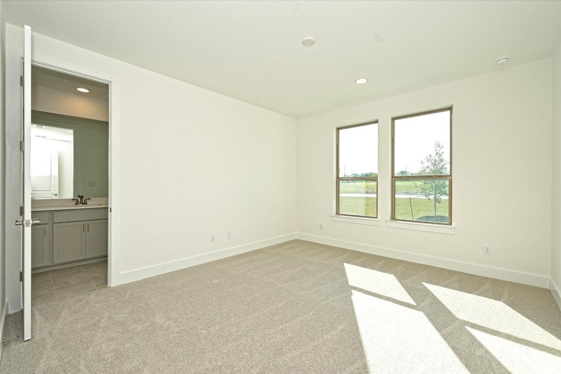 New construction home in the new Scofield Farms Estates community of Georgetown less than 10 minutes from Costco and just 15 minutes from Georgetown town square! NEW 5% flex incentive to use on 3-2-1 buy down, 2-1 buy down, closing costs or price reduction. You could afford up to $125,000 more home than if you bought a resale—without raising your monthly payment. That means more space, more upgrades, and more of what you love. See Sales Manager for details. One-acre homesite, 1 story, 4 bedroom, 4 bath, with study, game room, 3-car side-facing garage. Spacious open floor plan with quartz-topped kitchen island, upper cabinets to 10' with glass fronts and puck lighting, farmhouse sink, double ovens, microwave drawer, gas cooktop. Features corner direct vent gas log fireplace in great room with beamed ceiling, primary bedroom with en-suite with double vanities, freestanding tub and two large walk-in closets. Outdoor extended covered patio with built-in kitchen with gas grill. Rear game room with access to patio. Wrought iron fenced yard.