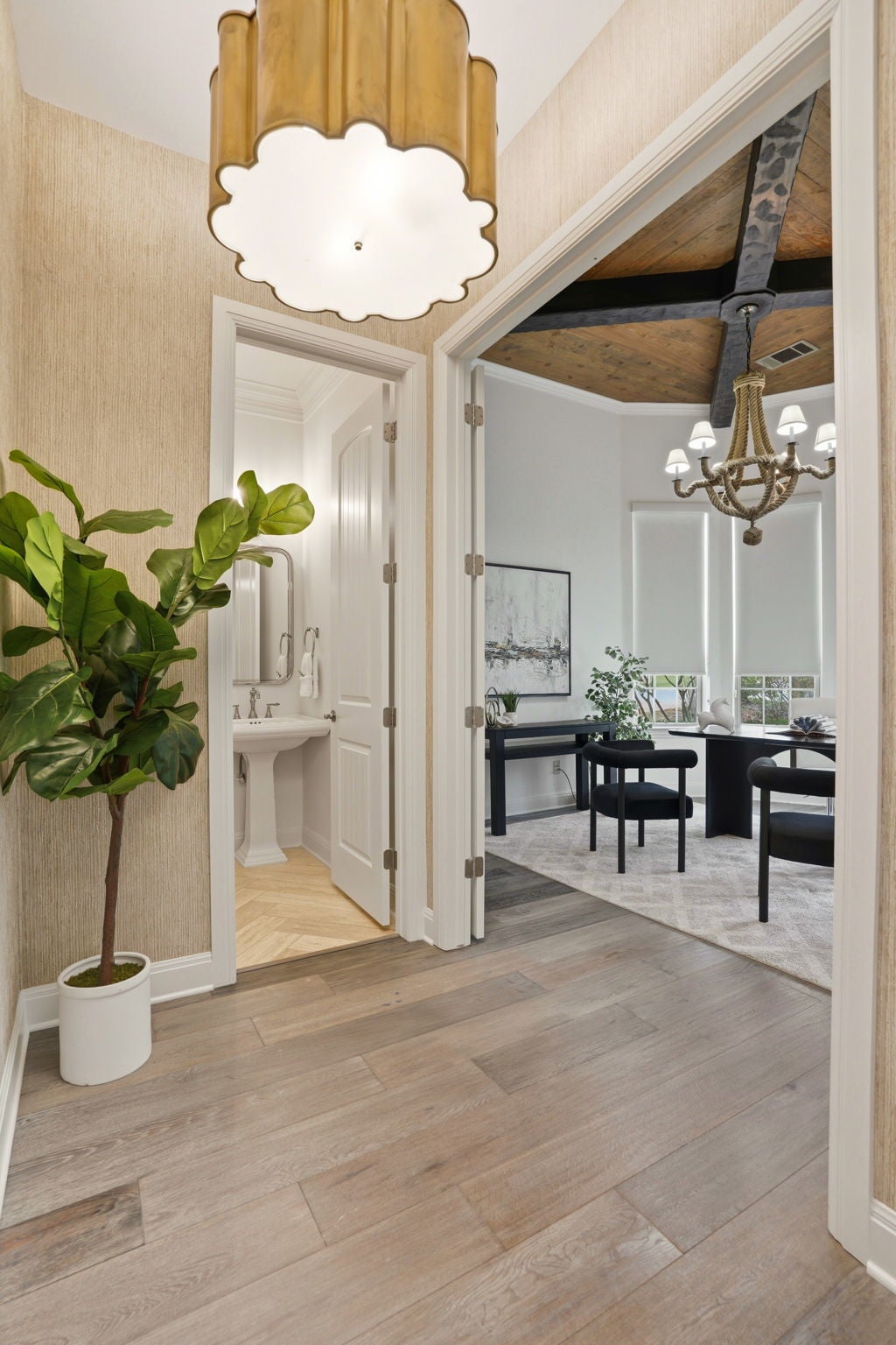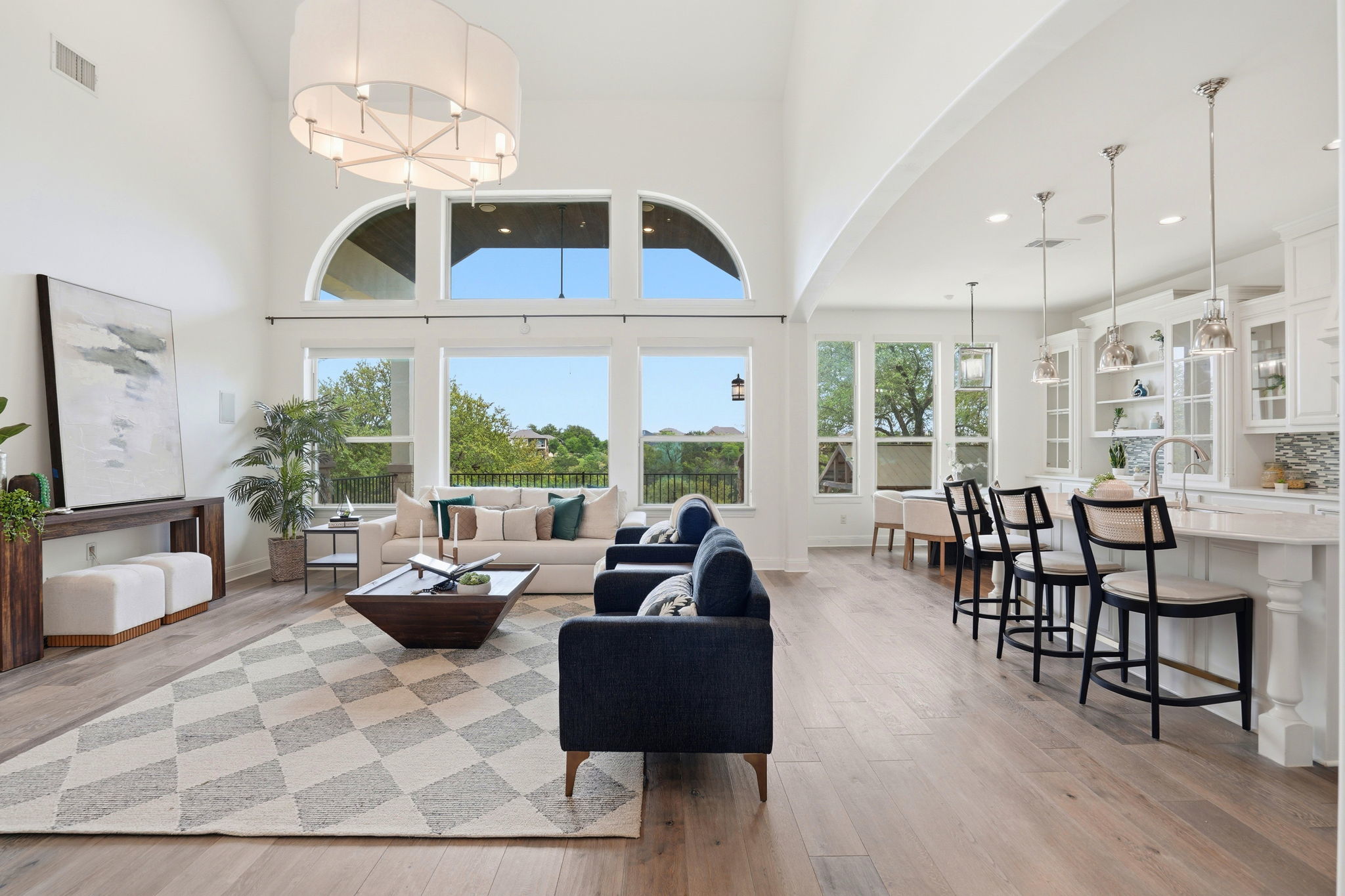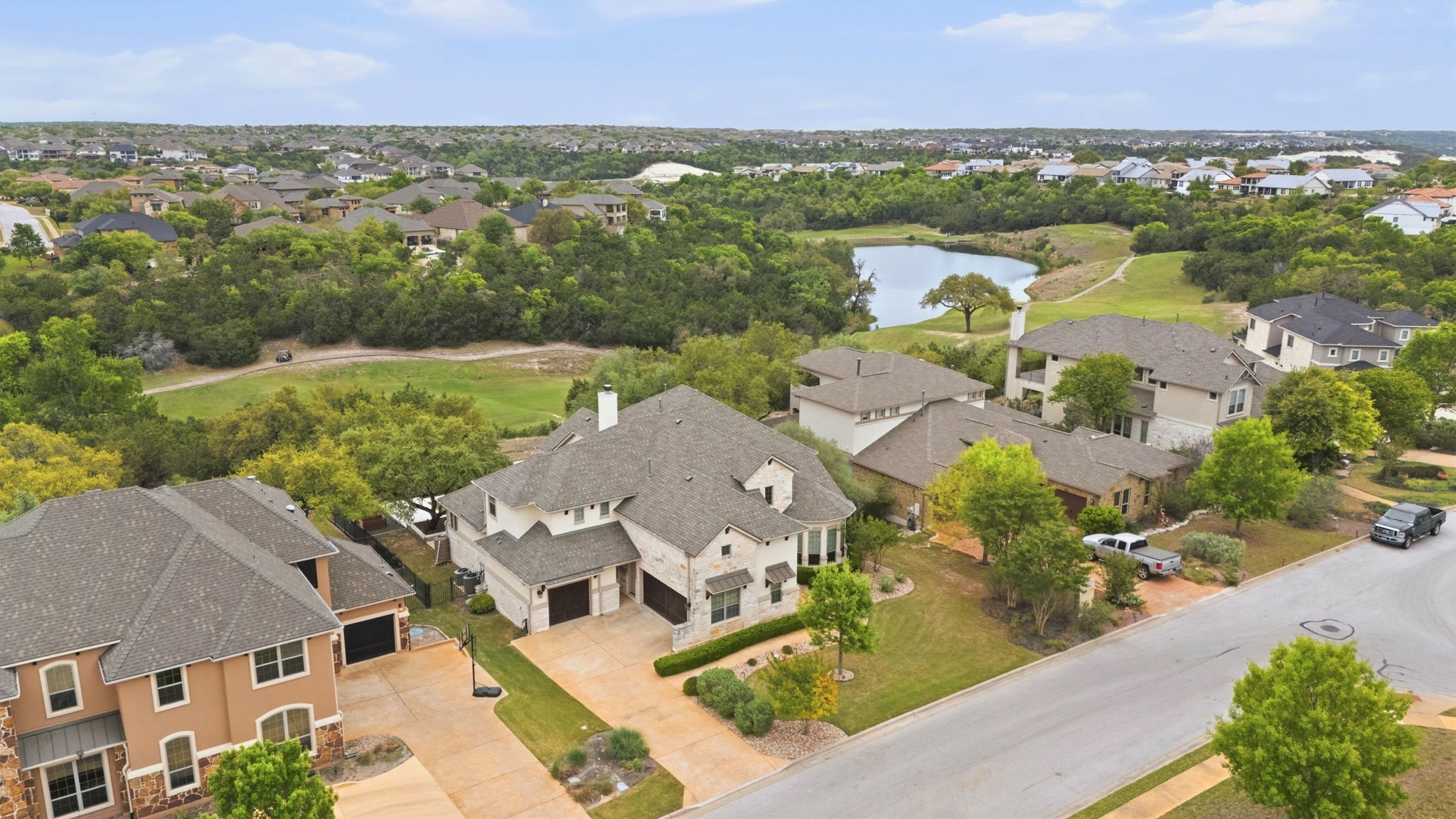 Perched within the prestigious, gated Cap Rock Estates of Crystal Falls, this property offers a premier single-family lifestyle featuring five bedrooms and four and a half bathrooms, perfect for those seeking a Hill Country retreat with direct access to golf and incredible amenities. The main level has wide-plank wood floors throughout and a layout that places the primary suite, a secondary guest bedroom with a private bathroom and a dedicated office all on the first floor. The highlight of the home is the main living space with a gourmet kitchen that features custom cabinetry with detailed moldings, glass display shelving, and professional-grade appliances. Large windows in the living room look out over the stunning backyard, greenbelt and the fairways. As you step upstairs, you will find a large flex space and bonus room that are truly unique and offer endless opportunities for use. The second floor also has two bedrooms that include a Jack and Jill bathroom and an additional bedroom with a full ensuite bath. The backyard is a true showstopper, with a multi-level stone patio, a charming outdoor pavilion, and a serene waterfall feature. It’s the perfect retreat for those who love to entertain or simply soak in a spectacular view. Living in Crystal Falls means having an 18-hole golf course, a private swim center with a junior Olympic pool, and a water park just minutes away. With over 100 acres of greenbelt and miles of hiking trails, the neighborhood is a hub for outdoor activity and community gatherings at the local park and fire pit. Located roughly 28 miles from Downtown Austin and 35 miles from Austin-Bergstrom International Airport, this location allows for star watching and quiet nights while staying within reach of the city via the nearby 183A Tollway.