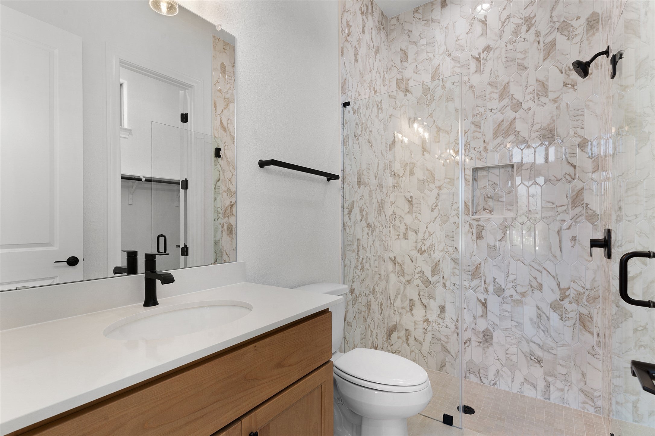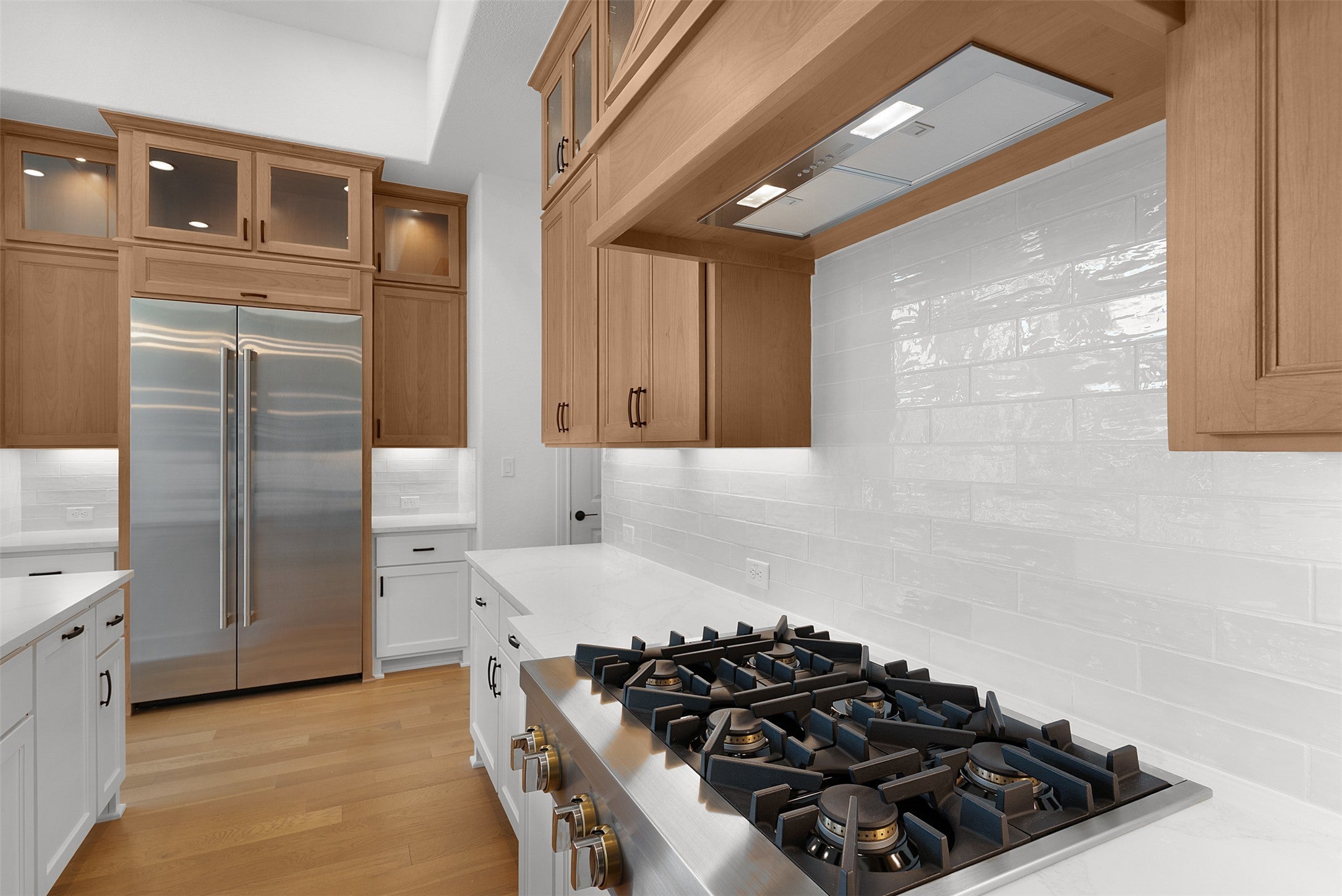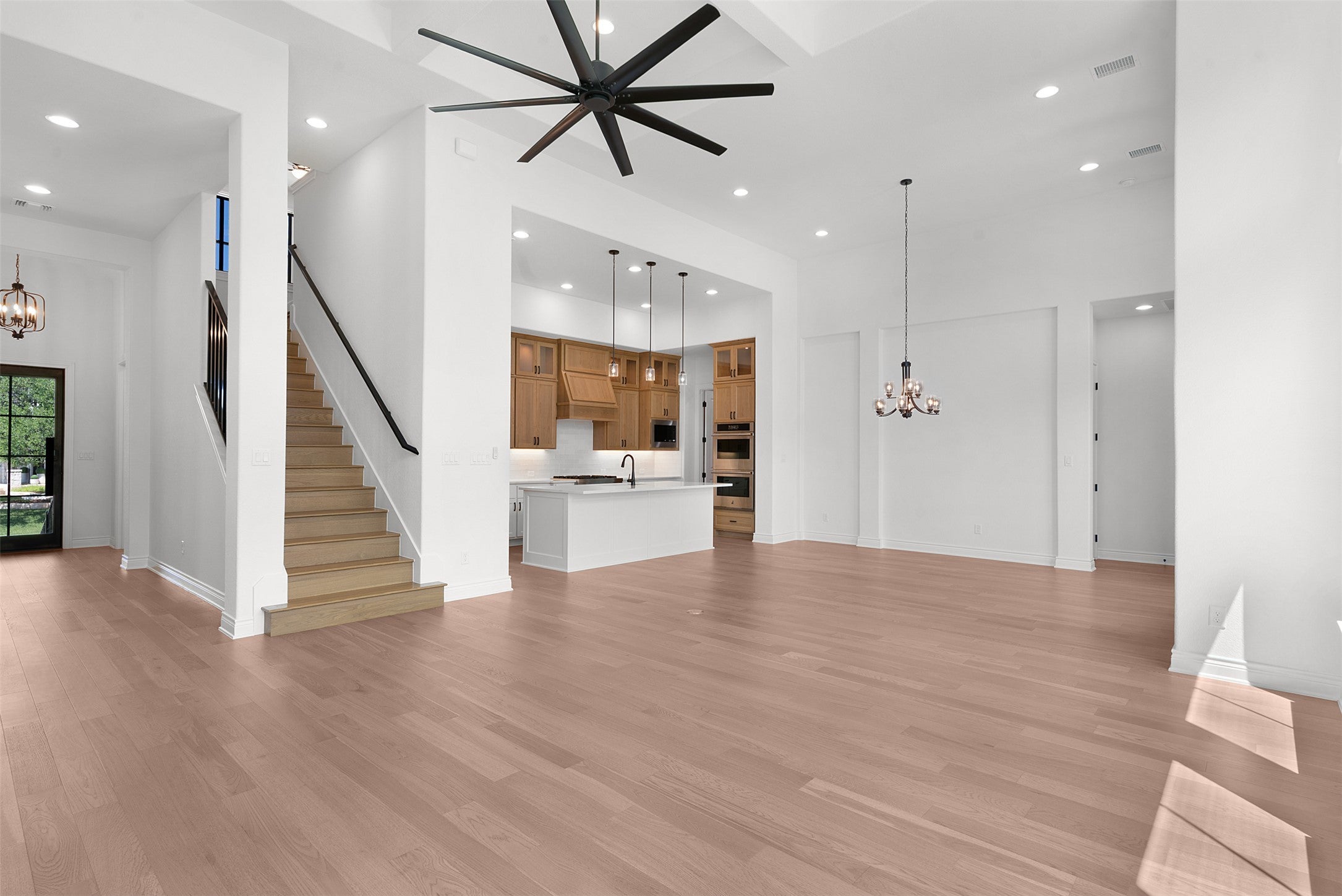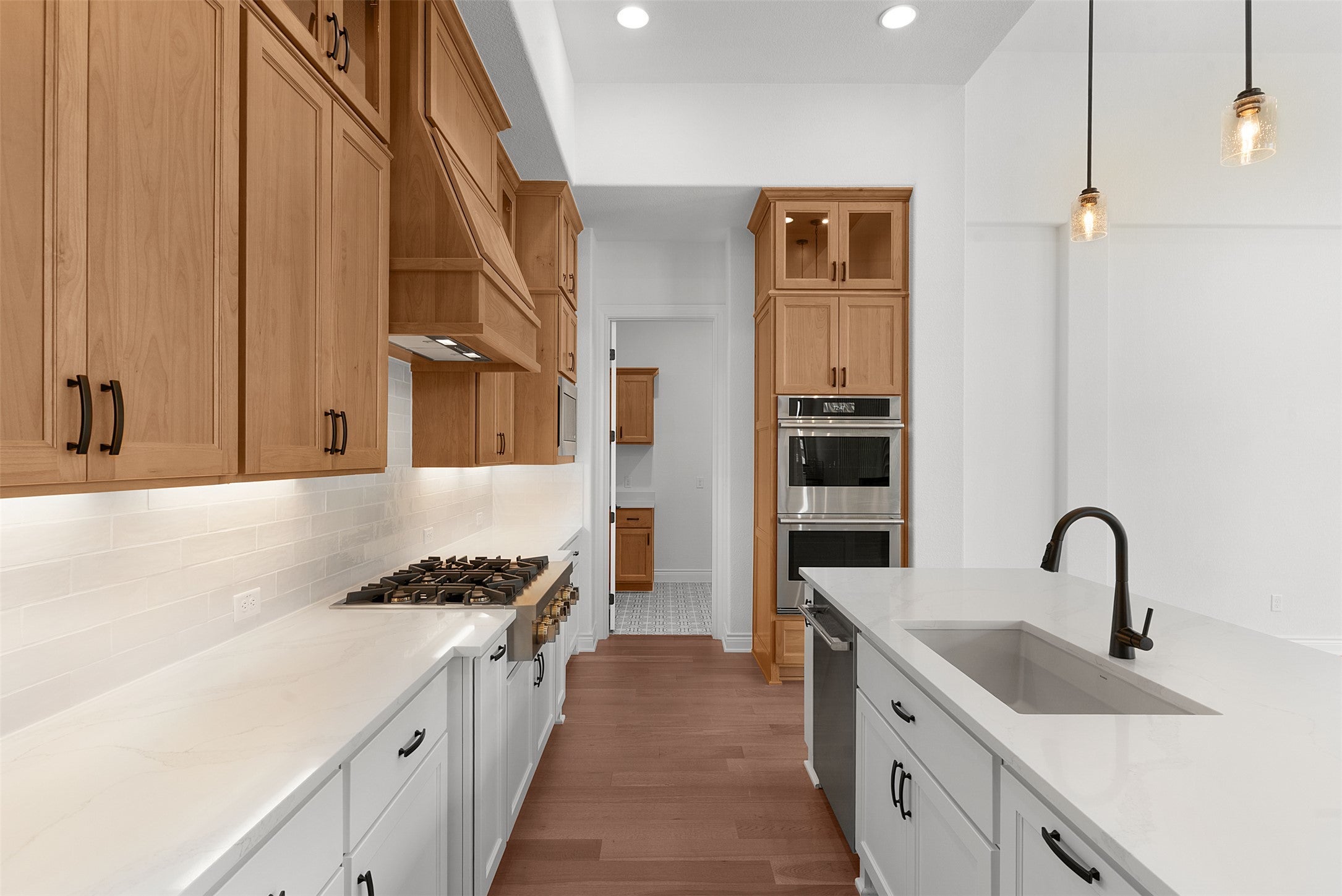 Introducing the final opportunity to own a new Sitterle Home in the prestigious Cimarron Hills Country Club—an extraordinary residence on a coveted corner lot with sweeping Hill Country views and space for a future pool. Designed with distinction and artistic vision, this one-of-a-kind floor plan impresses from the moment you step inside. A stunning 14' groin vault foyer ceiling transitions seamlessly into a 12' gallery hallway, culminating in a show-stopping 14'–15' coffered ceiling in the great room. Perfect for entertaining, the great room features an elegant full cocktail and wine bar—bringing a touch of glamour and fun to every gathering. The adjacent dining room opens to a covered outdoor living space complete with a second outdoor kitchen, ideal for Hill Country evenings. The gourmet interior kitchen is a chef’s dream with JennAir appliances, built-in fridge and freezer, ceiling-height cabinetry with glass accents, interior lighting, and a pot filler for added luxury. The layout is as functional as it is beautiful—an oversized utility room connects directly to both the kitchen and the primary suite’s bath for maximum convenience. Vaulted ceilings grace the primary bedroom and bathroom, where a freestanding soaking tub sits beneath a dazzling chandelier. Two spacious walk-in closets—one with a pocket door to the laundry room—enhance everyday living. The en suite guest room offers the best sunset views in the home, capturing the magic of the Hill Country. Every inch of this home has been thoughtfully curated, from the oversized mud-set shower with frameless glass to the interior palette—a breezy blend of cool creams and warm tones, evoking a refined Palm Springs vibe. Complete with a dedicated golf cart garage, this home is both luxurious and lifestyle-ready. Don’t miss your chance to own this final masterpiece in Cimarron Hills.