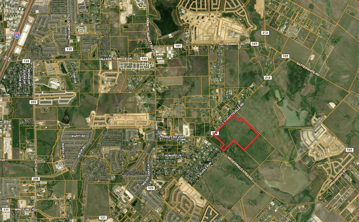 83.23 acres in Buda available for development along the highly sought-after I-35 growth corridor, just 18 miles from Downtown Austin. The site is well suited for commercial manufacturing, mixed-use, industrial, logistics, hospitality, entertainment, and neighborhood retail development. The property sits approximately 2.5 miles from Interstate 35 and 3 miles from major shopping, dining, and services including H-E-B, Walmart, and Cabela’s. It features two sides of paved road frontage with over 1,800 feet along South Turnerville Road and approximately 250 feet along FM 2001, a planned four-lane expansion corridor. Located outside of city limits and in Hays County, allowing for flexibility in future use. The property also sits adjacent to Prairie Lakes, planned for approximately 2,200 homes, and directly south of Sunfield, planned for over 5,000 homes, providing strong surrounding rooftops and demand that support future commercial and business uses. Opportunities of this size and location are becoming increasingly rare near Austin. Contact for more details!
