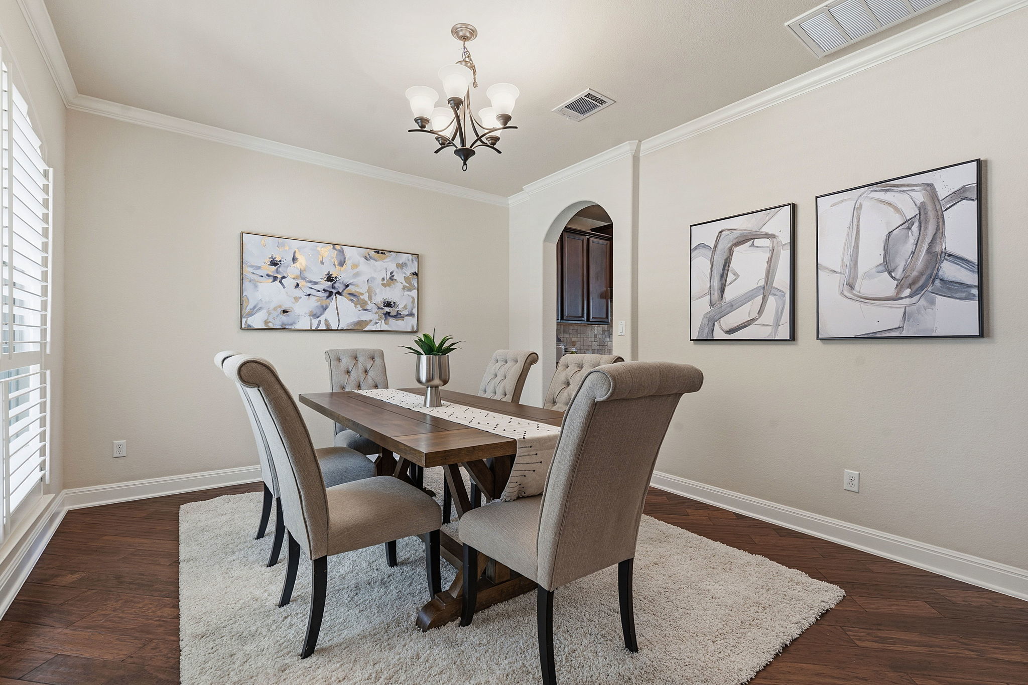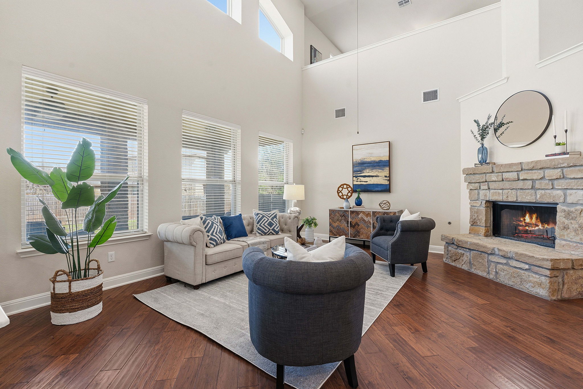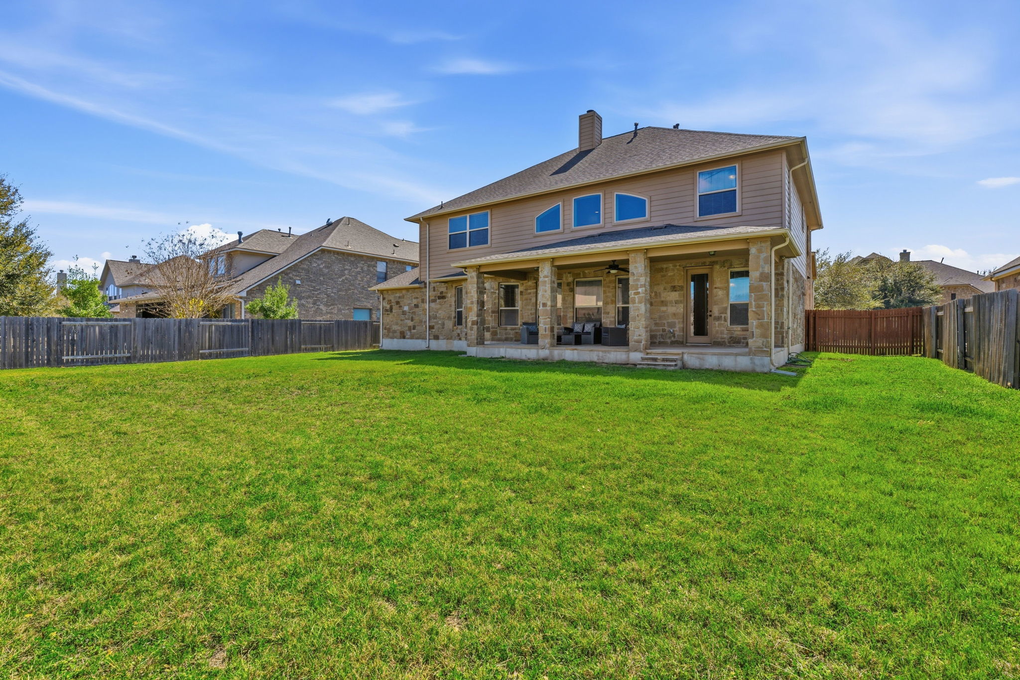 Here’s your opportunity to own a stunning two-story stone residence in the highly desirable Ranch at Brushy Creek community. This beautifully designed home offers 5 beds, 3.5 baths, a dedicated home office, formal dining room, upstairs game room, a private theater room and a 3-car garage—providing exceptional space for both everyday living and entertaining. Step inside to discover an open, light-filled floor plan highlighted by soaring 2-story ceilings in the living room, expansive windows, and rich hardwood flooring. Thoughtful upgrades throughout include plantation shutters, high-end finishes, new carpet, recent interior paint and a new roof scheduled for completion prior to closing. At the front of the home, a private office with double doors offers the ideal space for remote work. The chef’s kitchen serves as the heart of the home, featuring Silestone countertops, center island, stainless steel appliances with vent hood, 42-inch cabinetry, a walk-in pantry, and breakfast bar seating that flows seamlessly into the living area. Just off the breakfast room, an oversized covered patio invites you to relax or entertain outdoors. The spacious backyard, 0.256 acre, offers room for a future pool and endless possibilities for creating your own outdoor retreat. The open-concept living room features hardwood floors, dramatic double-height ceilings, large windows, and a cozy fireplace. The main-level primary suite is a true retreat, complete with a bay window and an upgraded spa-like bath with a walk-in shower, soaking tub, dual vanities, and generous walk-in closets. Upstairs, a bright flex space provides the perfect setting for a game room or workout area. 4 Spacious secondary bedrooms and 2 full baths complete the upper level. Ideally located minutes from top-rated Round Rock ISD schools, BC Regional Trail, major tech employers including Apple and Amazon, plus abundant shopping and dining. Residents enjoy 2 community pools, parks, and scenic walking trails.