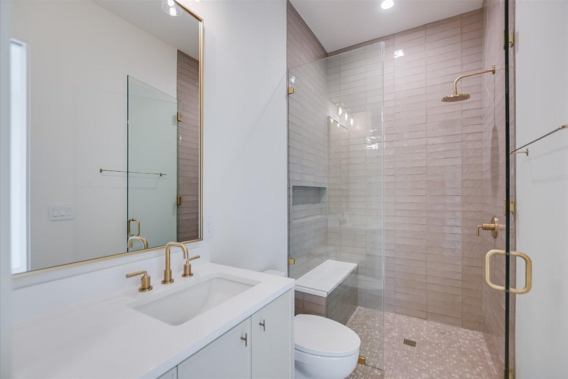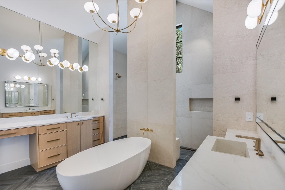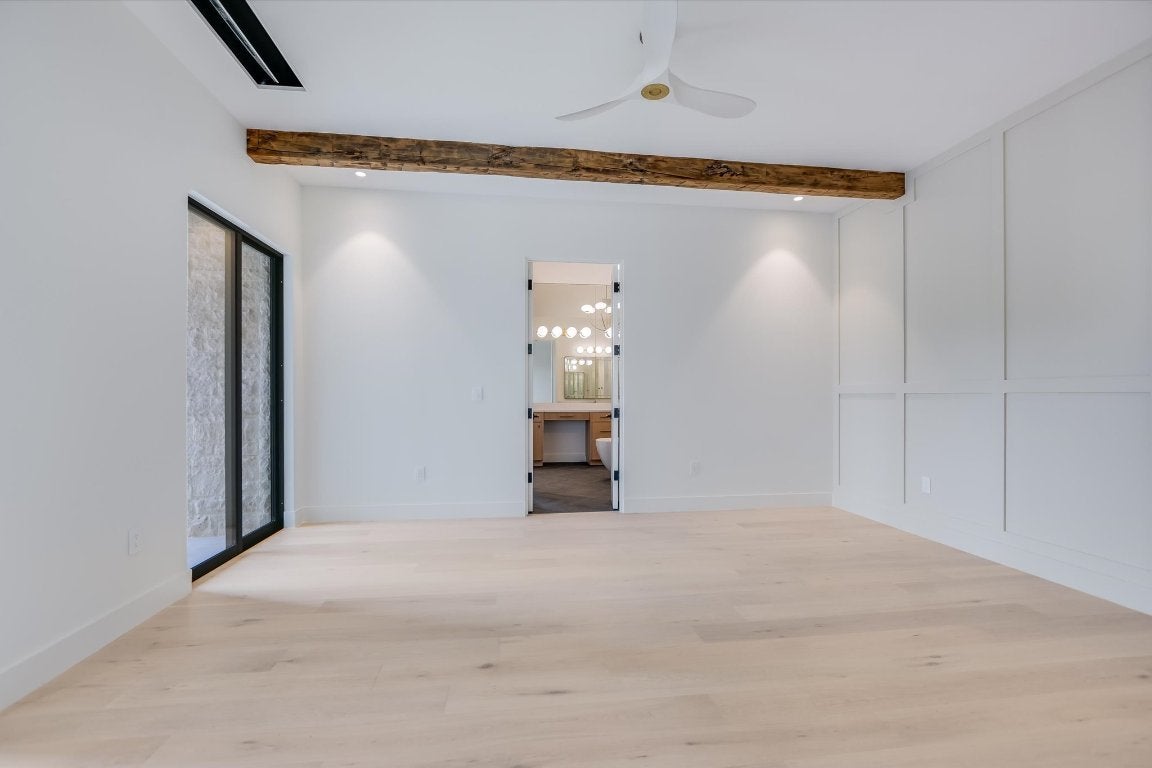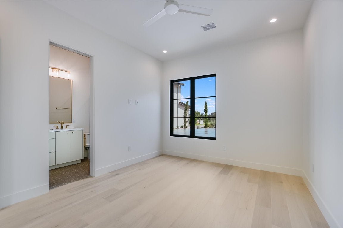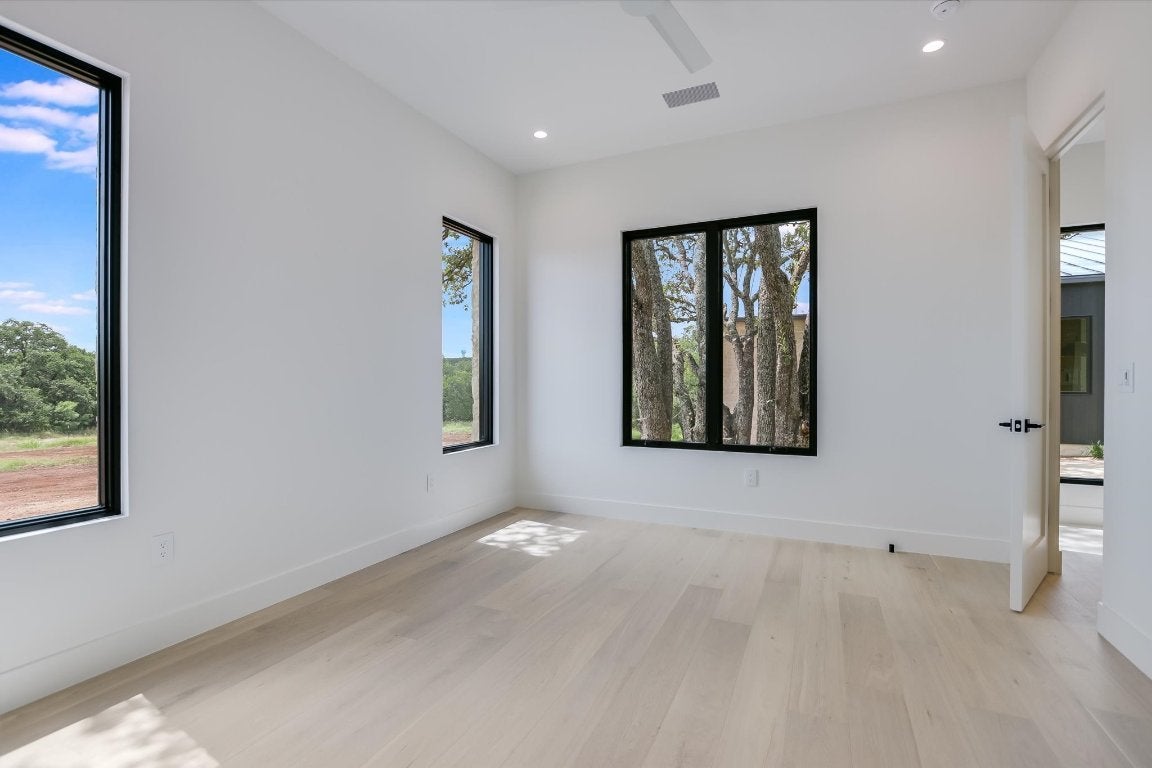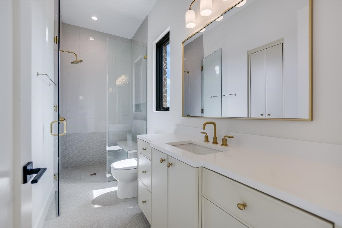 Single level residence with a ton of natural light located on #15 hole of Summit Rock overlooking Pecan Creek. This Canyon Creek Home offers 4 bedrooms/4.5 baths and a study along with a 3 car garage and golf cart storage. As you enter the oversized steel door, you are surrounded by the designers natural pallet selection highlighting the natural beauty of the exterior with a courtyard in the middle of the open floorplan. The massive living room is flanked with floor to ceiling steel windows, mid century reclaimed beams and a stone walled fireplace. The kitchen is exquisite with oversized pendant lighting, large quartz bar, 60" Subzero cabinet faced refrigerator, custom white oak cabinetry, Thermador coffee/cappuccino maker, Thermador 6 burner range with griddle, and brass pot filler! Another bonus is a prep kitchen with a full size wine refrigerator and ice maker. Retreat to the owners suite that is embellished with the reclaimed beams and a recessed TV mount. The exterior features an outdoor kitchen and turf lawn with automatic Rainer shade. Some extras to include: epoxy garage floor, trim-less recessed lighting, flush AC vents, spray foam insulation, tankless water heaters, floating limestone vanity in powder! Membership to Summit Rock conveys upon application and approval.