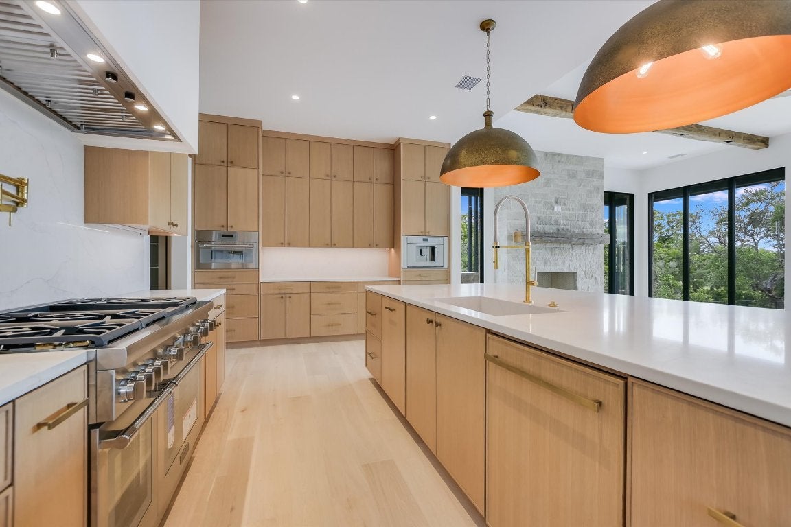 - Dishwasher, Disposal, Microwave, Bar Fridge, Built-In Gas Range, Built-In Oven, Built-In Refrigerator, Double Oven, Ice Maker, Wine Cooler