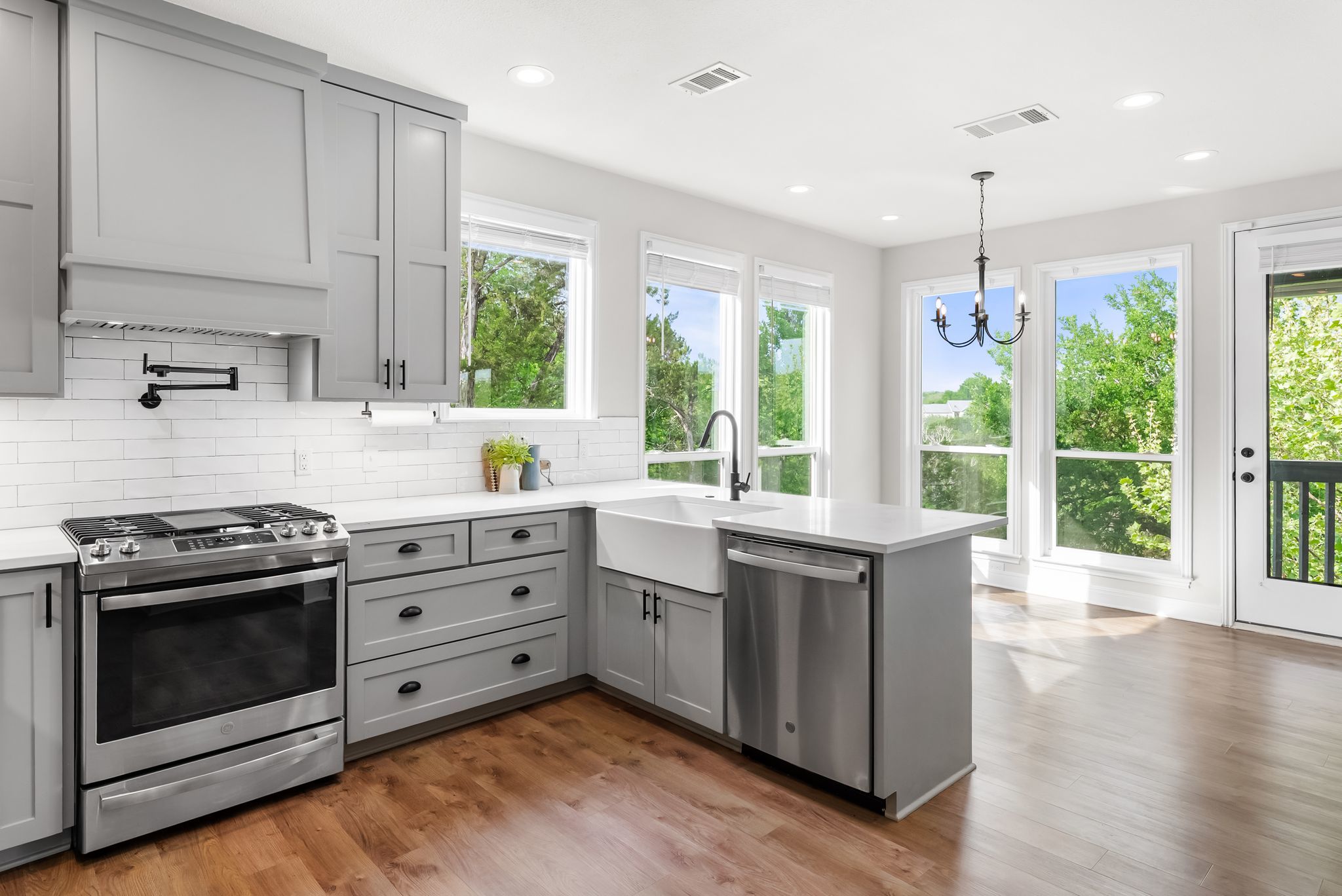 - Built-In Electric Oven, Dishwasher, Exhaust Fan, Disposal, Microwave, Oven, Propane Cooktop, Range