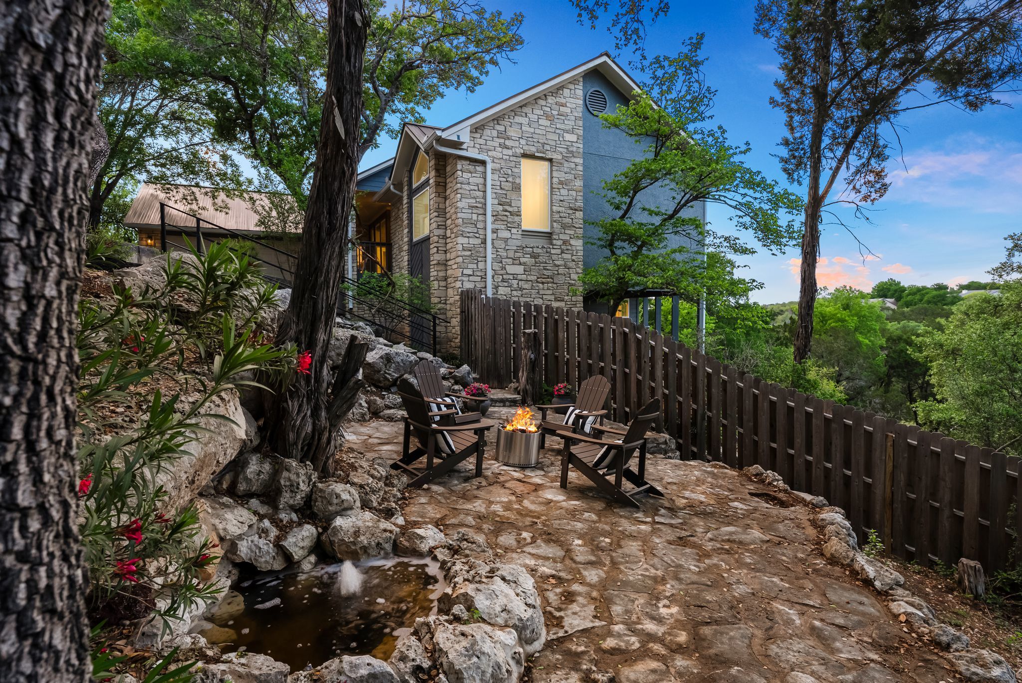 Rare opportunity in Old Lakeway on a .7-acre creek-side lot. Nestled on a quiet, tree-lined street with rolling hills, this property offers both privacy and convenience. Enjoy picturesque hillside views from multiple decks, creating a true treehouse-like setting with a bird’s-eye perspective. The expansive backyard backs to a year-round creek—ideal for canoeing, relaxing, or enjoying the natural setting—with ample space for a future pool and garden. The home has been fully remodeled with approximately $200K in improvements (see MLS documents for details), while still offering potential to expand, including adding square footage or a custom wine room. Located just minutes from RR 620 with easy access to Lakeway amenities, and walkable to the new Square at Lakeway development and The Oaks, HEB, Torchy’s Tacos, and High Five. A unique combination of space, location, and lifestyle in one of Lakeway’s most established neighborhoods