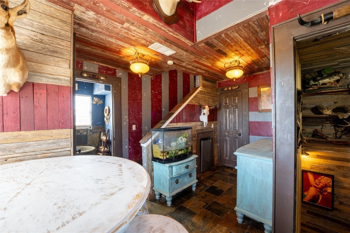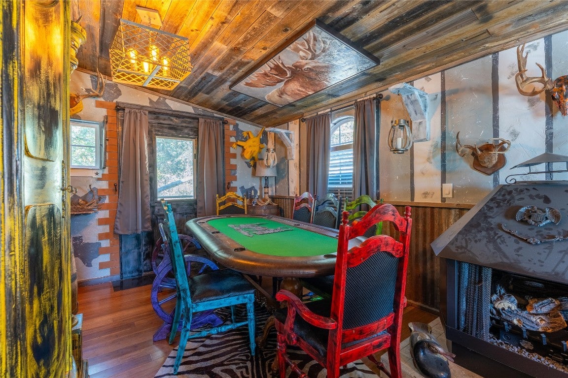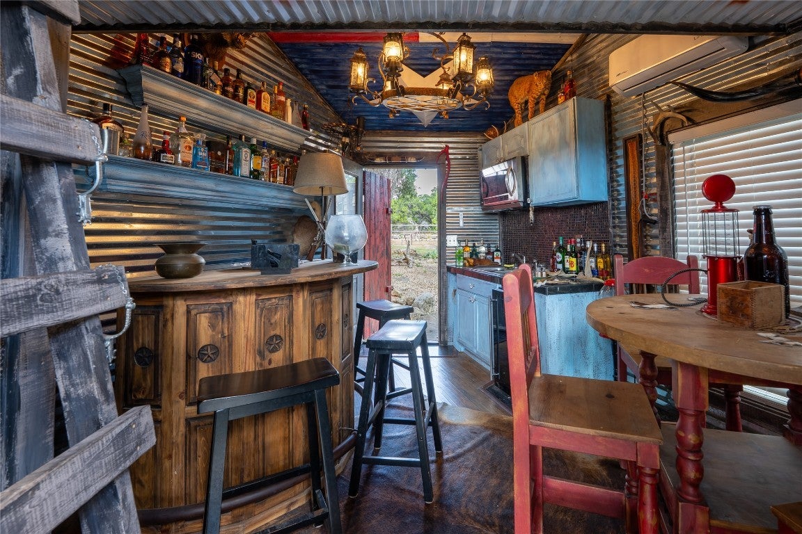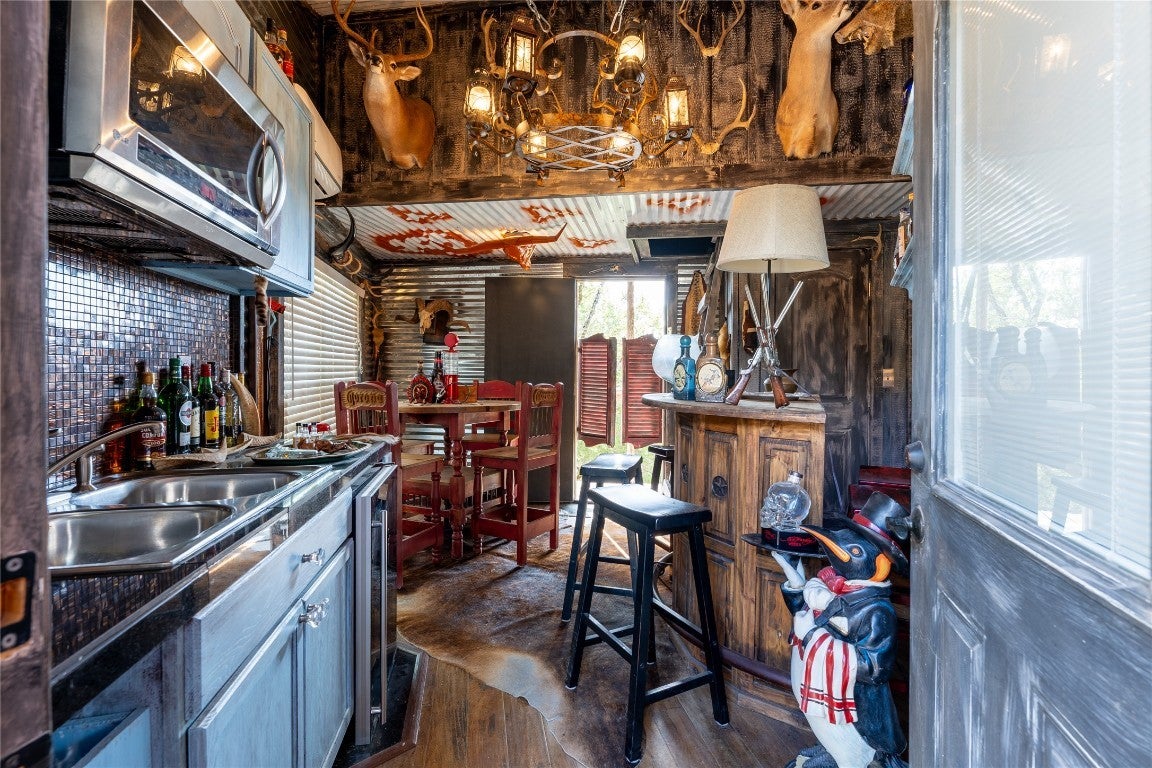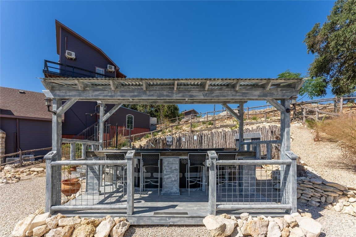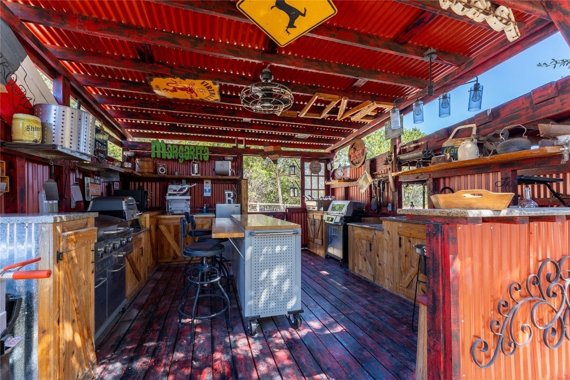 Welcome to your ultimate getaway in the beautiful Texas hill country, where rustic charm meets funky flair in this one-of-a-kind 5-bedroom, 5.5-bath main house. Boasting not one, but two kitchens and two dining rooms, this home is perfectly designed for both intimate family meals and lively gatherings. The cozy living room doubles as a media room — ideal for movie nights or laid-back hangouts. Step outside and discover your own private resort: , An above-ground pool for extra splash with a covered spa, and a sprawling outdoor kitchen ready to fuel your cookouts with multiple smokers and grills. Movie buffs will love the dedicated outdoor movie area, while sports enthusiasts can shoot hoops on the full basketball court. But the magic doesn’t stop there — the whimsical treehouse features a loft bedroom, a built-in bar, and an outdoor shower, creating the perfect blend of rustic adventure and modern comfort. With multiple outdoor bathrooms scattered throughout the property, convenience meets luxury at every turn. This property is a dream come true for short-term rentals, offering guests a unique, fun-filled escape with endless amenities. Whether you're hosting large groups, special events, or just craving a funky, rustic sanctuary, this home has everything you need to make memories that last a lifetime, with all furniture/ decor available for purchase!