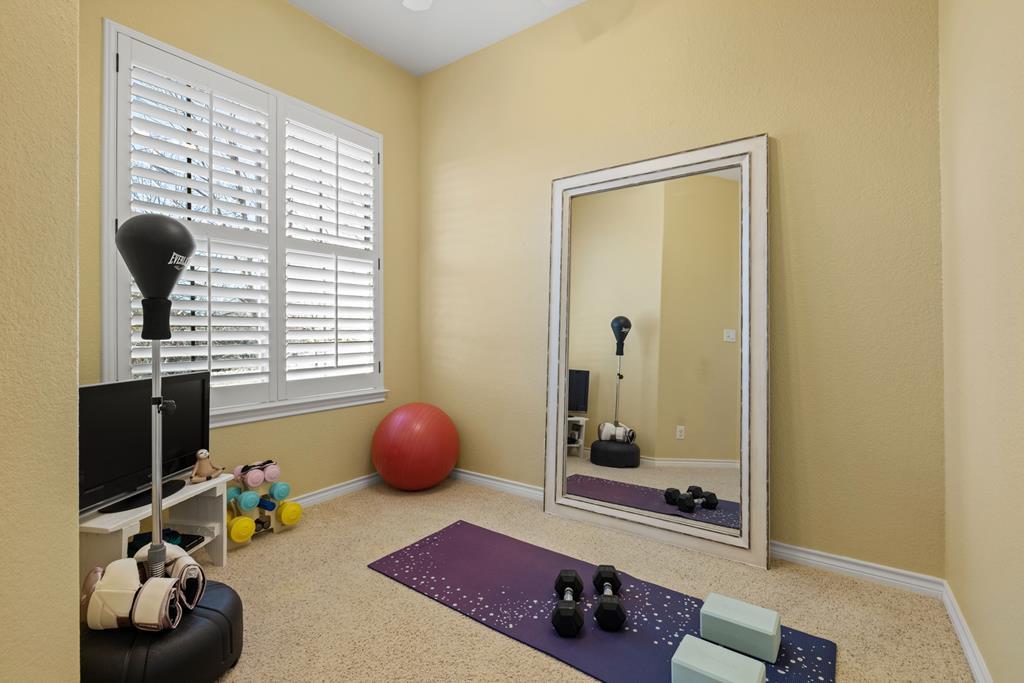 Hilltop property with spectacular Hill Country views just minutes from downtown Fredericksburg. This thoughtfully designed custom Hill Country home sits on 4.935 private acres and offers 4 bedrooms, 3 bathrooms, fourth bedroom can easily be used as study/office. The front foyer, with its dramatic hand crafted barrel-ceiling, opens to a formal dining area and private office featuring custom knotty alder cabinetry. A chef’s kitchen features granite countertops with hand carved edges, a Hallman Italian gas range with dual ovens, Bosch dishwasher, GE Monogram refrigerator/freezer, large island, knotty alder cabinetry and exposed solid cedar beams. The great room showcases soaring 20-foot ceilings, floor-to-ceiling windows, and a stone fireplace with mesquite mantle overlooking expansive, breathtaking views. The private primary suite includes patio access, dual vanities, whirlpool tub, walk-in shower, expansive walk-in closet and additional bonus room than can be used as an attached gym, office or additional walk-in closet. Outdoor covered patio overlooks a heated infinity-edge pool, hot tub, and spacious entertaining patios. Additional highlights include gated entry, oversized garage, 1,250 sq ft RV building (25x50) and outbuilding. There are additonal building sites on the property with easy access to water/electricity and septic. One site sits on the opposite end of the property and would be perfect for a guest house or B&B with electricity, water and its own roadside access. Several recent improvements completed in 2025 include fresh interior/exterior paint, new metal seam roof/gutters, double pane windows, insulated garage doors and new water heater. Thoughtfully built for comfort, privacy, and everyday luxury in one of Fredericksburg’s most scenic settings.