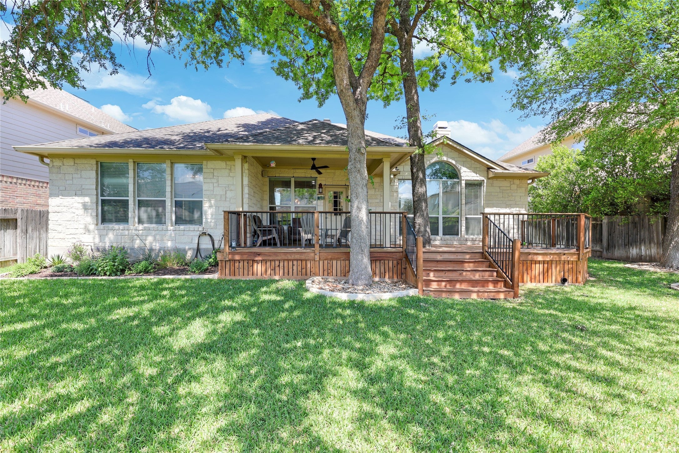 Experience refined Texas living in this exceptional home located in the highly sought-after Ranch at Brushy Creek community. Offering 5 bedrooms and 3.5 bathrooms, this thoughtfully designed residence combines the ease of single-story living with the added flexibility of a spacious upstairs retreat. The main level features four generously sized bedrooms, one bedroom currently configured as a private office—perfect for working from home. Upstairs, a large bedroom with a full bath provides an ideal space for a guest suite, media room, or game room. Expansive living areas with soaring ceilings and an open-concept layout designed for both everyday comfort and effortless entertaining. A formal dining and sitting area offers endless possibilities—host large gatherings, create a stylish lounge, or design the ultimate game space. The kitchen is a true centerpiece, featuring granite countertops, stainless steel appliances, and an oversized pantry with additional storage tucked beneath the stairs. Step outside to a large backyard built for enjoying the Texas lifestyle, complete with a beautiful deck and covered patio—perfect for relaxing or entertaining year-round. With ample space for a future pool, the possibilities are endless. Situated on a low-traffic street, this home offers both privacy and convenience. Located within highly regarded RRISD schools and just a short walk to Brushy Creek parks and only three blocks from the scenic Brushy Creek trail system, outdoor recreation is always within reach. This is the perfect blend of space, style, and location—ready to welcome you home.