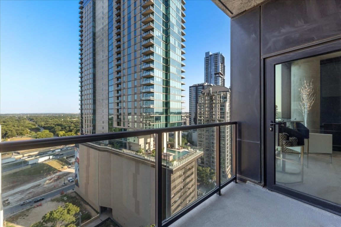 70 Rainey #1503 – East-Facing One Bedroom Residence 1503 features a desirable east-facing orientation with floor-to-ceiling windows that fill the home with natural light and showcase views toward East Austin. This one-bedroom, one-bath layout includes wide-plank hardwood flooring, a private balcony, and an open-concept design. The kitchen is outfitted with Miele appliances, quartz countertops, and custom cabinetry, while the bathroom offers a glass walk-in shower and modern finishes. 70 Rainey residents enjoy 20,000+ sq. ft. of amenities, including a rooftop infinity pool with sunset views, a fitness center, yoga studio, steam rooms, landscaped dog park, resident bar, and 24-hour concierge. Located in the Rainey Street Historic District, the community is steps from dining, entertainment, and the Hike-and-Bike Trail.