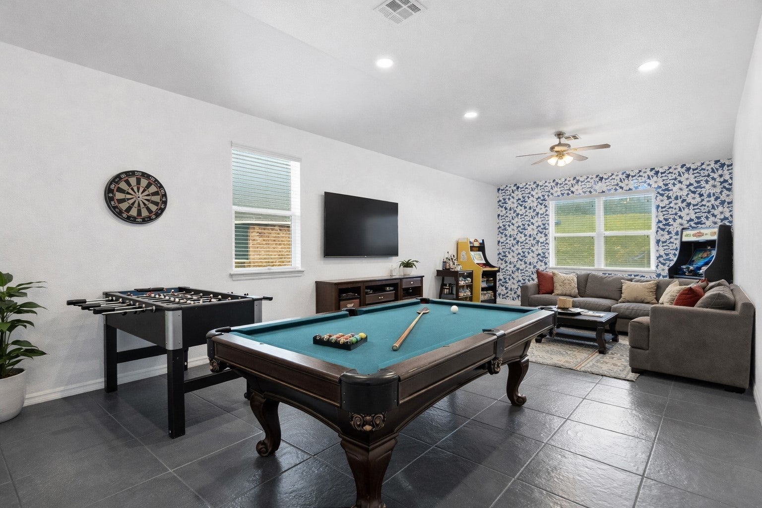 Opportunities like this are rare. This expansive and highly versatile residence features one of the most distinctive floor plans in Austin, designed to offer exceptional flexibility for multi-generational living, extended stays, work-from-home lifestyles, or simply those who value space and separation. With 5 bedrooms, 5 full bathrooms, two full kitchens, two dedicated offices, multiple living areas, and two primary suites, the home offers an incredible range of possibilities for how the space can be used. The main level welcomes you with soaring ceilings and abundant natural light in the family room, creating a bright and open atmosphere. The spacious kitchen flows seamlessly into the living area, forming an ideal gathering space with generous cabinetry, extensive counter space, and impressive storage. Upstairs, a second full kitchen and additional living area create a rare opportunity for flexible living arrangements, private guest quarters, or extended family space while maintaining comfort and privacy throughout the home. Storage is exceptional throughout, with large closets and a fully finished bonus space above the garage that is not included in the square footage. This area offers outstanding flexibility for a workshop, hobby room, studio, or organized storage. A three-car garage adds even more functionality. Set on a generous 0.41-acre lot, the outdoor space provides ample room to design a future pool while the existing outdoor kitchen and patio create an inviting setting for entertaining or relaxing outdoors. Located just 15 minutes from Downtown Austin and about 25 minutes from the airport, the home is also within walking distance of Lantana Place, offering a variety of dining and amenities. Several highly regarded private schools are nearby, along with access to well-rated public schools. A rare combination of scale, flexibility, and opportunity in a prime Austin location.