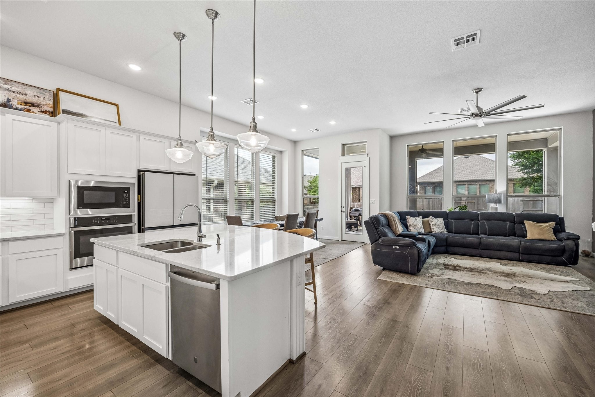 - Built-In Oven, Gas Cooktop, Disposal, Microwave, Stainless Steel Appliance(s), Tankless Water Heater