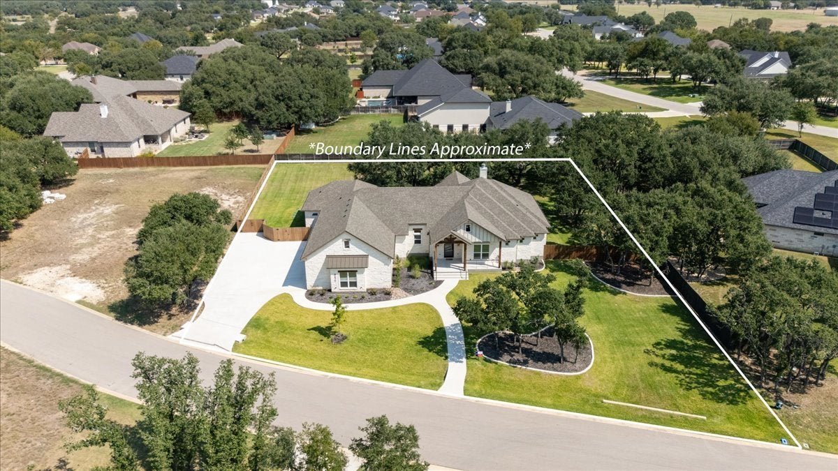 RARE .71 AC LOT in small secluded SALADO,TX neighborhood WITH SO MANY TREES! Minutes from STILLHOUSE HOLLOW LAKE, this Exquisite new construction has 3221 SF of thoughtful design and MODERN FINISHES – Extra-large 3CAR GARAGE + storage that enters to CUSTOM DROP ZONE area – MASSIVE PANTRY and half bath! GOURMET Kitchen is finished with WHITE cabinets, gorgeous grey tone GRANITE and VENTED GAS COOKTOP. Walk through to the BEST LAUNDRY ROOM/butler pantry designed with extra counters, cabinets, sink and area for 2nd fridge + opens to 1 of 2 PRIMARY WALK-IN closets. Primary bath has large WALK-THROUGH shower, Free-Standing Soaking Tub and SPLIT VANITIES with gorgeous GRANITE AND TILE finishes. Living room has beautiful outside view with 12 FT sliding doors leading to large covered patio with OUTDOOR KITCHEN and vaulted ceiling with wood accents. Three full bedrooms + office/bed 4 + 3.5 Baths. Bathroom 3 is EN SUITED to Bedroom AND has hall access to outdoor patio. Gas Fireplace – Tankless Hot Water Heaters – Full Sod/Irrigation – Stone Trimmed Landscaping. IT’S A MJST SEE!! Low TAX RATE. 30 MIN TO GEORGETOWN/40 MIN to AUSTIN. Builder INCENTIVES!