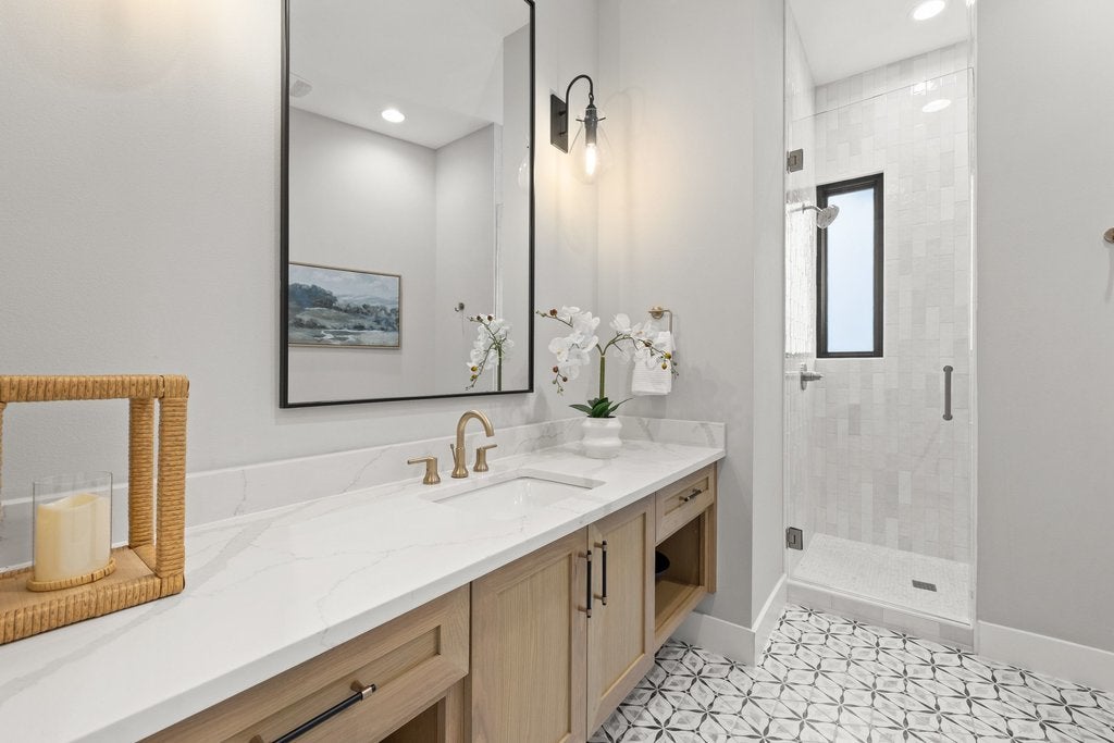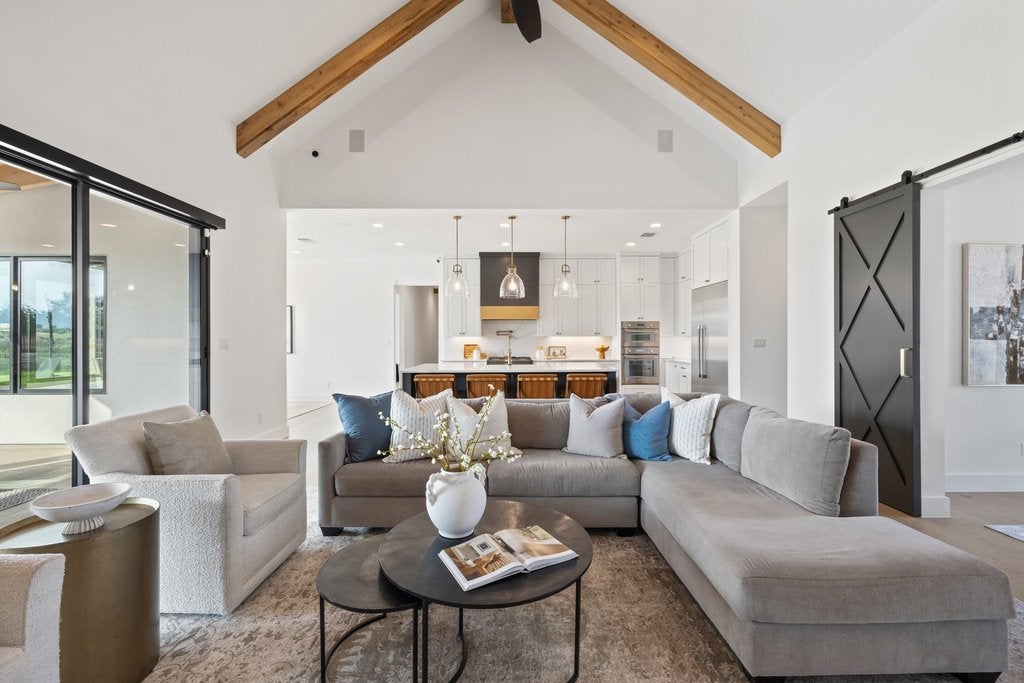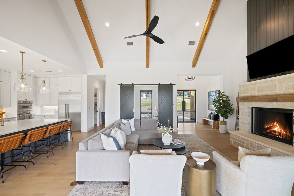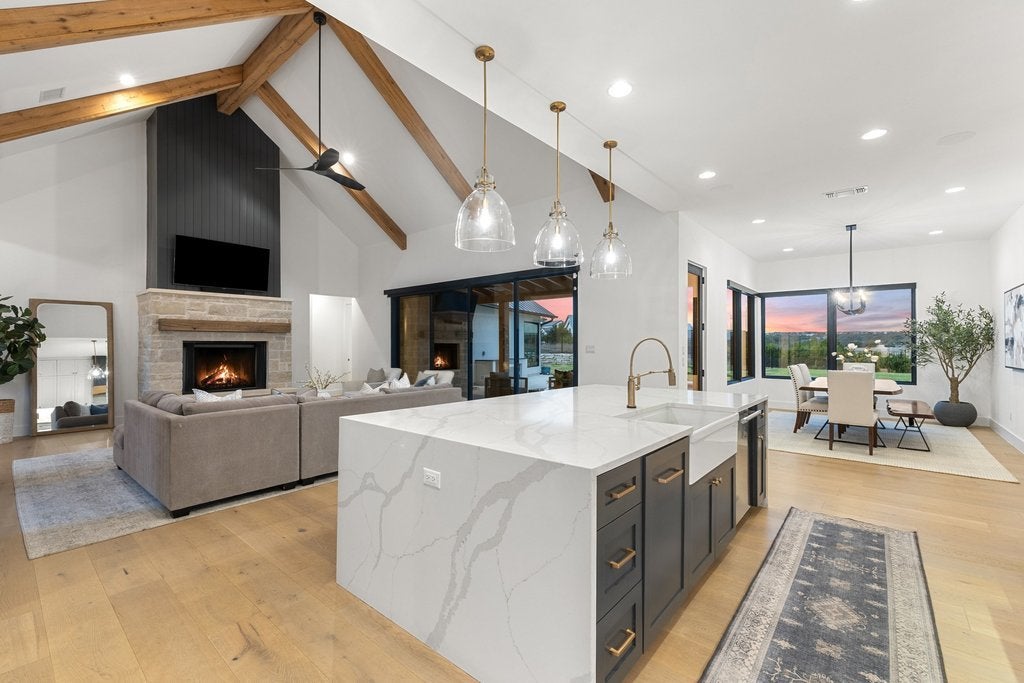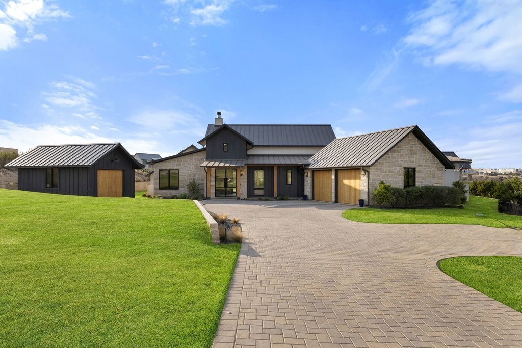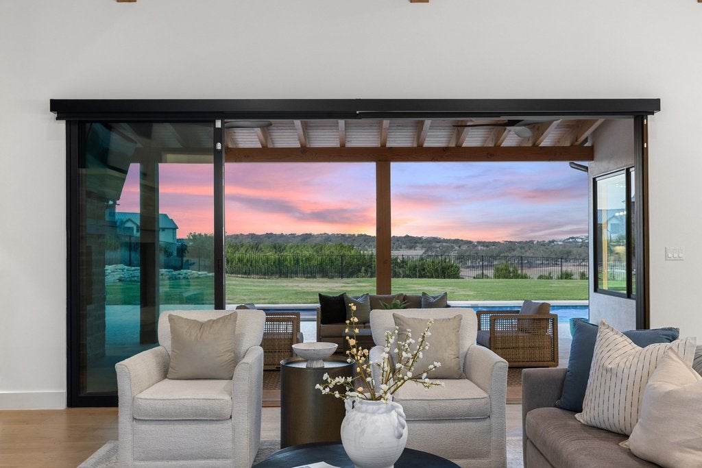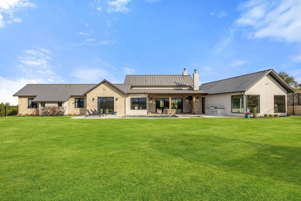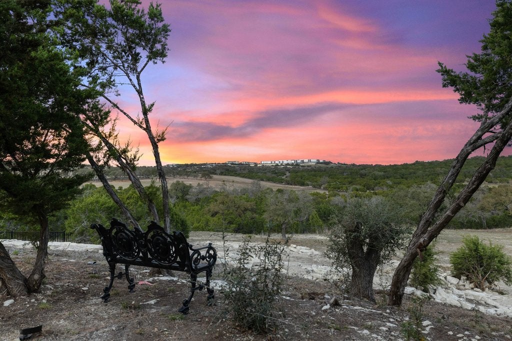 Nestled within the exclusive gated community of Creek’s Edge, this stunning Hill Country contemporary estate offers privacy, space, and breathtaking natural beauty across 2.68+/- acres. Designed for effortless luxury living, this single-story residence features 5 spacious bedrooms, 5 full bathrooms, and a dedicated study, all thoughtfully arranged within an expansive open-concept floor plan. White oak flooring, soaring ceilings, and abundant natural light create a warm yet sophisticated atmosphere throughout the home. The heart of the home flows seamlessly to the outdoors, where a resort-style pool overlooks sweeping Hill Country vistas, offering the perfect setting for relaxing evenings or elevated entertaining. The generous acreage provides exceptional flexibility for future enhancements, whether envisioning a guest house, sport court, additional outdoor living spaces, or gardens. Ideally located off Hamilton Pool Road in the highly acclaimed Lake Travis ISD, this private retreat is just minutes from the Hill Country Galleria, dining, shopping, and everyday conveniences, while still enjoying the tranquility of Hill Country living.