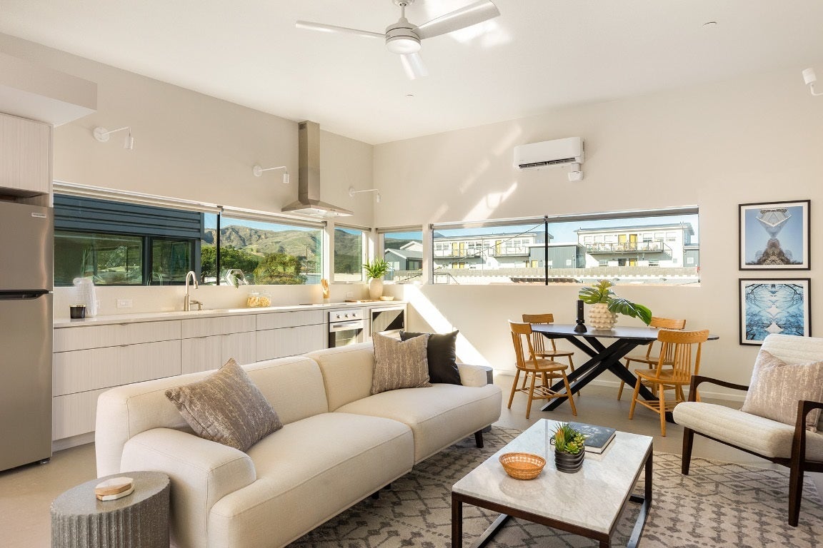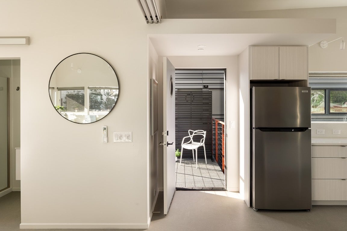 Richard Orne, Architect | Garden Street Studios | Live/Work Art Compound (Dual Zoning) Escape the pressures of big-city life at this unique live/work art compound less than a mile from the beach in downtown Ventura. Near the junction of Main Street and Ventura Avenue, the property sits close to restaurants, boutiques, parks, and trails that define the city’s easygoing charm. Bike paths run along the coast and inland toward Ojai and Pine Mountain. It’s a place where parking is simple, the pace slows, and friendly greetings are part of daily life. On a quiet two-block street with no through traffic—surrounded by residential, commercial, studios, and light industry—this is an inviting setting for creative living and working. Zoned for both commercial and residential use, four separate structures allow wide flexibility. The compound can act as a distinctive single-family alternative with four bedrooms, four bathrooms, and three additional studios with powder rooms, or operate as an income property with individual utility metering and potential for up to seven tenants. All units will be delivered vacant. As a commercial asset, the spaces can serve storefront, office, creative, fabrication, or retail purposes. Architecturally, the environment is striking: a renovated 1920s bungalow anchors the rear, while three newer stand-alone buildings front the site, each pairing an upper one-bedroom with a ground-floor studio. Landscaped courtyards connect the structures. Cantilevered forms, exposed steel, corrugated metal, and ribbon windows echo Case Study inspirations. Inside, a restrained palette includes sliding polycarbonate panels, polished concrete and Marmoleum floors, and operable windows framing views of nearby hills and winter snowcaps. The bungalow features board-and-batten siding, cork floors, new finishes, covered decks, and French doors opening to a private patio. 4 Addresses, 7 Units 4 Bedrooms, 3 Studios 7 Bathrooms 3,723 Square Feet 7,840 SF Lot