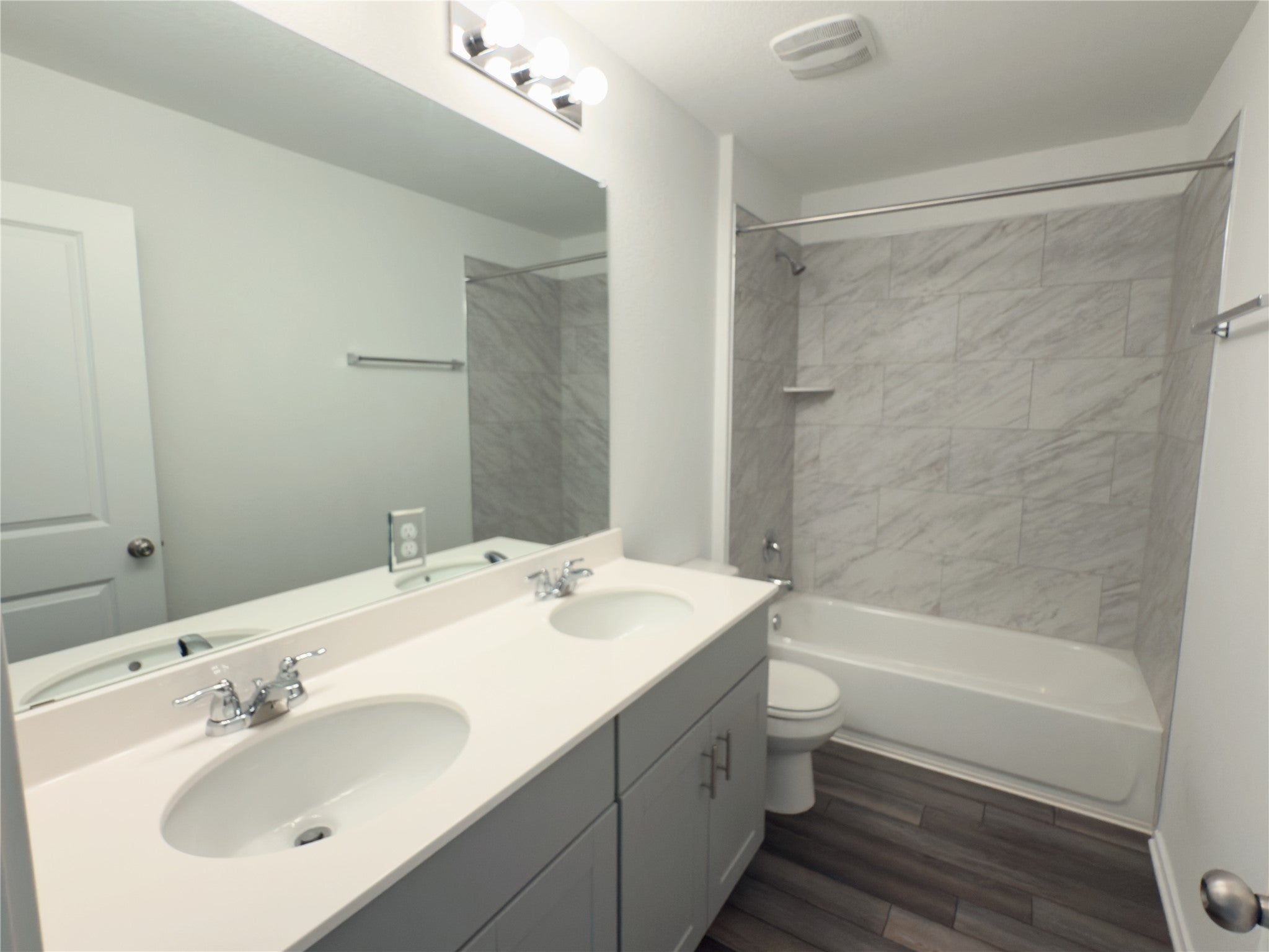 Step into a home that feels both spacious and cozy – the perfect place to create lasting memories. This beautiful 2-story, 4-bedroom, 3-bathroom home has everything you need for comfortable living, stylish entertaining, and everyday convenience. At the heart of the home is a stunning kitchen designed for both function and flair. It features a large center island, gleaming quartz countertops, soft light grey shaker cabinets, and stainless steel appliances – all thoughtfully laid out to make cooking a joy. The kitchen opens to the family room and looks out onto the fenced backyard, so you’re always connected whether you’re hosting friends or keeping an eye on little ones. Downstairs, you'll find a private office with elegant French doors just off the foyer – ideal for working from home or enjoying a peaceful retreat. The open dining and living areas are perfect for gatherings, with luxury vinyl plank flooring that’s both beautiful and easy to maintain. The living room even comes ready with a pre-mounted wall bracket that fits up to a 90" TV – movie night, anyone? There’s a perfect guest area on the main level, complete with a nearby full bathroom – perfect for visitors or multigenerational living. Upstairs, the spacious primary bedroom offers room for a California king bed and more. The second-floor laundry room, complete with smart appliances, makes daily routines a breeze. A bright and versatile bonus room at the top of the stairs adds even more flexible space for play, hobbies, or relaxation. And when it’s time to unwind outside, you’ll love being part of a community that offers a fun playscape and sparkling pool – a great way to enjoy sunny days and meet friendly neighbors. This home isn’t just a place to live – it’s a place to love. Come see it for yourself and discover all the comfort and charm it has to offer!