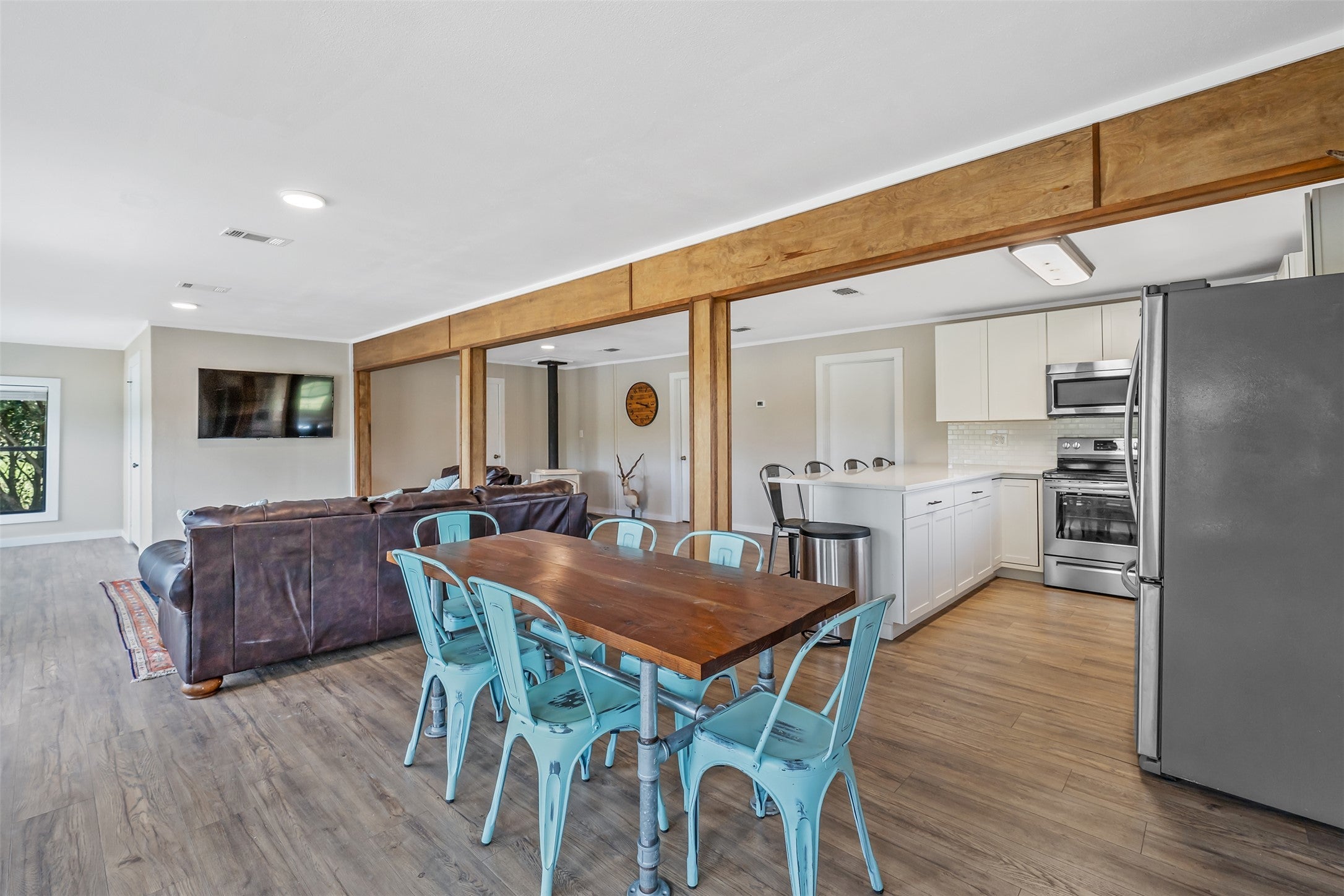 4 C’s Game Ranch – 490 Acres and 3 Homes on Premier Hunting & Recreation Land Located in Central Texas near Kosse, the 4 C’s Game Ranch offers 487 acres of diverse terrain, premium hunting, and quality improvements—just 2 hrs from Austin and Dallas, 2.5 from Houston, and 1 hr from College Station. This turnkey ranch features 282 acres of high-fenced land stocked with exotic and native species including axis, fallow, aoudad, red stag, oryx, blackbuck, and whitetail, supported by food plots and breeding/release pens. The remaining 205 acres of low-fence land offers classic Texas hunting with whitetail, hogs, doves, predators, and varmints. Duck Creek, a year-round, spring-fed creek, runs through the property, complemented by three ponds—two stocked with bass, perch, and crappie—enhancing both wildlife habitat and recreation. The land itself is a blend of mature hardwood timber and open pastures, ideal for wildlife, grazing, and scenic views. Three homes accommodate owners, guests, and staff: a 3/2 main house with modern rustic finishes and a spacious patio; a 3/2 cabin-style home with porch and access to a shooting range; and a two-story 3/2 guest house with a wraparound deck. Infrastructure includes barns, a 45x30 workshop, a 25x50 equipment shed, a covered game cleaning station, two wells, and improved ranch roads. With an ag exemption, well-planned amenities, and exceptional hunting potential, the 4 C’s Game Ranch is a rare opportunity for recreation, retreat, or full-time ranching in a prime location.