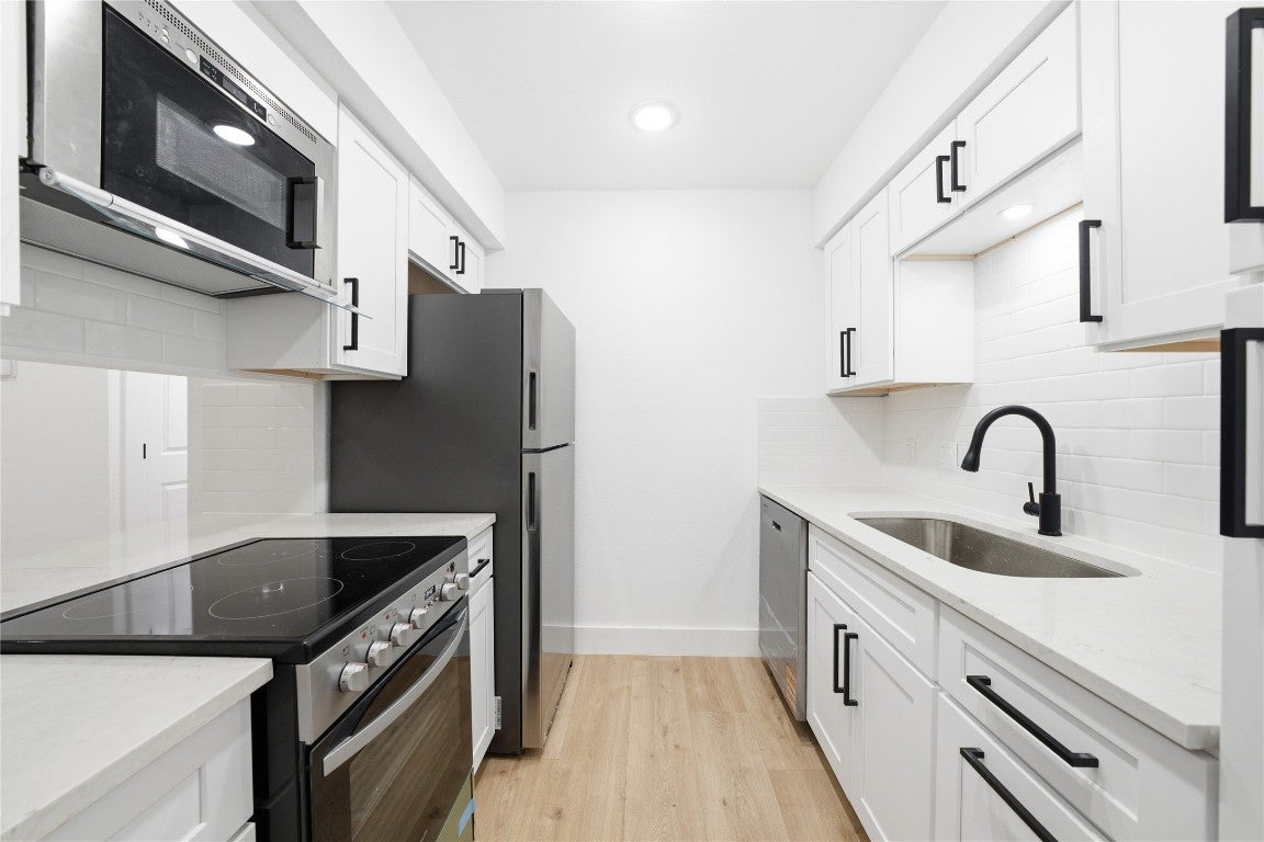 - Dishwasher, Disposal, Microwave, Refrigerator, Built-In Electric Range, Electric Water Heater
