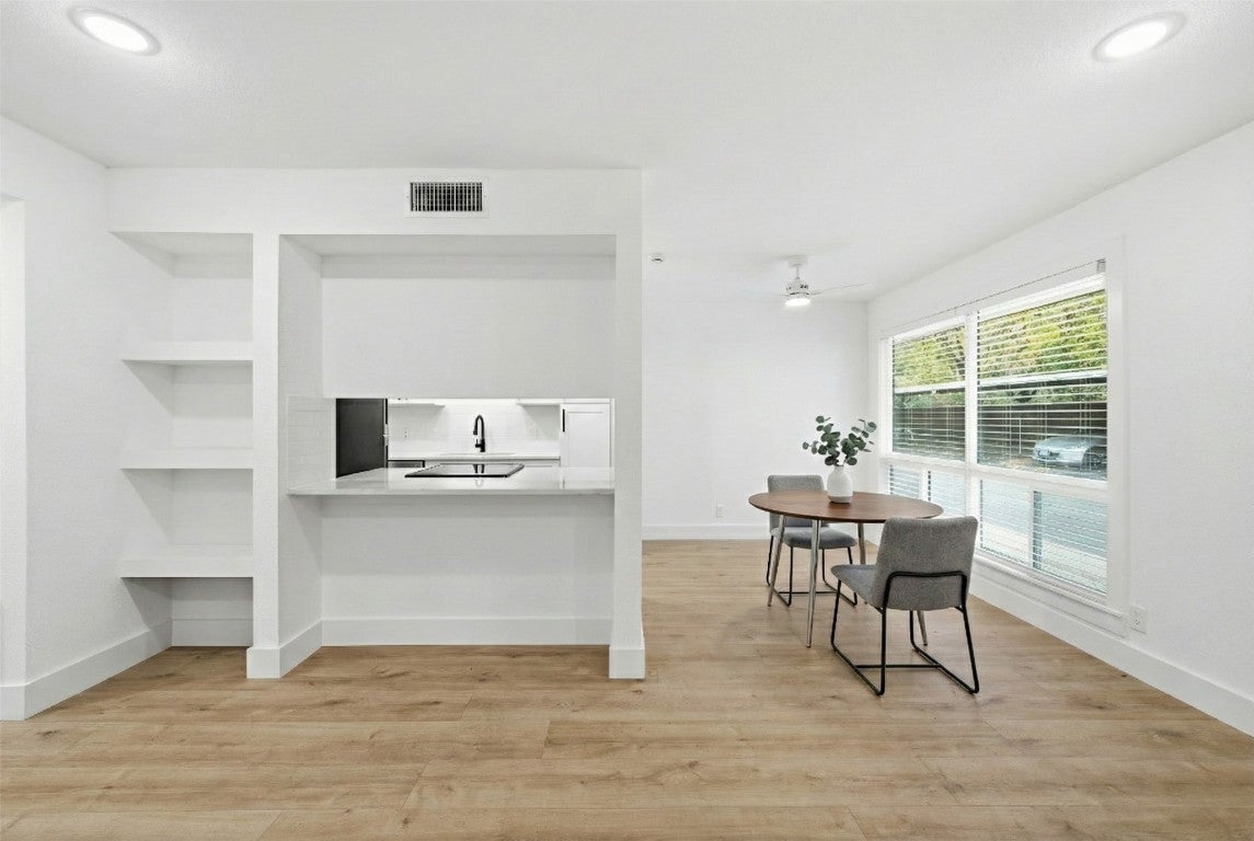 Fully renovated first-floor condo with stunning views of Downtown Austin and Lady Bird Lake. This 2-bedroom, 1-bath residence offers 791 square feet of thoughtfully updated living space with skyline and lake views from the front door and additional lake views from the back patios—an uncommon setup in this location. The unit has been completely remodeled and is truly move-in ready. Updates include new flooring, fresh paint throughout, refinished walls, upgraded lighting, new windows and sliding patio doors, a brand-new kitchen with new cabinetry, quartz countertops, and new appliances, plus a fully remodeled bathroom featuring modern fixtures, a new vanity, and a walk-in shower. Major system upgrades include a new HVAC system and water heater. The condo includes two dedicated parking spaces, a rare perk this close to downtown. Located just 5–10 minutes from Zilker Park, Auditorium Shores, Downtown Austin, South Congress, East Austin, and some of the city’s best restaurants, shopping, and outdoor attractions. Enjoy one of the best condo views Austin has to offer with unbeatable proximity to everything that makes the city special. The community features two swimming pools, on-site washer and dryer facilities, and a kayak/canoe launch with direct access to Lady Bird Lake. The unit benefits from a grandfathered HOA fee that is significantly lower than many nearby complexes and includes water, sewer, and trash. Condo has been warrantable in the past.