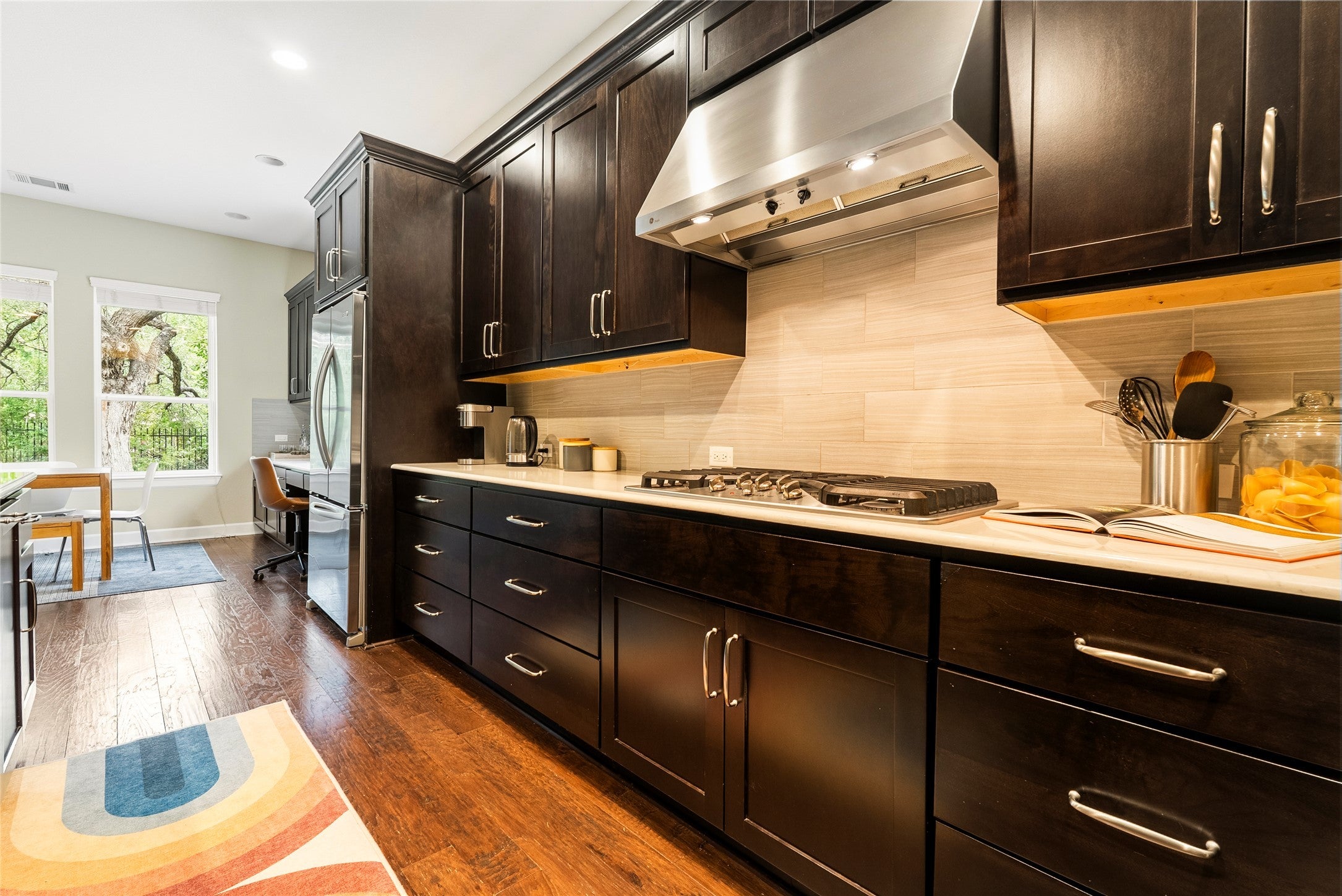 - Cooktop, Dishwasher, Gas Cooktop, Disposal, Gas Water Heater, Microwave, Stainless Steel Appliance(s), Built-In Oven, Range Hood