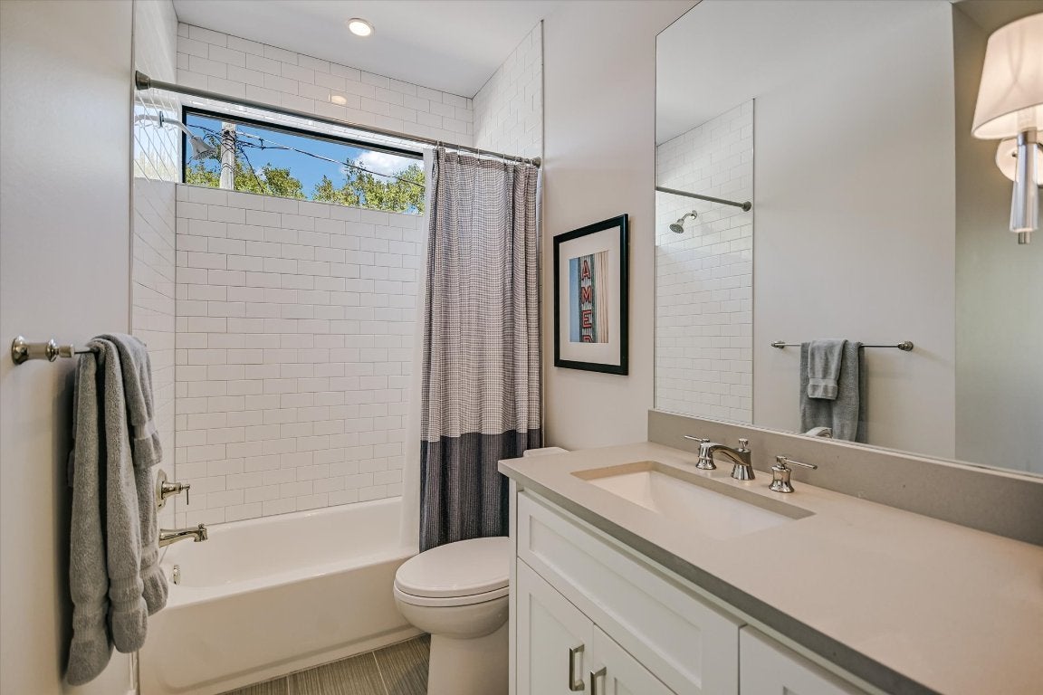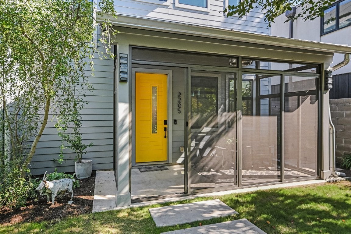 Tucked into the heart of Bouldin, 2205 South 3rd captures the essence of 78704 living—effortlessly stylish, thoughtfully designed, and remarkably private. Built in 2016, the home blends clean architectural lines with warm, natural materials, offering a rare combination of urban access and everyday retreat. Entry is through a fully fenced front yard framed by mature native greenery and a screened porch that sets a quietly refined tone. The open-concept interior features expansive living and dining spaces anchored by a large kitchen, where custom cabinetry, generous storage, and a central island invite easy gatherings. Oversized sliders blur the line between indoors and out, opening to a covered patio and a heated and cooled pool wrapped in Ipe and Lueder decking—a seamless extension of the living space. The main-level primary suite offers quiet separation with a spa-like bath and walk-in closet, while upstairs, three additional bedrooms and two full baths (one en suite, one Jack-and-Jill) provide flexibility for family, guests, or office space. A second living area on the upper level adds versatility for media, play, or work. Modern sustainability is integrated throughout, with solar panels and Tesla Powerwall batteries that offset electric costs and ensure protection from power outages. Additional exterior features include a standing-seam metal roof and full irrigation. A motorized alley gate offers convenient access to covered parking and storage, while the property’s layered landscaping and fencing ensure privacy throughout. Set within walking distance of South 1st Street favorites—Lenoir, Elizabeth Street Café, Bouldin Creek Café, and Polvos—and minutes from downtown, this home offers the best of Austin’s creative core. It’s a modern farmhouse done right, offering privacy, comfort, and design integrity in one of the city’s most coveted zip codes.