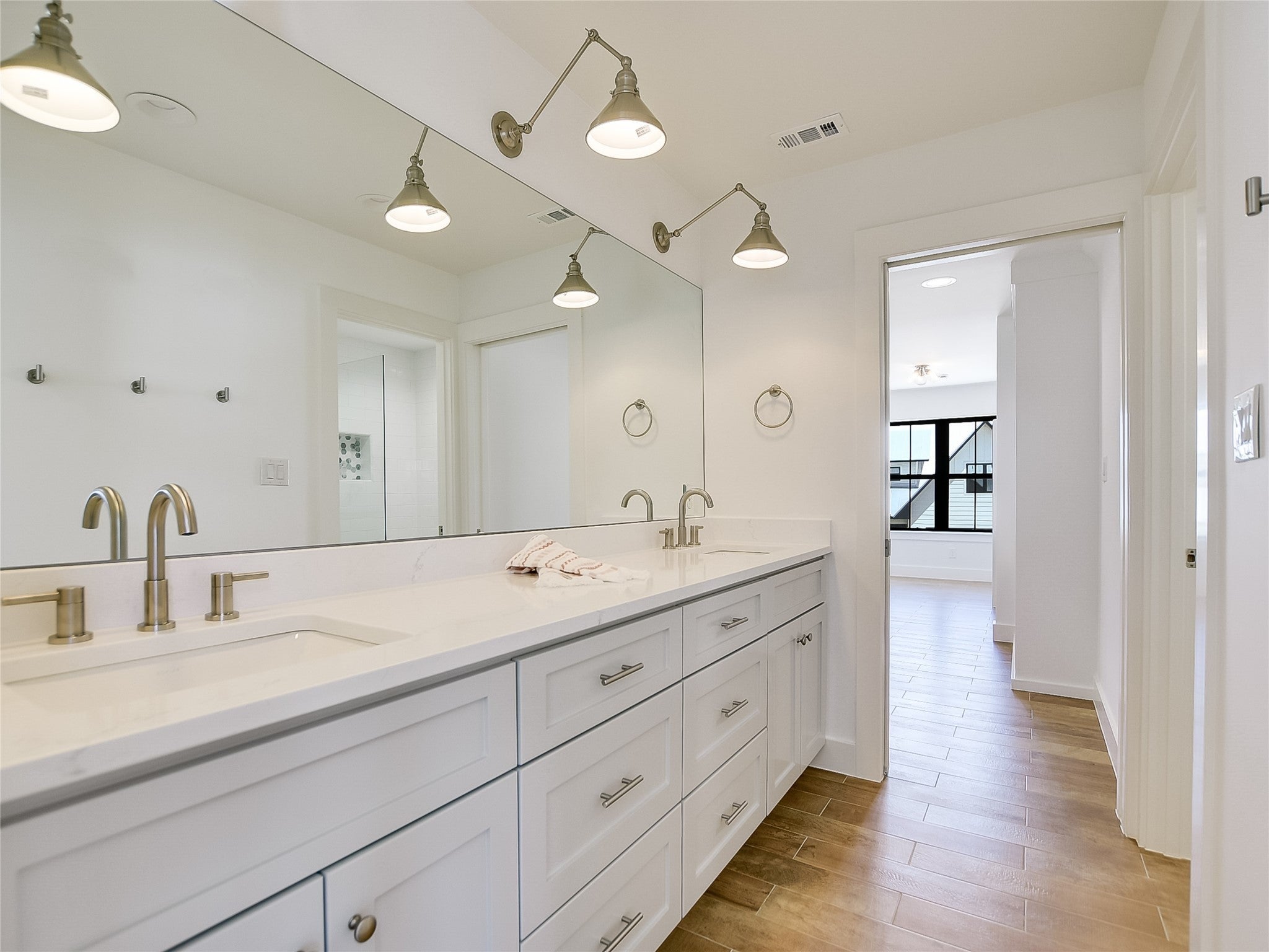 ENJOY LUXURY LAKE LIVING PRICED BELOW MARKET in the gated subdivision of THE COVE AT LAKE LBJ. This amazing NEW construction Modern Farmhouse is 2932 sqft with 4 bedrooms, 3.5 bathrooms, a two car garage complete w/ extra refrigerator, additional W/D, large fenced private yard with a custom splash pool and can sleep 12-15 people comfortably, making it a great place to call home or a great turnkey Short Term Rental opportunity. This home boasts the finest in materials including hardwood floors, quartz counter tops in the large kitchens & bathrooms, stainless steel appliances, a gas cooktop, wine refrigerator.. designer finishes, & one bedroom as an over-the-top bunk room, laundry rooms upstairs as well as downstairs. The community features a regulation pickle ball court, also with use as a basketball court, a covered pavilion with grills, flat screen tv, dining areas, lounging areas as well as uncovered lounge areas, all under the towering oak shade trees & overlooking the lake. Just steps away is the lake featuring 8 boat slips & a slip for jet ski’s & easy access for kayaking & stand-up paddleboards. Tucked in a cove right off open water makes this a highly desirable & user-friendly watersports haven. The Cove at LBJ is also minutes from world class golfing. Enjoy wine tasting in the Hill Country, shopping, casual or fine dining or all-day enjoyment on the lake & in your private home. Residents can choose to use the day dock as well as secure a private boat dock for an additional $100,000. Come take a look today!