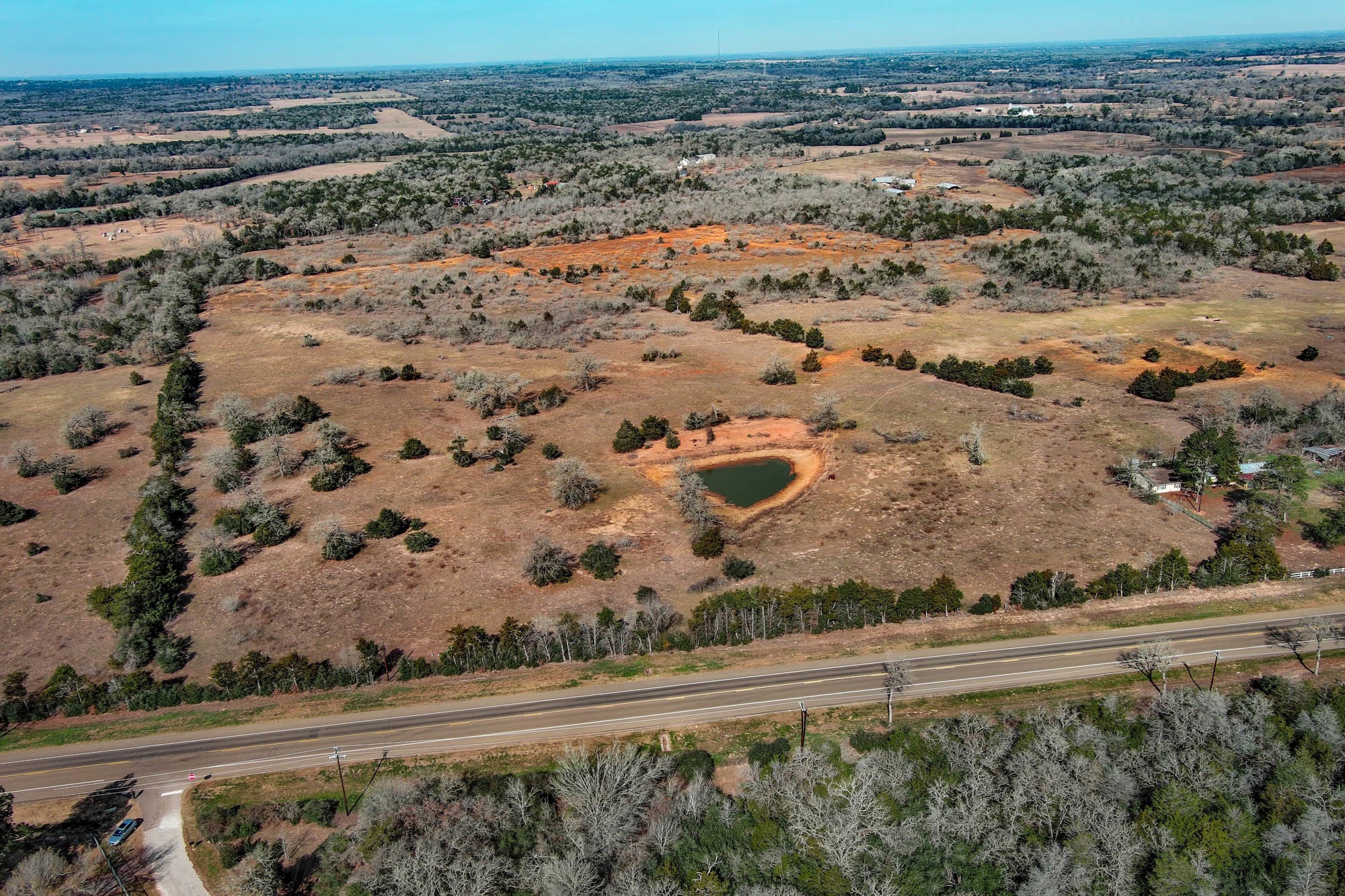 Excellent investment opportunity in Bastrop County featuring extensive Hwy 304 road frontage and additional county road access from St. Mary’s Rd at the rear of the property. This versatile tract includes an existing 2-bedroom, 1-bath cabin and an older 2-bedroom, 2-bath singlewide. A scenic homesite is shaded by mature pine trees and already has a water meter and electric service in place. The land offers three ponds, a desirable mix of open pasture and native brush, and ample space for agricultural use, recreational property, or a private rural homestead. Conveniently located near Bastrop and less than an hour from Austin, this property is situated in a growing area of Central Texas with strong long-term potential.