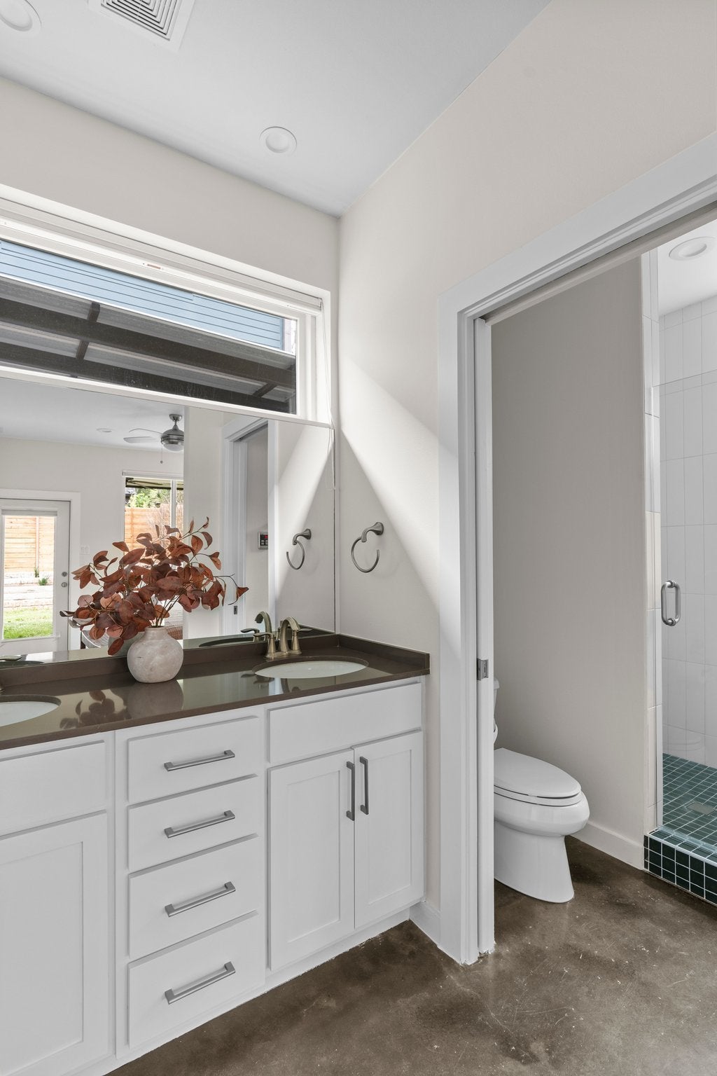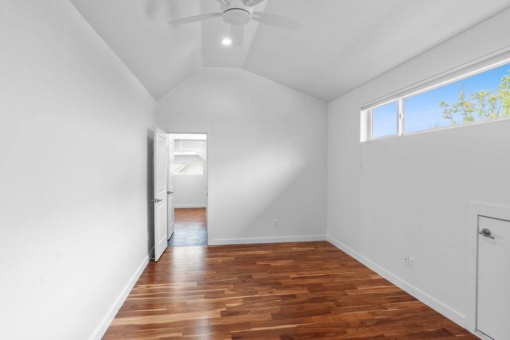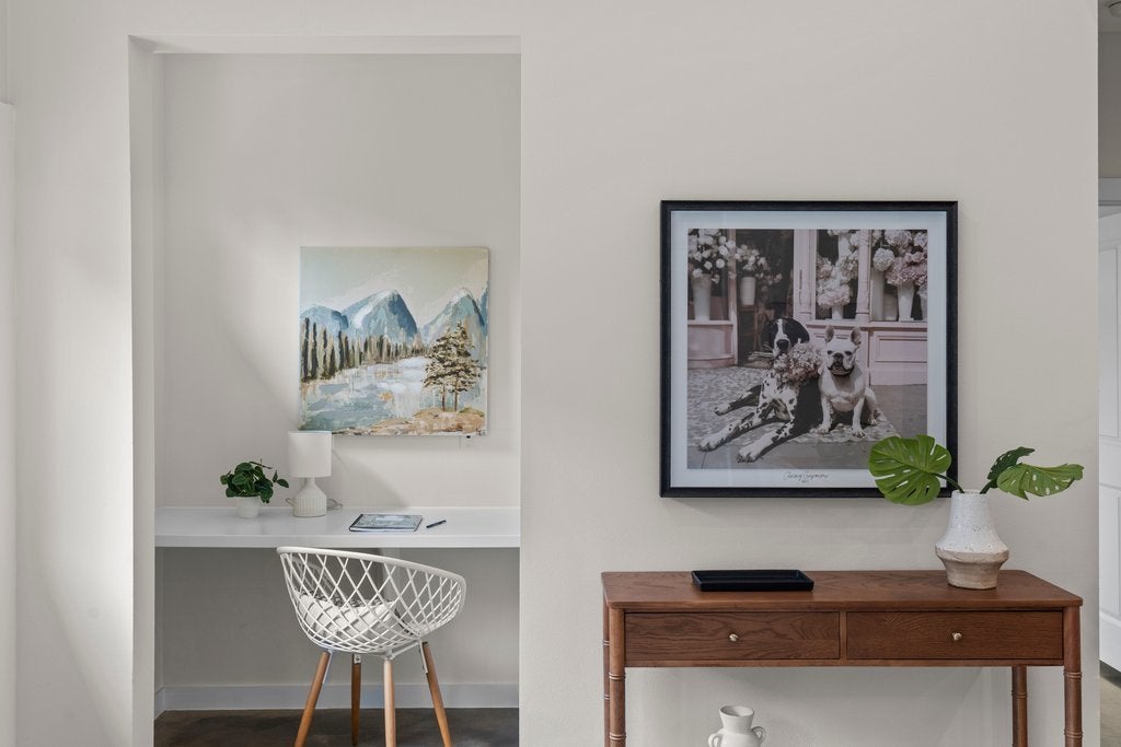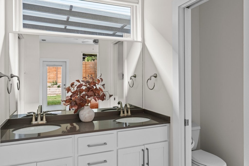 Tucked into a quiet 13 home community in the heart of 78704, this thoughtfully designed home offers modern style, meaningful owner upgrades, and a surprisingly private outdoor setting. The open floor plan features polished concrete and acacia wood floors and quartz countertops throughout, creating a clean and durable space that works well for everyday living and entertaining. The spacious primary suite is located on the main floor and opens directly onto a covered screened porch with motorized screens, a comfortable spot for morning coffee or relaxing in the evening. The porch overlooks an oversized corner lot with terraced gardens, creating a private outdoor space with plenty of greenery. Recent owner updates include freshly refinished kitchen and bathroom cabinetry, along with new paint on the walls and trim throughout the first floor. Bathrooms have been updated with new tile, frameless glass showers, and generous custom niches for shower storage. The primary bath features a double vanity and walk in shower. Upstairs are two additional bedrooms, a full bath, and a large walk in storage room. Built for comfort and efficiency, the home includes spray foam insulation, dual pane windows, and a tankless water heater to help keep utility bills low year round. Low HOA fees include irrigation and lawn care and maintenance for both the front and back yard. Located on a quiet cul de sac just a short walk from South 5th Recreation Center with trails, tennis and basketball courts, fields, and a playscape. Also convenient to the local shops and restaurants along South 1st Street, South Congress, and South Lamar, with quick access to downtown Austin and the airport.