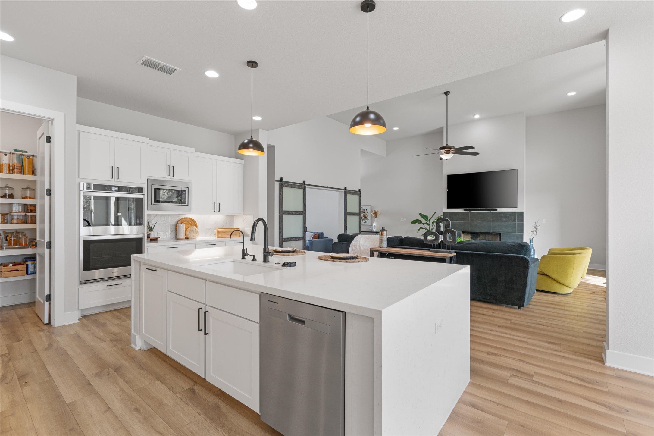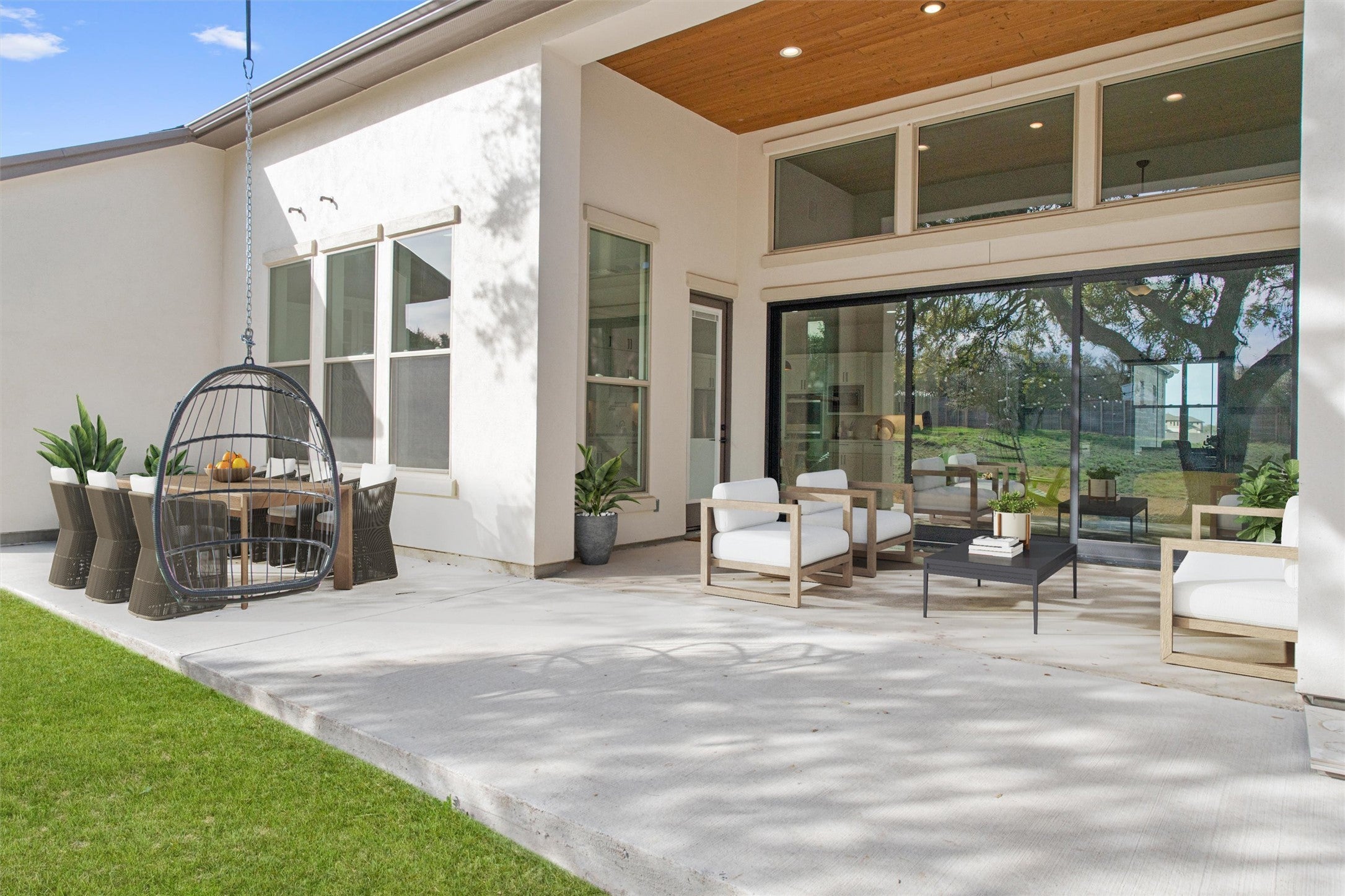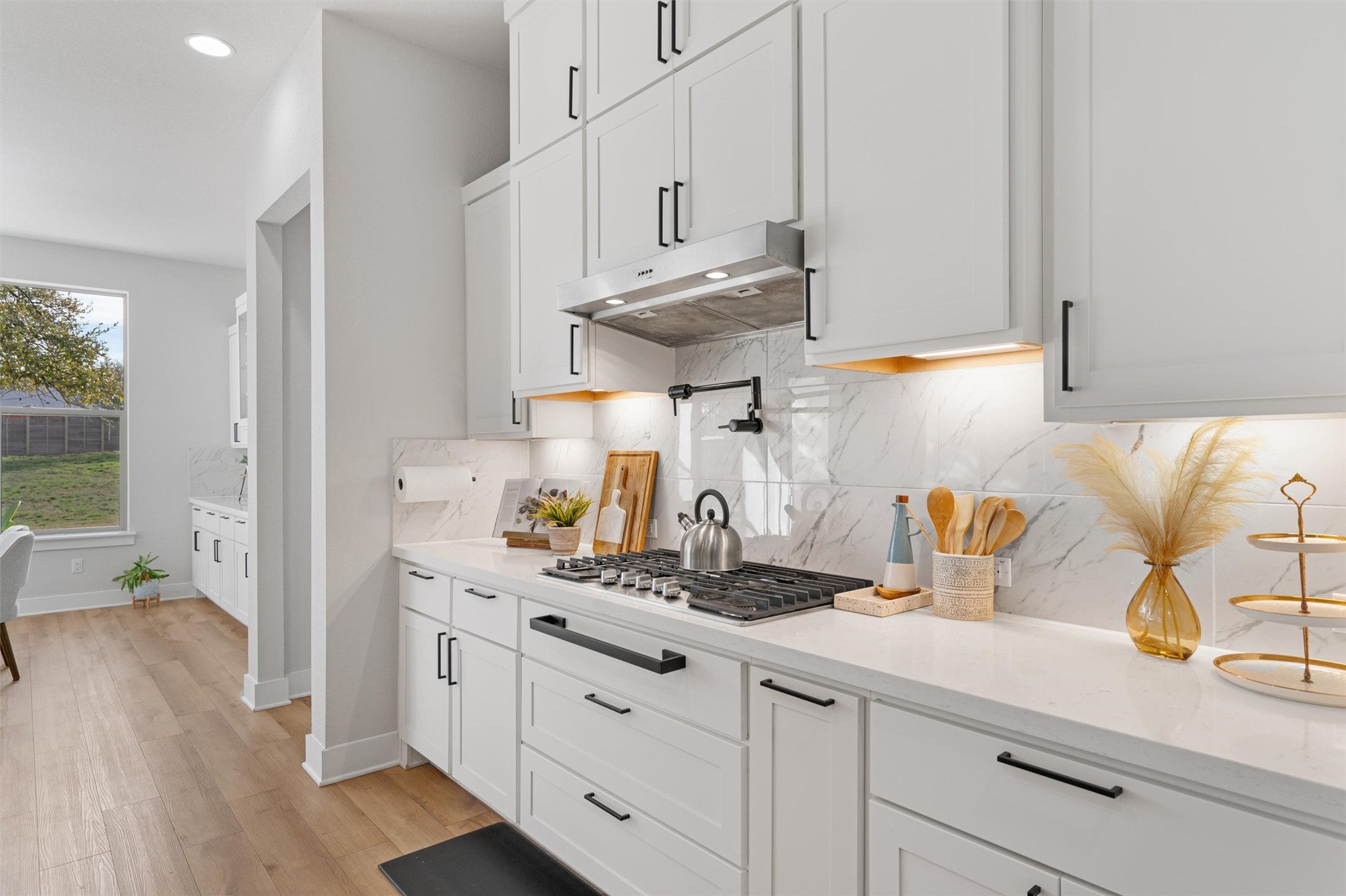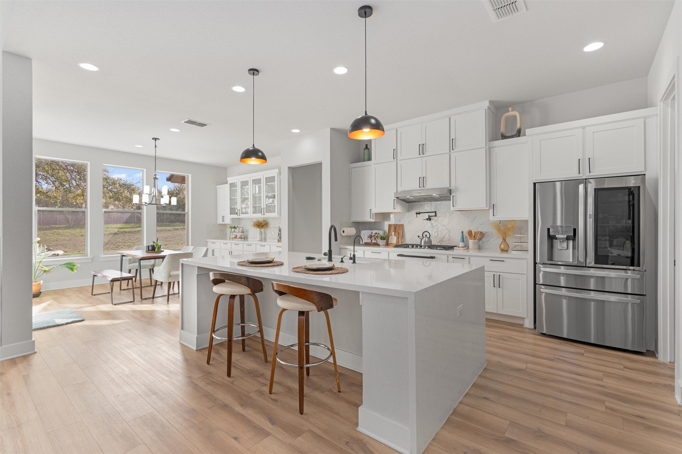 Discover refined living in this beautifully upgraded Monticello-built home, where timeless design meets modern sophistication—now available for lease. Every detail has been thoughtfully curated, showcasing designer finishes, elegant neutral tones, and an abundance of natural light that creates a warm, inviting atmosphere throughout. The chef’s kitchen is the heart of the home, featuring a waterfall-edge granite island, premium cabinetry, and a 48” Whirlpool gas cooktop with built-in griddle—ideal for hosting gatherings or creating memorable everyday meals. Enjoy seamless indoor-outdoor living with expansive sliding glass doors that open to an extended covered patio. The primary suite offers a serene escape, complete with a spa-inspired bath featuring an oversized walk-in shower, a luxurious soaking tub, and upscale fixtures that exude tranquility and style. With 14-foot ceilings and wall-to-wall windows, this home feels open, bright, and effortlessly elegant. Located in a rapidly growing community, you’ll appreciate being just minutes from the now completed 183 Toll Road and near exciting new retail developments, including Costco. This exceptional home offers the perfect blend of luxury, comfort, and convenience—ready for you to lease and enjoy.