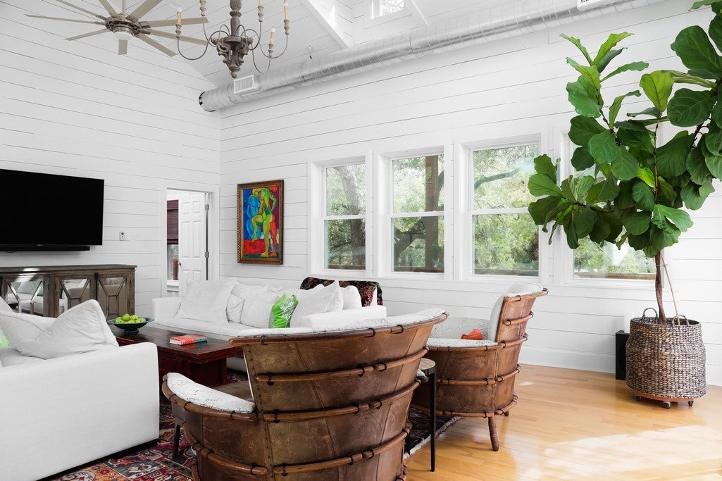Welcome to your oasis at 16429 Red Wagon Lane, where charm meets natural beauty! Nestled within a serene landscape, this home offers a unique and tranquil retreat, backing onto a 713-acre bird preserve and a gentle wet weather creek that flows into a shared grotto. Upon entering, vaulted, high ceilings adorned with shiplap grace the modern farmhouse design, allowing an abundance of natural light to illuminate the space, creating a bright and airy ambiance. Stunning views of the expansive lush green yard greet you from every corner of the home. The heart of the home lies in the shared kitchen and dining area, boasting stainless steel appliances, and natural stone countertops. A captivating stone fireplace adds warmth and character, complemented by dual ceiling fans that ensure comfort year-round. The spacious living room serves as a dream gathering space, complete with dual ceiling fans and an elegant chandelier, perfect for hosting memorable moments with loved ones. Retreat to the primary ensuite, a sanctuary of relaxation, featuring a dual standing shower, dual vanity, and modern updates throughout, providing the utmost comfort and convenience. A second primary suite offers easy access to the expansive covered porch with a breathtaking view. The laundry room has bonuses, including a dog wash station, built-in dual desk, and laundry station. Step outside to the backyard, a scenic haven for outdoor entertainment and relaxation. The covered porch offers the perfect setting for hosting gatherings while grilling outdoors and enjoying the view of the mature oak trees surrounding the property. Unwind under the stars beside the natural stone fire pit embracing the tranquility of nature. For equestrian enthusiasts, the property features a barn with three horse stalls. Come experience the best of Leander living at 16429 Red Wagon Lane – a harmonious blend of modern comfort and serene natural surroundings awaits you.