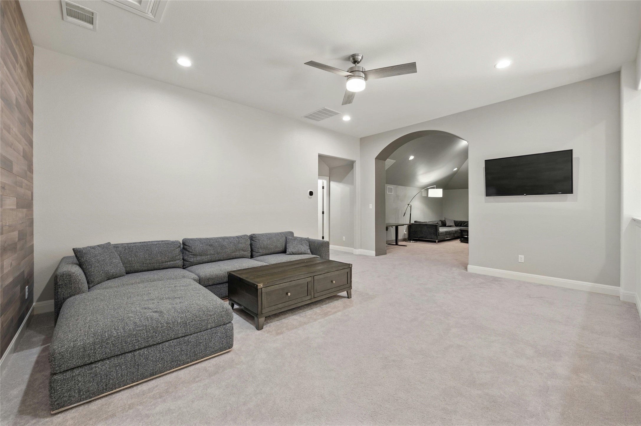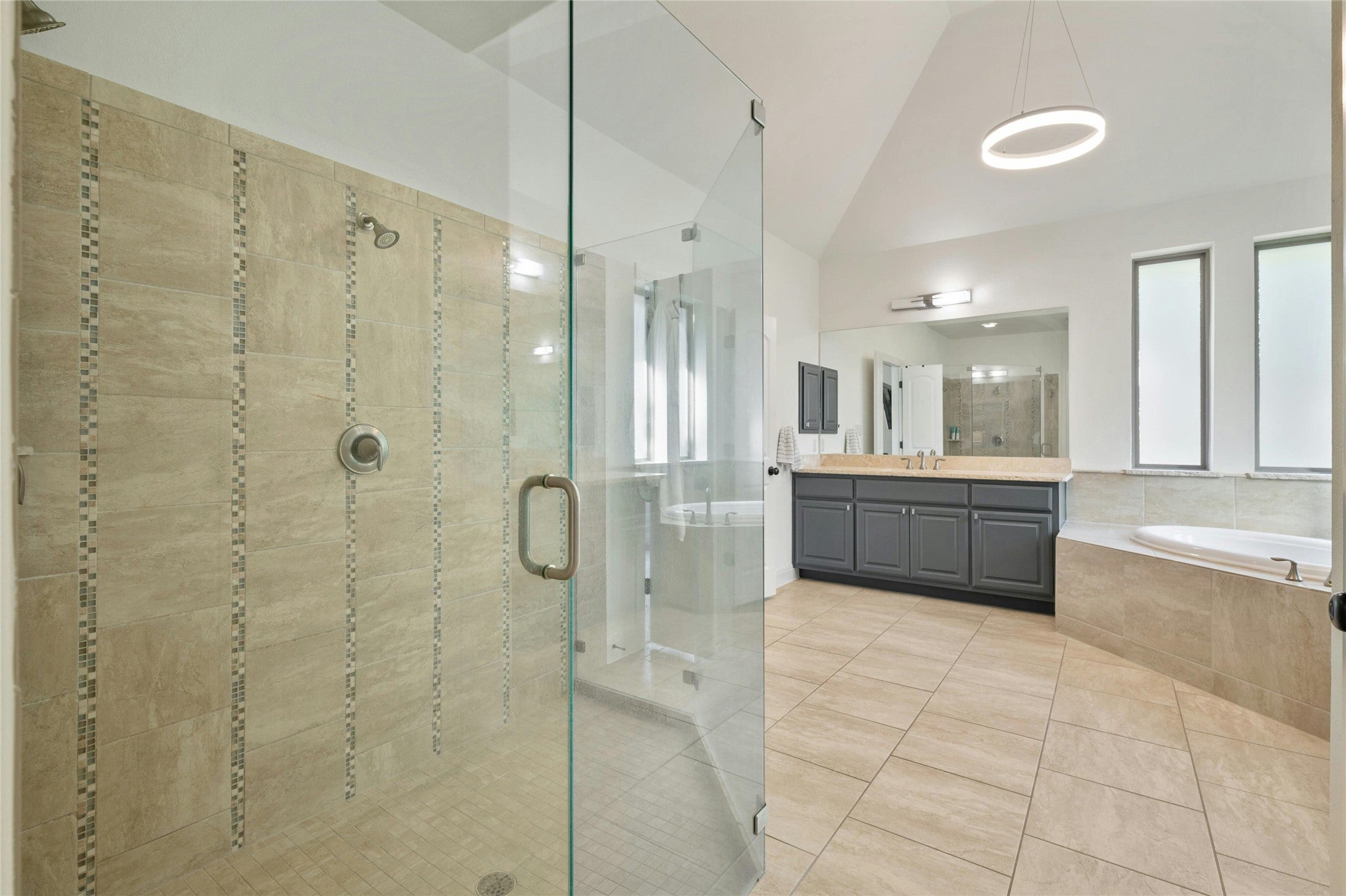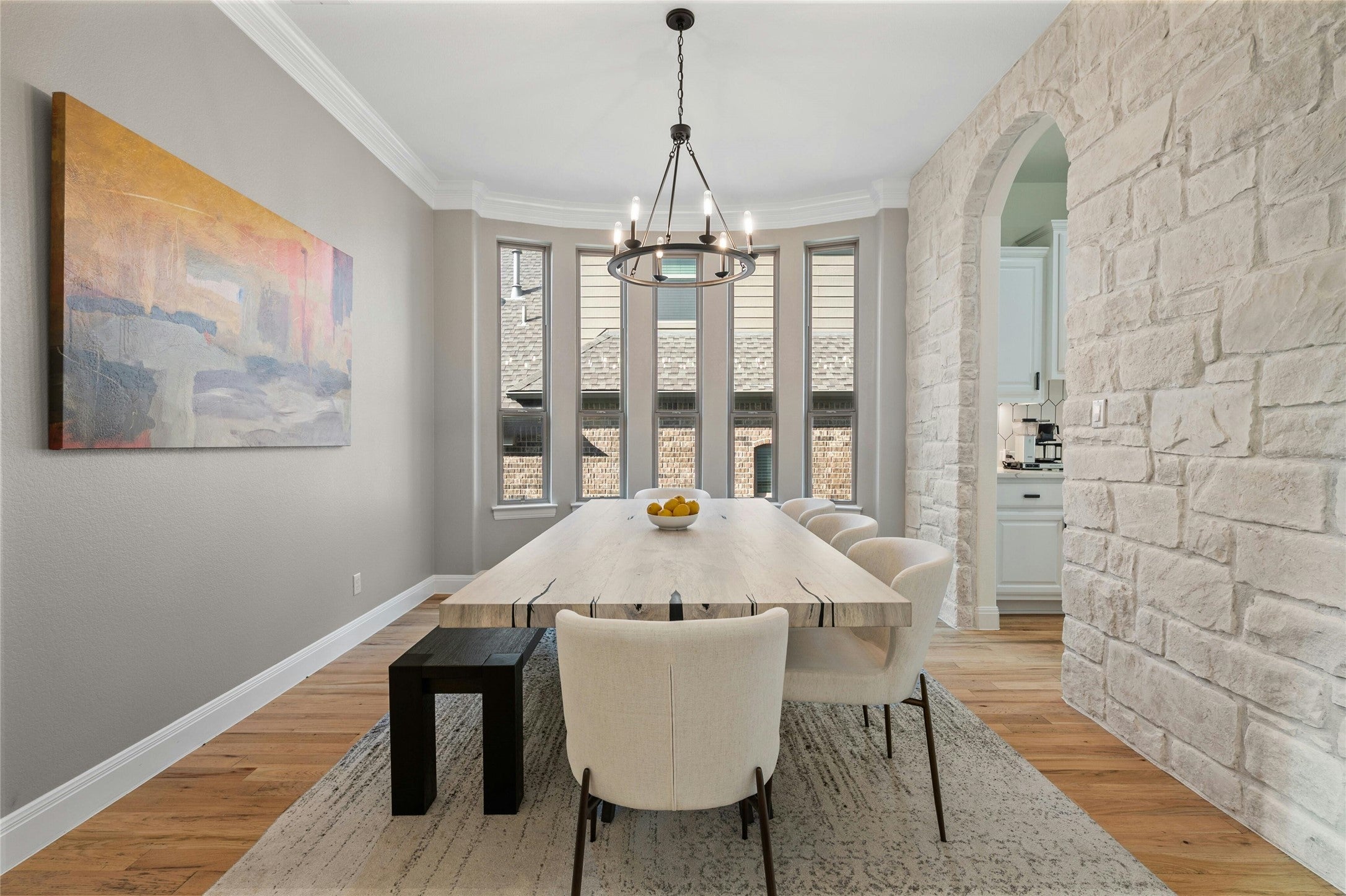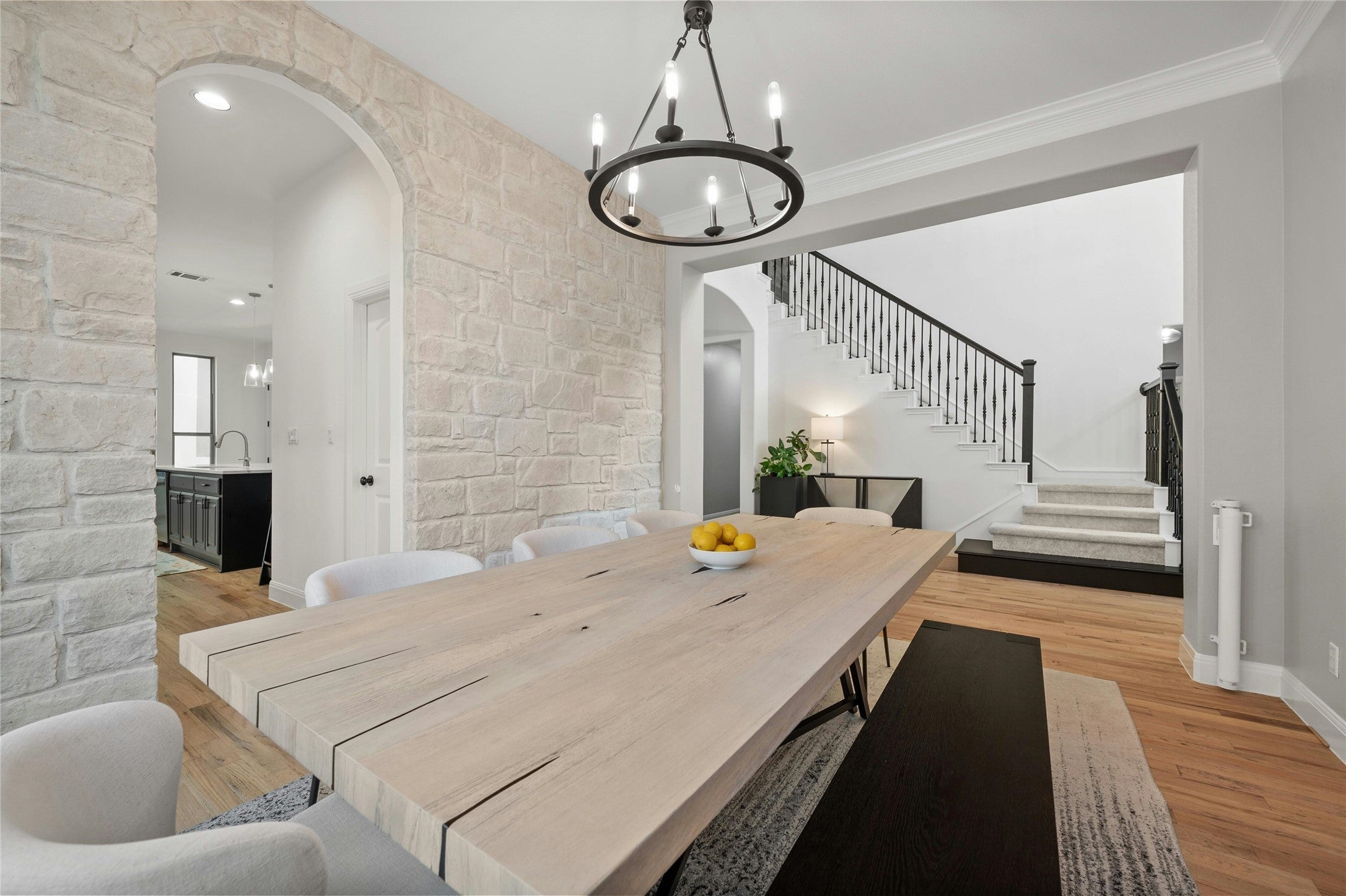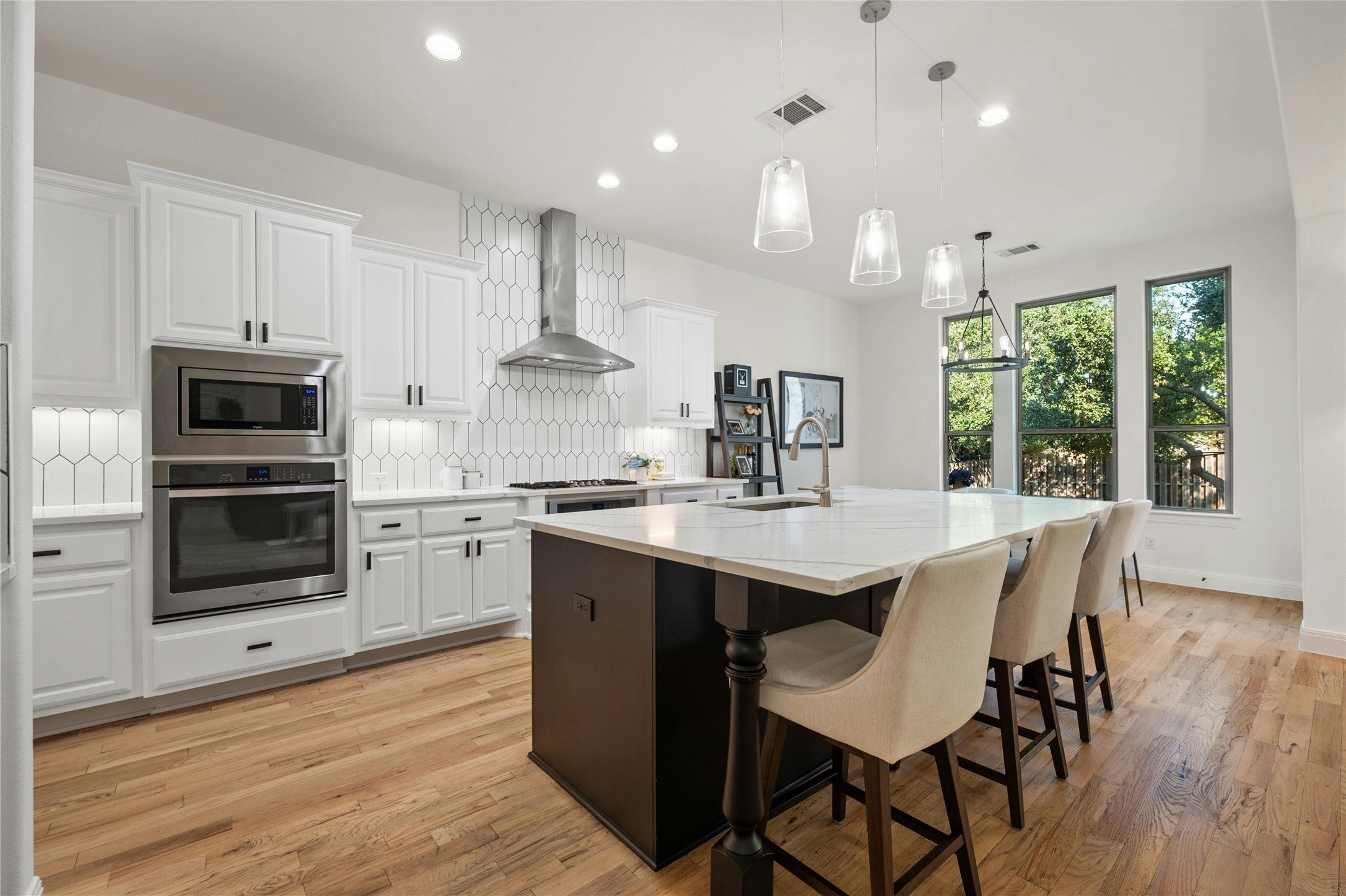 Experience luxury living in this beautifully upgraded Drees Kenwood floorplan, now available for lease in the highly sought-after Rocky Creek Neighborhood. This meticulously maintained home combines stylish, contemporary design with ultimate comfort, offering a perfect retreat in the Texas Hill Country. As you step inside, you'll be greeted by an array of premium upgrades. The formal dining room, accented by a stunning stone wall, leads seamlessly to the butler’s pantry and a chef-inspired kitchen. The kitchen features new quartz countertops, a modern backsplash, multiple ovens, stainless steel appliances, and ample storage, making it perfect for hosting and daily living. The expansive living room, with its high ceilings and floor-to-ceiling windows, offers serene views of the outdoors. The original hardwood flooring flows through the open-concept layout, enhancing the home's elegance. The primary suite is a true sanctuary, boasting high ceilings, a large walk-in closet, and a luxurious spa-like bath. The in-law floor plan includes a spacious downstairs bedroom, providing extra flexibility. Upstairs, you'll find additional spaces for entertainment, including a game room, media room with a wet bar, and two more bedrooms with walk-in closets—one with an ensuite bath. The garage offers extensive storage options, including 800 square feet of additional space with overhead racks. There is an electric car charger and epoxy floors. The backyard is a versatile space, perfect for a pool, garden, or play area. The large, covered patio features an outdoor kitchen with a built-in BBQ, fridge, fireplace, and TV wiring—ideal for outdoor relaxation. Enjoy the community amenities, including being walking distance to the pool, playground, and trailhead leading to miles of preserved space. Zoned for Lake Travis ISD!