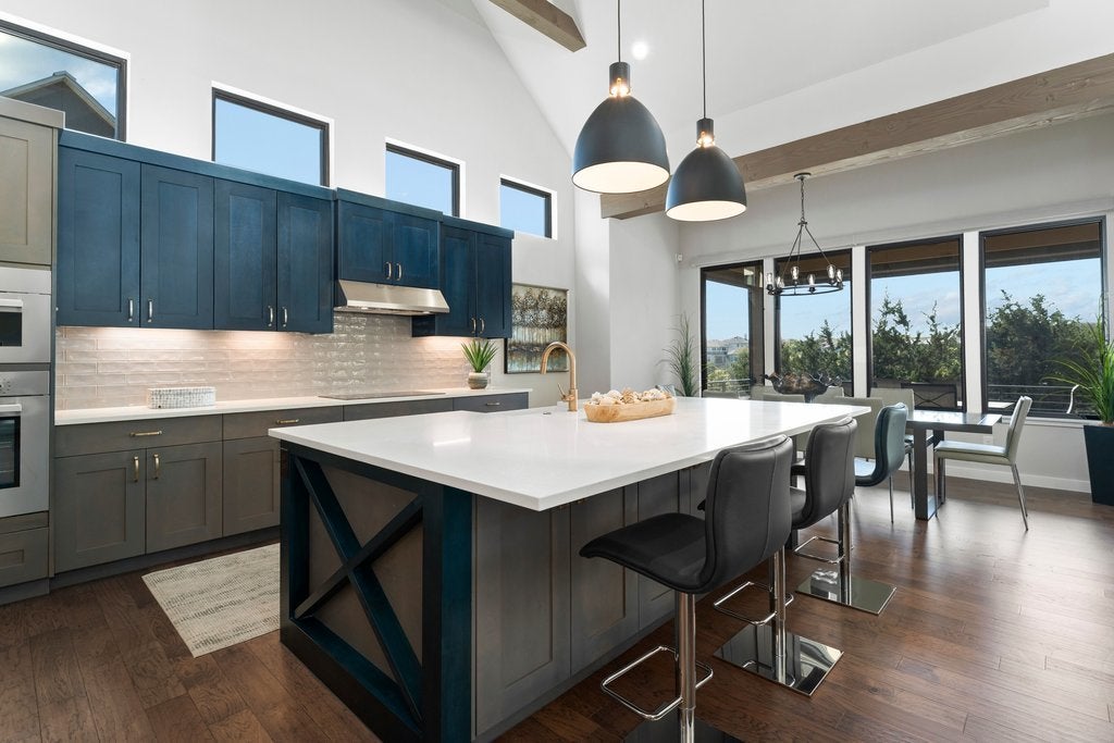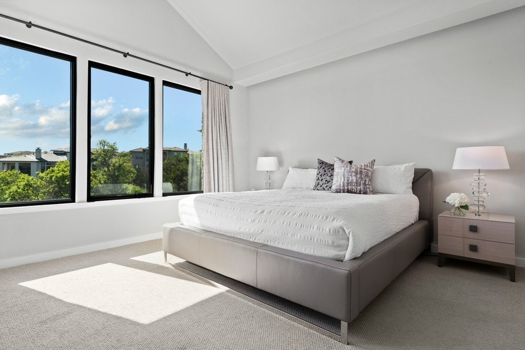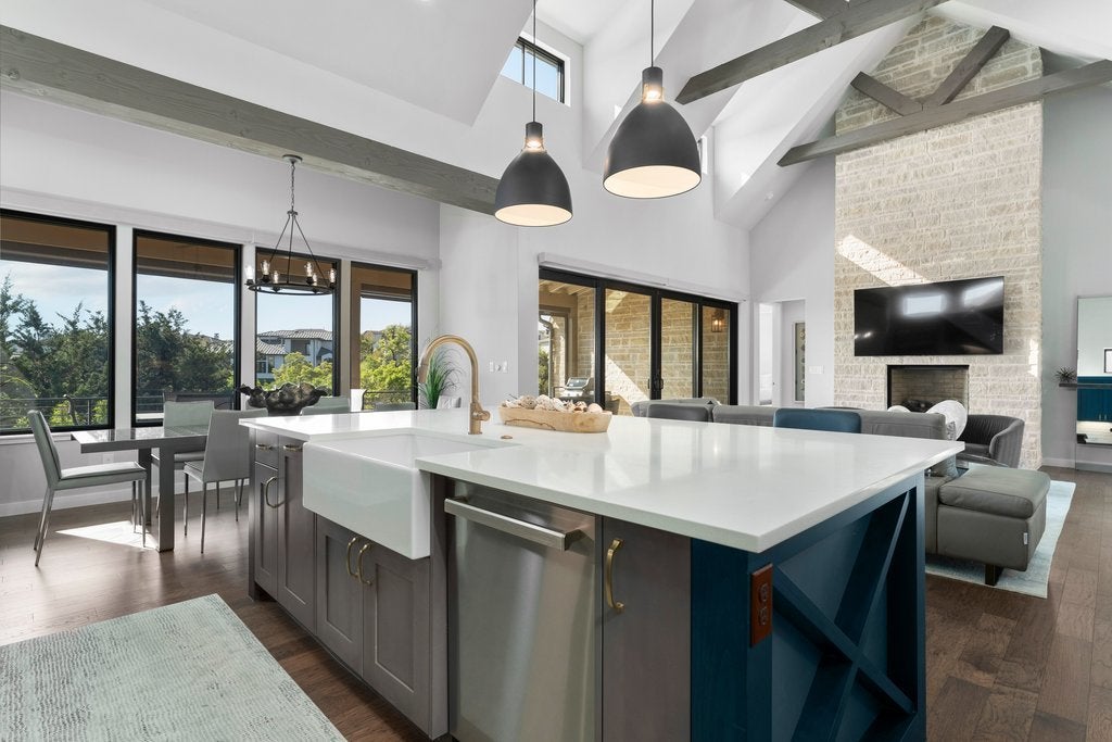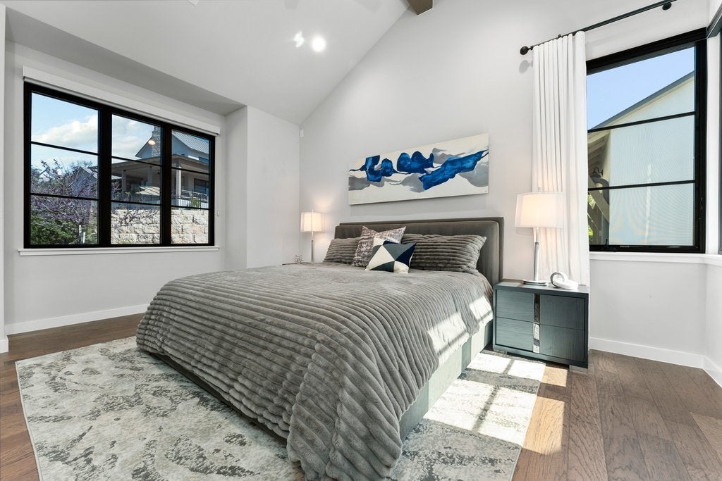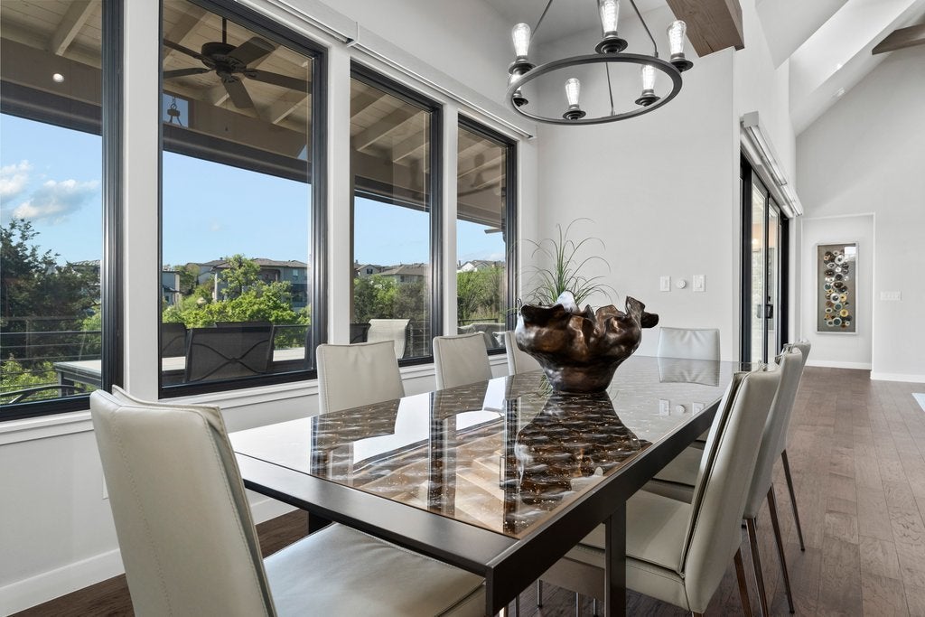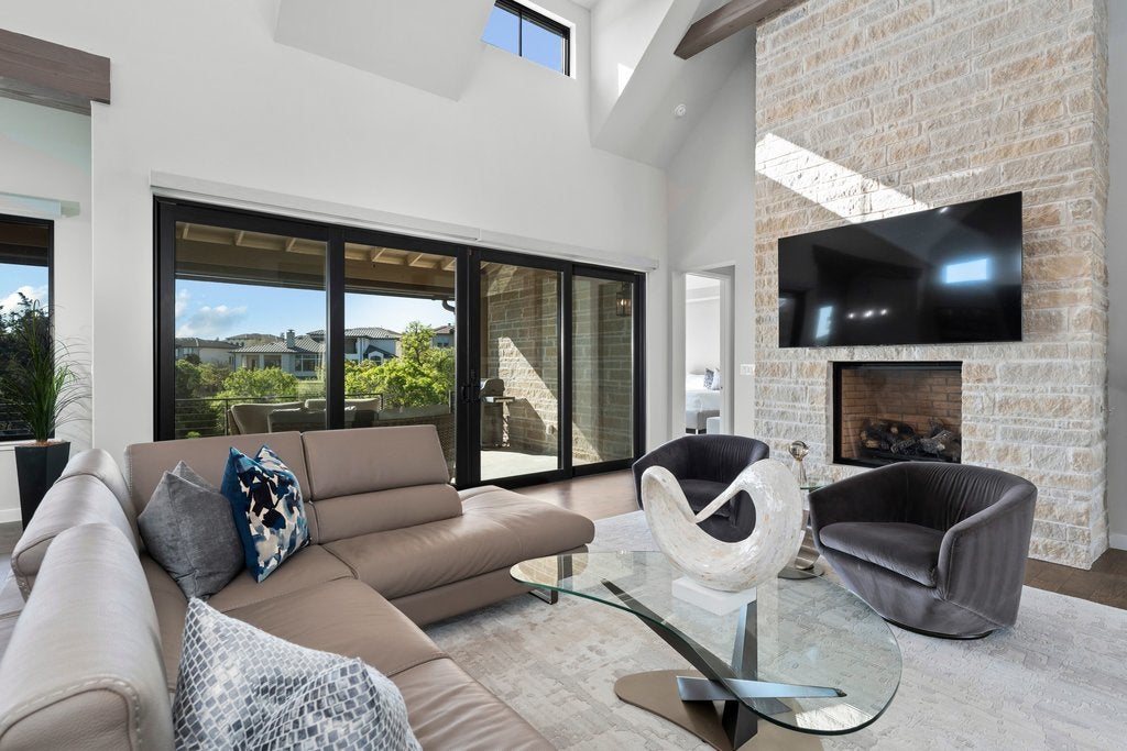 **Seller financing available at 4.5% APR for 30 years** Experience modern Hill Country living with this award-winning Legacy Builders home, perfectly situated in the highly sought-after Westside Landing at The Peninsula neighborhood. This stunning single-level modern farmhouse offers the perfect blend of style, comfort, and convenience with a true lock-and-leave lifestyle. Step inside to soaring ceilings, an open-concept floor plan, and expansive windows with automatic shades that flood the home with natural light while showcasing peaceful greenbelt views. The heart of the home is the gourmet chef’s kitchen, thoughtfully designed with high-end finishes—ideal for both everyday living and entertaining. The flexible layout features 3 bedrooms, 2.5 bathrooms, plus a private casita complete with a kitchenette and full bathroom—perfect for guests, a home office, or multigenerational living. Enjoy seamless indoor-outdoor living with a spacious back porch equipped with automatic screens, creating a comfortable, year-round retreat in a private and serene setting. Located within the acclaimed Lake Travis ISD and just minutes from the Hill Country Galleria for shopping, dining, and entertainment, this home offers an exceptional lifestyle in one of the area’s most desirable communities.