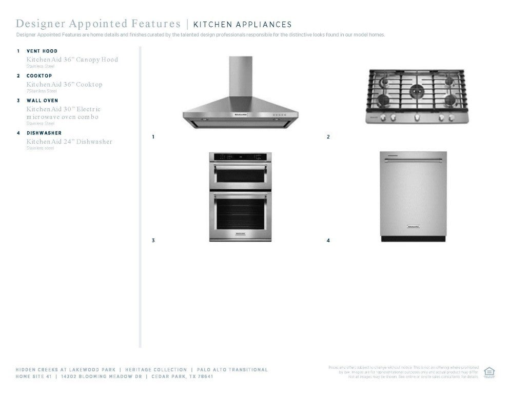 - Dishwasher, Disposal, Microwave, ENERGY STAR Qualified Appliances, Exhaust Fan, Self Cleaning Oven, Stainless Steel Appliance(s)