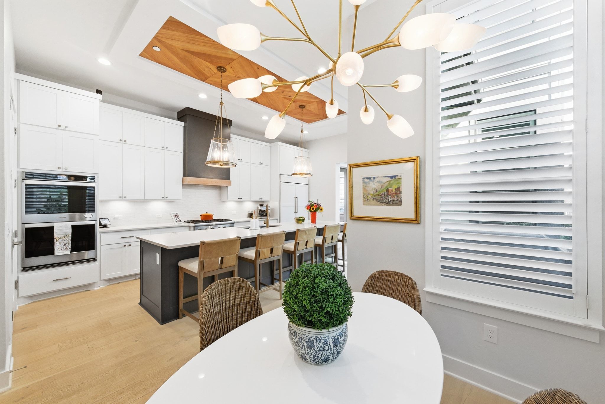 Set within the heart of The Grove, 4209 Elevator Drive offers the rare combination of lock-and-leave ease with the space, scale, and beautiful finishes throughout. This three-bedroom residence spans over 3,400 square feet across multiple thoughtfully designed levels, with a layout that lives comfortably day-to-day while offering flexibility for work, entertaining, and guests. The home has been extensively enhanced with designer-driven upgrades, elevating both form and function throughout. The main level is anchored by a light-filled living area featuring custom built-ins, plantation shutters, and warm hardwood floors. The kitchen has been reimagined with a custom vent hood, upgraded lighting, decorative ceiling detail, and an expanded refrigerator opening designed for a 48” Sub-Zero, creating a polished yet highly functional culinary hub. The main-level primary suite provides a true retreat, highlighted by a fully remodeled spa-inspired bath with an enlarged walk-in shower, dedicated makeup vanity, added linen storage, designer lighting, and a custom walk-in closet. Additional living spaces unfold across the upper levels, including a versatile media or flex room, secondary bedrooms with ample storage, and a third-floor bonus room complete with a wet bar and access to an expansive balcony, ideal for entertaining, working from home, or unwinding at the end of the day. Additional upgrades add to the home’s appeal, including solid wood interior doors, a beverage refrigerator, garage floor coating, and low-maintenance artificial turf. Outdoor spaces offer both privacy and usability, with a courtyard-style patio and elevated terraces overlooking the beautifully designed Grove community. Located just minutes from downtown Austin, yet surrounded by parks, trails, ponds, and on-site retail, this residence delivers a refined, low-maintenance lifestyle in one of the city’s most thoughtfully planned neighborhoods.