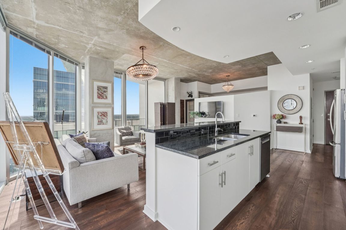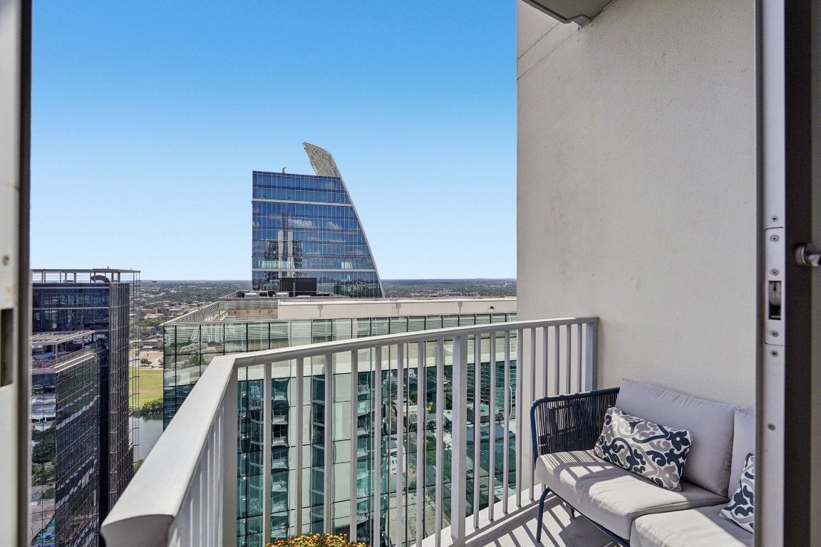 Beautifully renovated corner unit on the 37th floor featuring an open-concept layout framed by dramatic floor-to-ceiling windows, offering UNOBSTRUCTED PANORAMIC VIEWS of Downtown Austin and Lady Bird Lake. Seller is offering $10,000 in flex cash to be used at the buyer’s discretion — applied toward closing costs or personalized enhancements of their choice. Rich hardwood flooring and freshly painted interiors throughout—including cabinetry, create a bright and refined atmosphere that feels both spacious and inviting. The kitchen is equipped with brand new stainless steel appliances, while the dedicated office space delivers one of the most inspiring work from home backdrops in the city. Conveniently located within walking distance to Lady Bird Lake, Trails, Parks, Trader Joe’s, Whole Foods, Dining, and Boutique Shopping, with quick access to I-35 and MoPac for easy commuting. This residence also includes one of the few covered parking bays in the garage. Building amenities include 24-hour concierge service, a resort-style pool, covered grill stations, a dog park, fitness center, and an expansive owners’ lounge. Reach out today to schedule a showing.