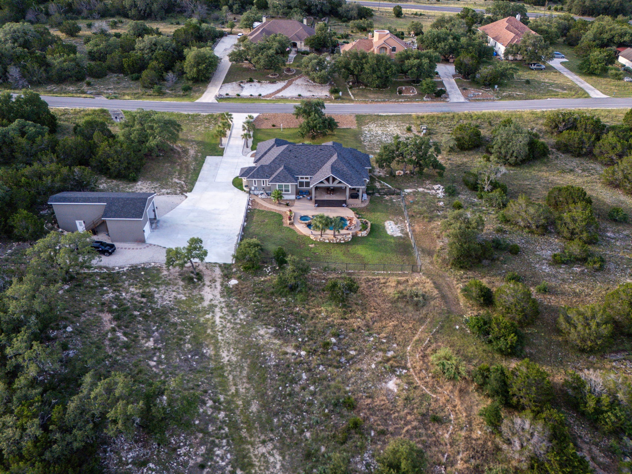Luxury Live Auction! Bidding to start from $824,999.00! Nestled in the coveted community of Mystic Shores in Spring Branch, TX, this extraordinary property is a rare gem offering high-end upgrades, thoughtful design, and luxurious outdoor living – all set in the breathtaking Texas Hill Country. From the moment you arrive, you’ll be impressed by the $100,000 professionally engineered concrete drive, built to support the weight of even the largest RVs. Adjacent to the home, a custom-built detached parking station features an RV bay plus an additional oversized bay with storage above – ideal for your boat, workshop, or additional gear. Step into your own private backyard oasis where a custom-built $120,000 pool awaits, complete with an integrated hot tub and heating system for year-round relaxation. Whether you're entertaining or unwinding, this space offers resort-style serenity at home. Inside, the oversized attached 3-car garage offers abundant space for vehicles and hobbies, while an on-site generator ensures comfort and continuity no matter the weather. This property is zoned to the highly sought-after Comal Independent School District, making it the perfect place for families to thrive. And when you’re ready to explore beyond your own luxury retreat, Mystic Shores offers an incredible suite of amenities including a community pool, tennis courts, and a stylish clubhouse. Whether you're a full-time resident or seeking the ultimate Hill Country getaway, 346 Blackbird Drive delivers on every level—comfort, convenience, and custom craftsmanship. Don’t miss your chance to own this extraordinary slice of Texas living. Seller is motivated!