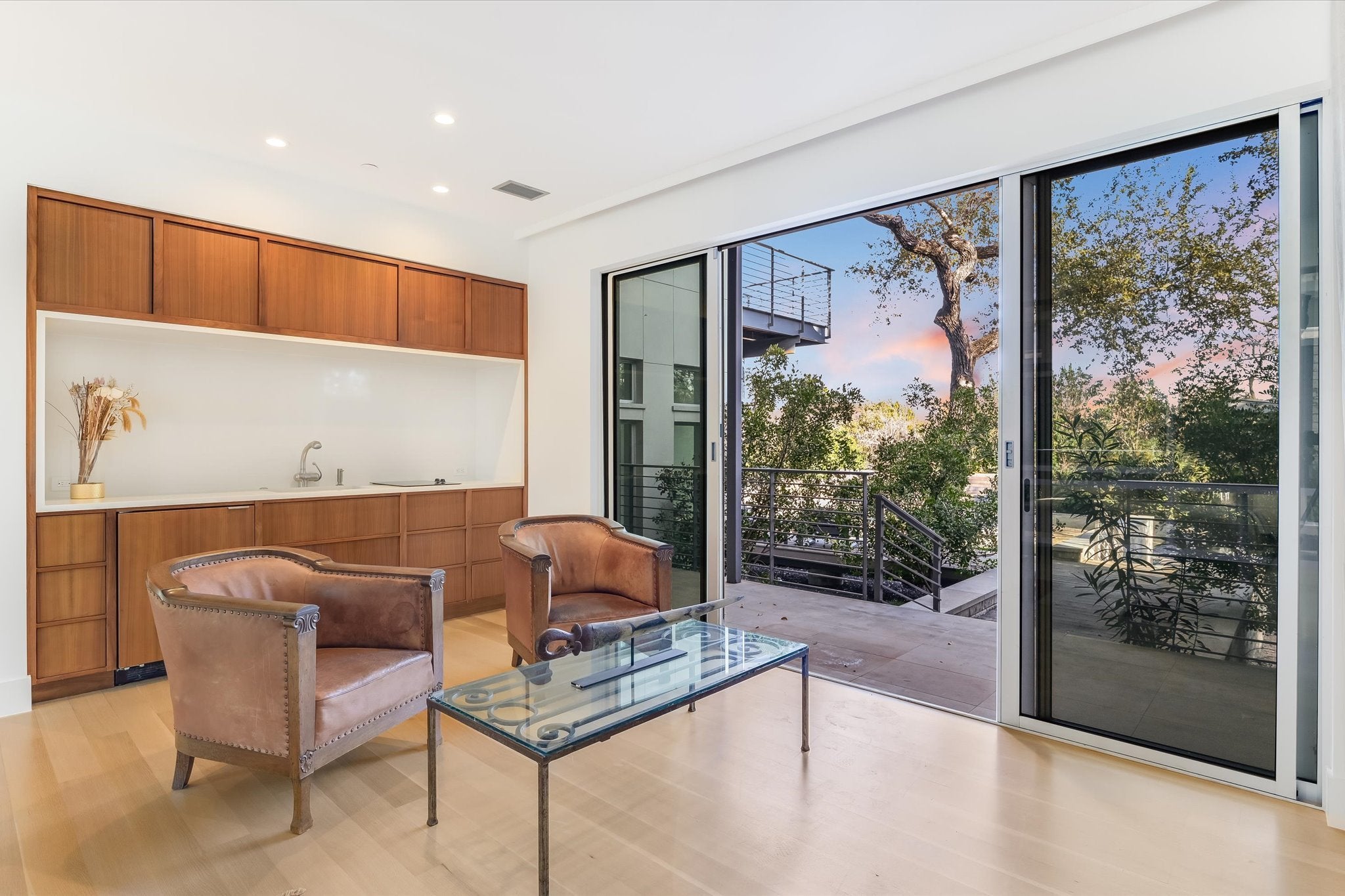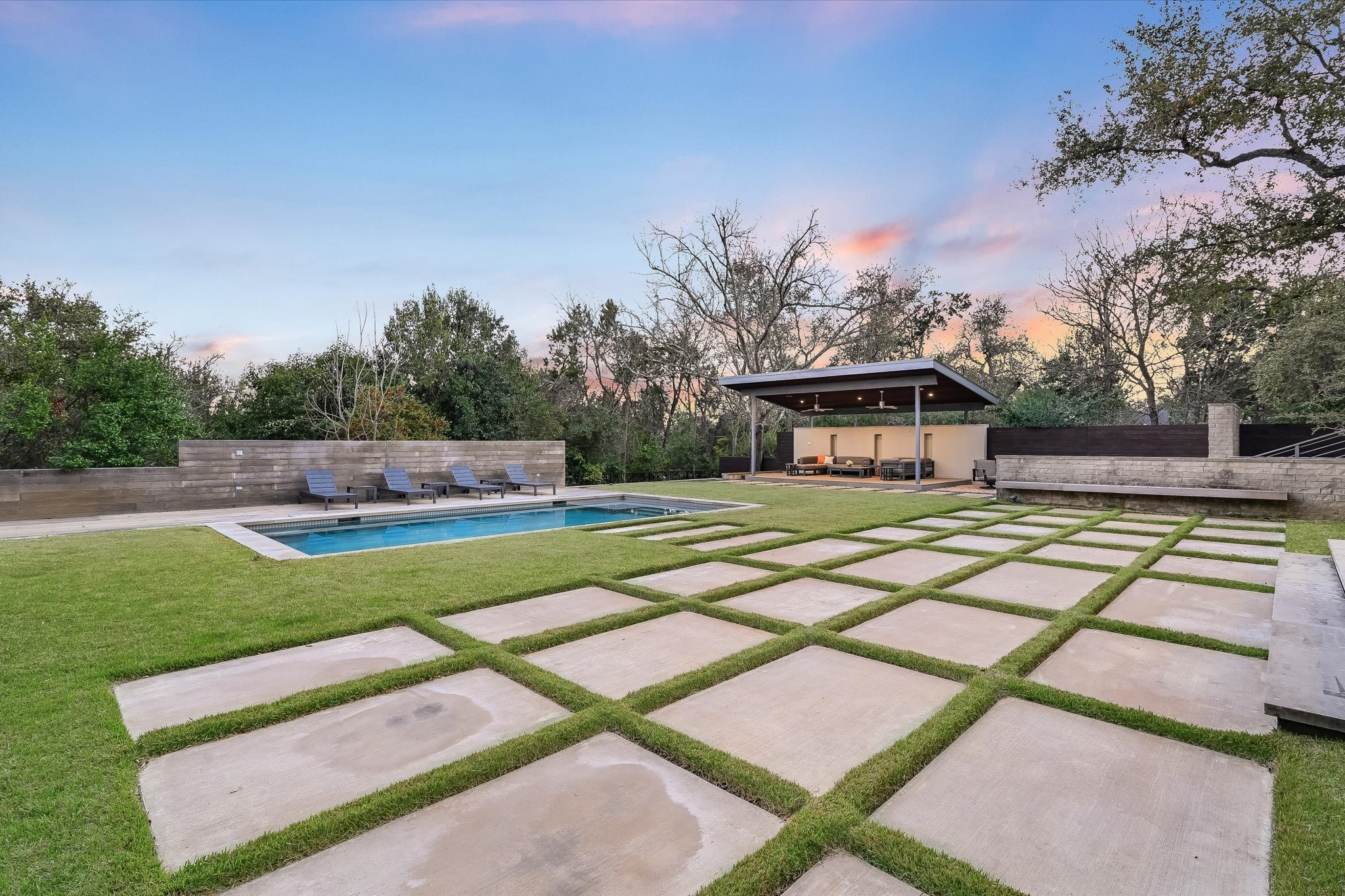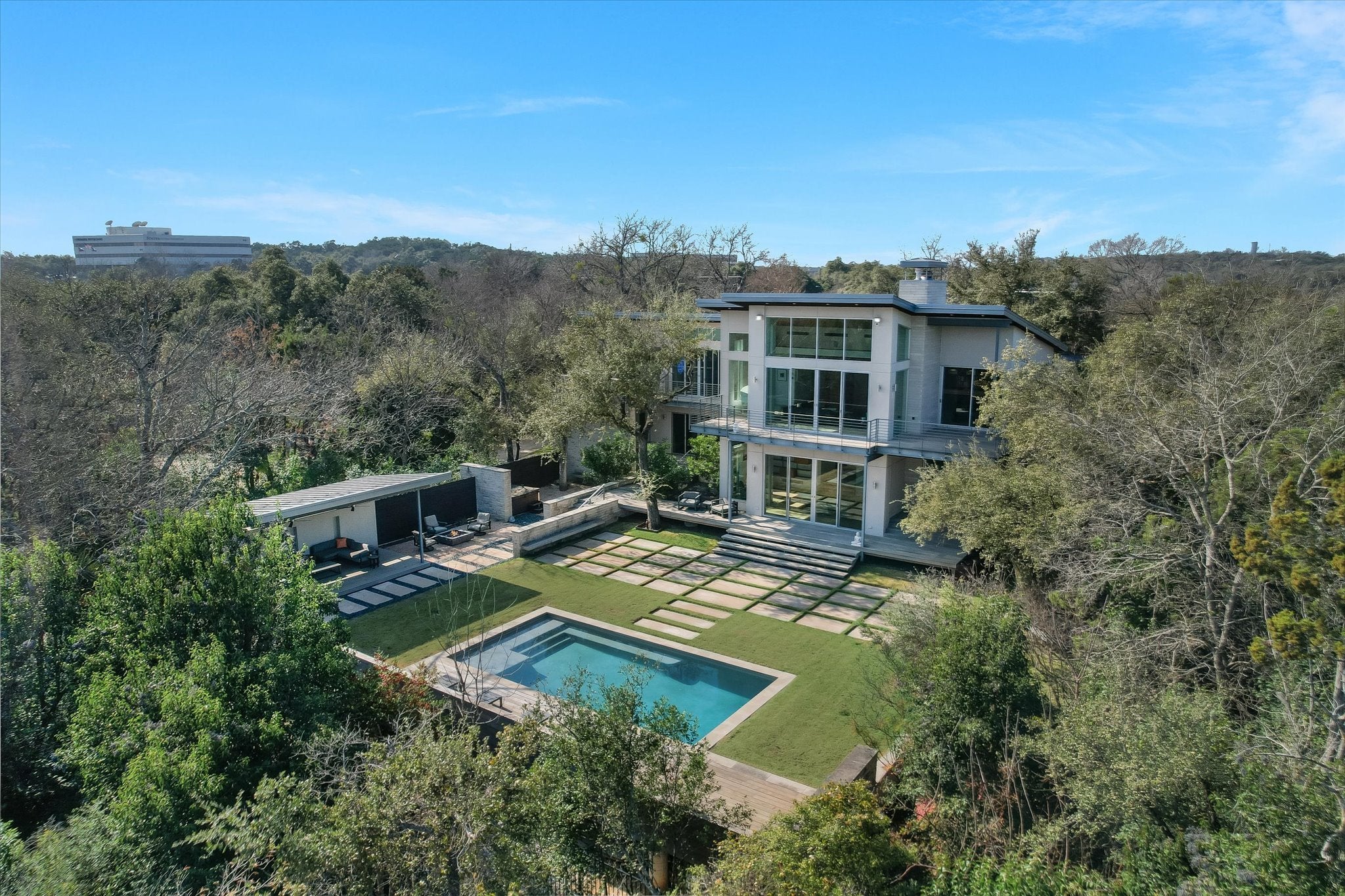 Nestled within the coveted Sundown Parkway community, this artfully constructed modern estate offers an unparalleled blend of architectural excellence, natural beauty, and urban convenience. Just minutes from premier shopping and downtown Austin, this exceptional residence is set on over an acre of land, providing breathtaking views of the city skyline. Designed with seamless indoor-outdoor integration, the home features walls of glass that frame panoramic views of downtown Austin and the beautiful grounds. A flexible floor plan caters to both privacy and entertainment, with full living spaces on each level, both surrounded by spacious outdoor living spaces. The upper floor boasts an open-concept living, dining, and kitchen area, a private study, and an expansive primary retreat. The lower level, opening to the lush lawn and resort-style pool, includes a guest suite with a kitchenette, living area, and a private home office/exercise room with a separate entrance, plus two additional bedrooms with ensuite baths. An oversize three-car garage also includes a private, climate controlled podcast/music/art studio further elevating the home’s offerings. The outdoor spaces offer both relaxation and entertainment including a stone-framed pool and sundeck, a covered sitting area, and a large open lawn and includes a well. Residents of Westlake Oaks enjoy 14 acres of shared greenbelt, tennis courts, a serene pond, and horse stables, creating a truly unparalleled lifestyle. This is more than a home, it’s an experience, one that balances sophisticated modern living with the tranquility of nature, all within minutes of Austin’s vibrant heart.