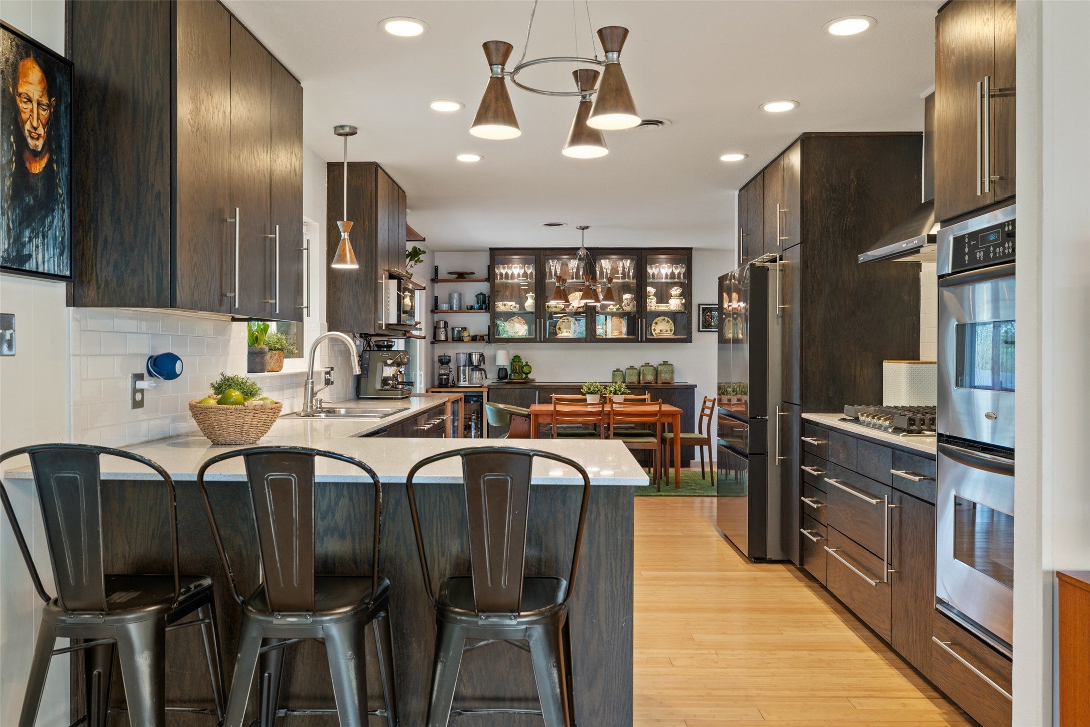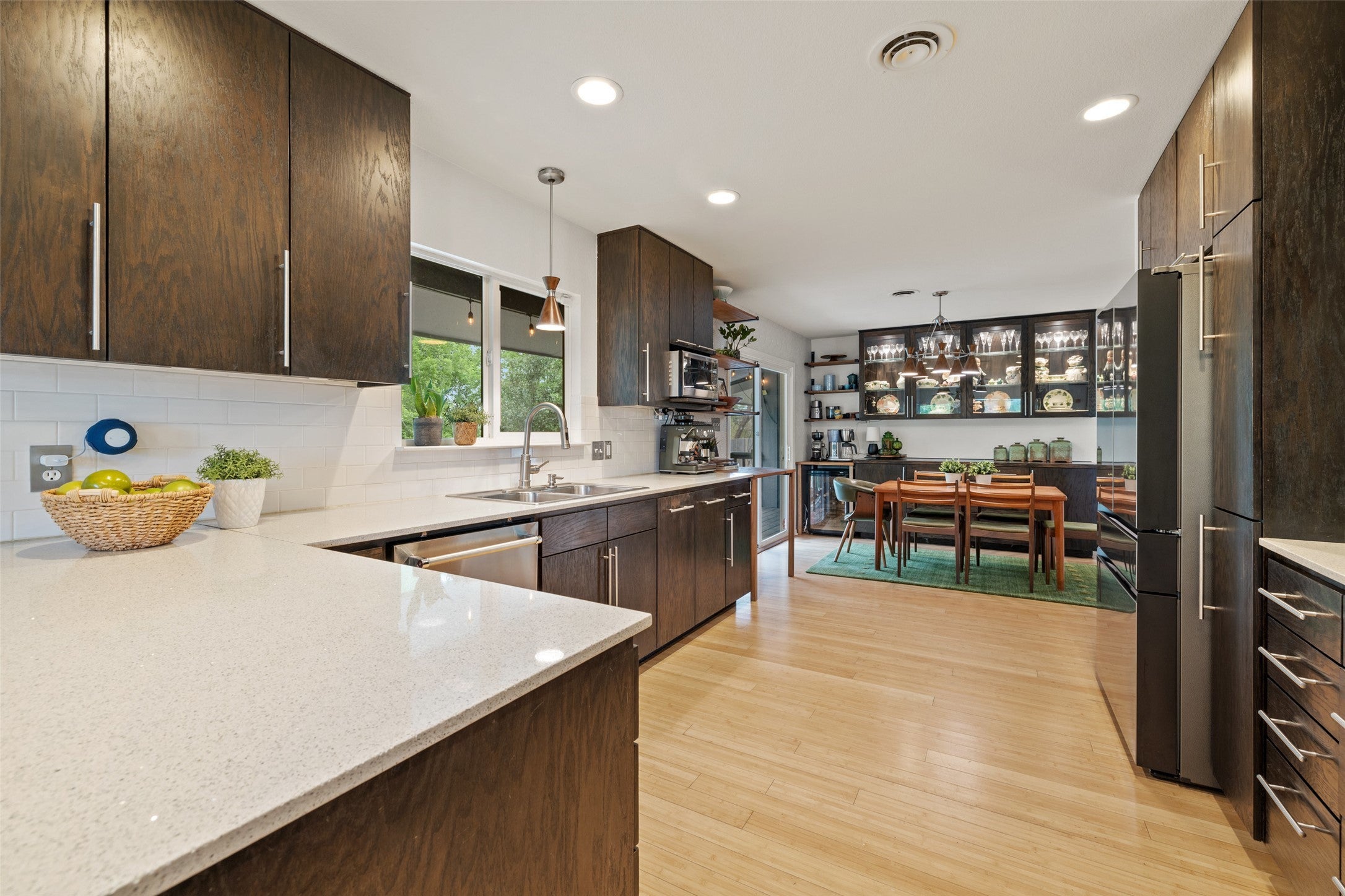 - Built-In Gas Range, Dishwasher, Disposal, Microwave, Stainless Steel Appliance(s), Vented Exhaust Fan, Wine Refrigerator