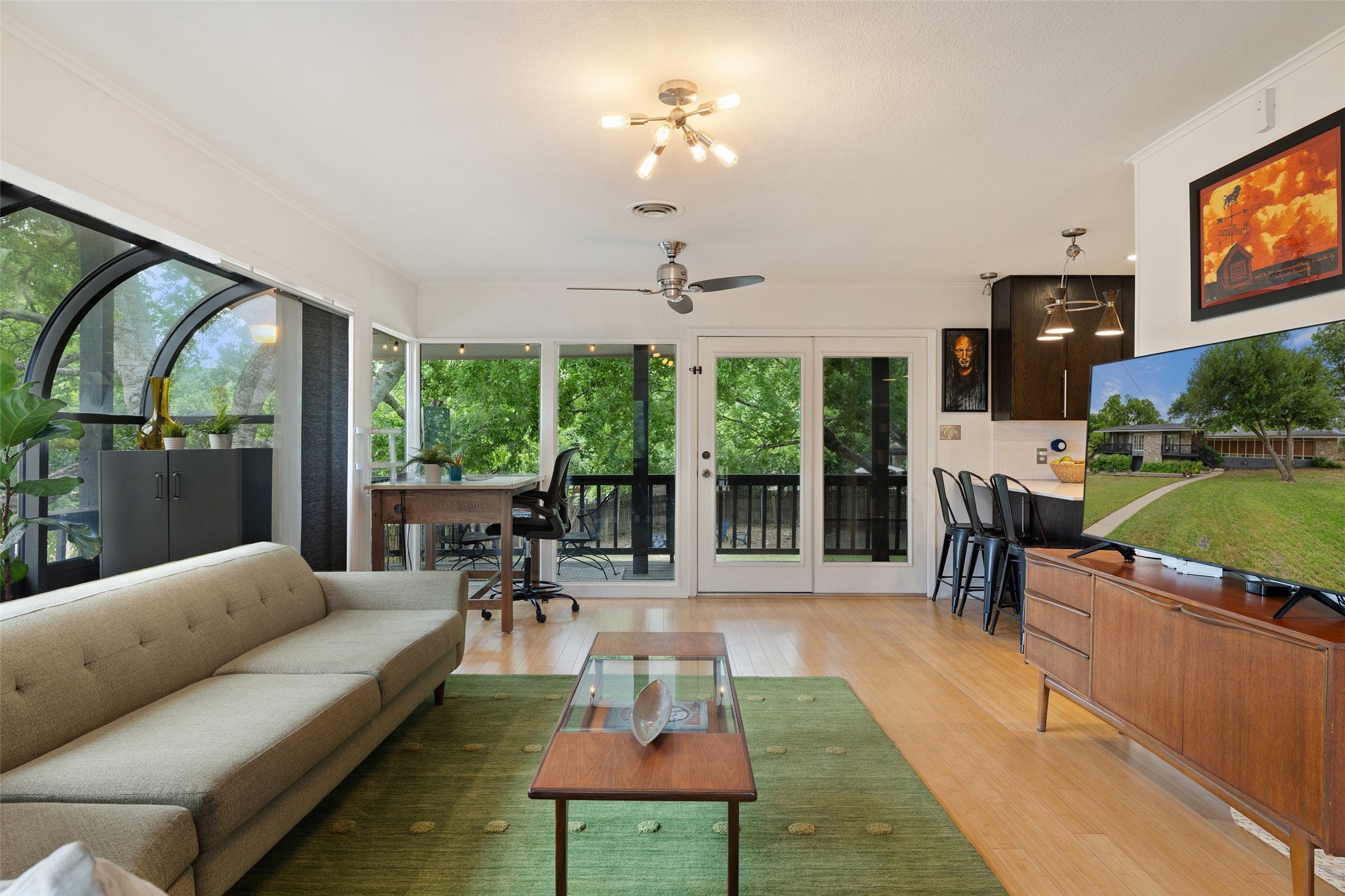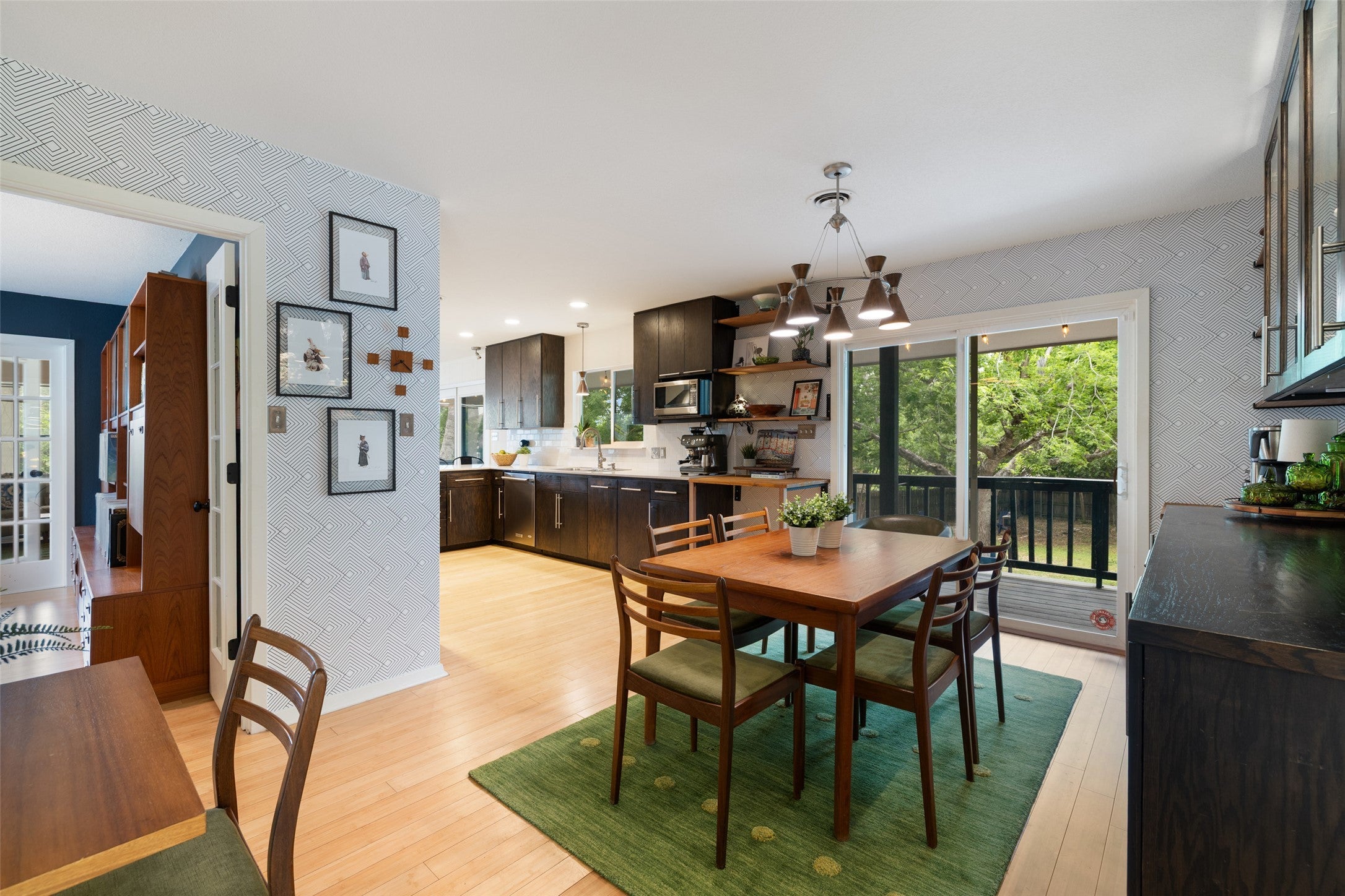 Iconic Mid-Century modern home nestled on a cul-de-sac in Old Town Georgetown. This beautiful home is on a half acre lot, offering plenty of room for all your work, play and relaxation needs. Space for a pool, a guest house and/or park your RV. Balconies on 3 sides create a tree house feeling in the living, dining, kitchen and study. Living area plus a study or 2nd living, 3 bedrooms, 2 full and 1 half bathrooms. Terrazzo floors in entry and powder room and Bamboo floors throughout rest of the home. Bonus space under the house is great storage or a future office, play room, or man cave! Located just 2 blocks from Southwestern University and 1 mile from “The Most Beautiful Square in Texas”, this home provides convenient access to the charm and amenities of Georgetown's historic downtown.