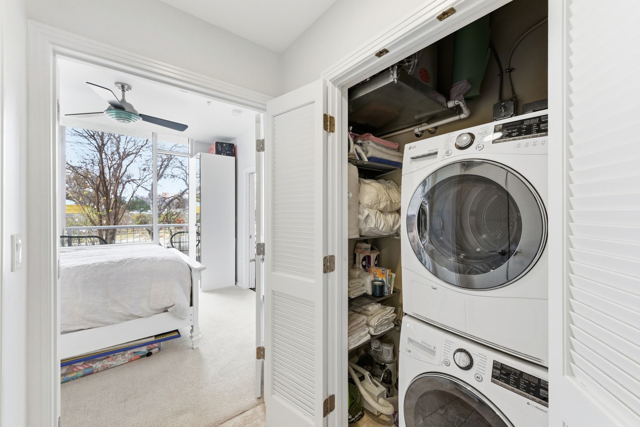 - Built-In Gas Range, Washer/Dryer Stacked, Dishwasher, Disposal, Microwave, Stainless Steel Appliance(s), Gas Cooktop