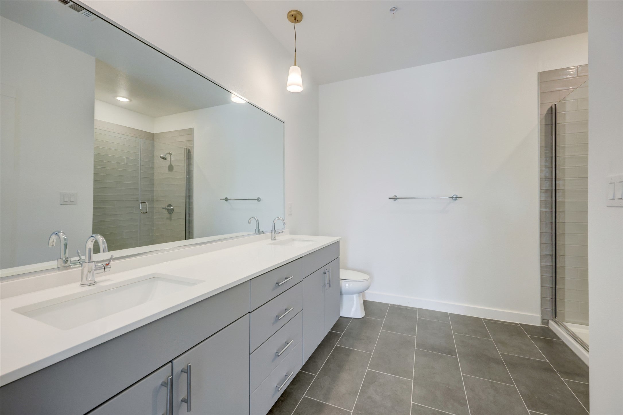 Live minutes from Downtown, Mueller and tons of Austin's hottest restaurants and bars in East Austin! This modern 2 bedroom/2 bath condo located at the Gravity ATX has luxury finishes, an open floor plan and tons of natural light! The kitchen boasts stainless steel appliances, a quartz island with a breakfast bar and plenty of storage space. The primary bedroom offers double vanities, a walk-in shower and a walk-in closet. Use the second room as a guest bedroom or as your home office! The living room and primary bedroom have access to the spacious balcony which leads down to a green space. Enjoy amenities such as a community pool with BBQ grills, rooftop deck with skyline views, dog park with paw spa and Amazon lockers in the lobby! 1 reserved parking space included.