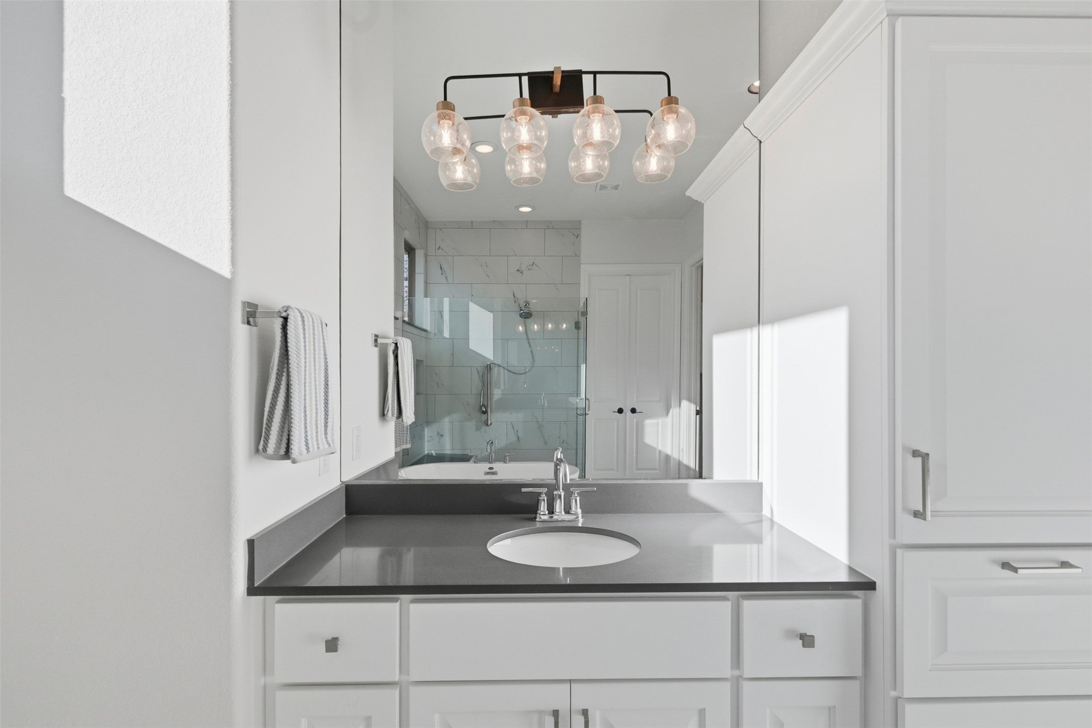 Prepare to be captivated. This exceptional, barely lived-in Sitterle masterpiece—completed in Fall 2023—makes a grand statement the moment you arrive. Set on the golf course in the award-winning Cimarron Hills community, this home delivers luxury at every turn. Enter through striking custom steel doors and step into a breathtaking reveal: soaring ceilings, glittering chandeliers, and an unforgettable wall of windows framing an awe-inspiring view. Designed to celebrate natural light, this home is drenched in sunshine, with dramatic sight lines that instantly command attention. The open-concept dining space is pure showstopper—perfectly positioned so every gathering is enhanced by the stunning scenery beyond. The gourmet kitchen is equally impressive, featuring built-in appliances, exquisite finishes, and a generous walk-in pantry worthy of a serious chef (or an ambitious entertainer). Retreat to the Primary Suite, where “outside-in” living comes to life with serene golf course views and an atmosphere of calm indulgence. Every bedroom boasts lofty ceilings and walk-in closets, creating a sense of space and comfort throughout. Upstairs, a versatile loft—with its own full bath—offers the flexibility of a fourth bedroom, private guest suite, or elevated retreat. Life at Cimarron Hills is nothing short of resort-style living, with amenities including a fitness center, tennis and pickleball courts, a sparkling pool, and on-site dining. The Jack Nicklaus Signature Golf Course crowns the experience, with Social, Sport, and Golf memberships available. This isn’t just a home—it’s an entrance into an elevated way of life. (Photos have grass colorized.)