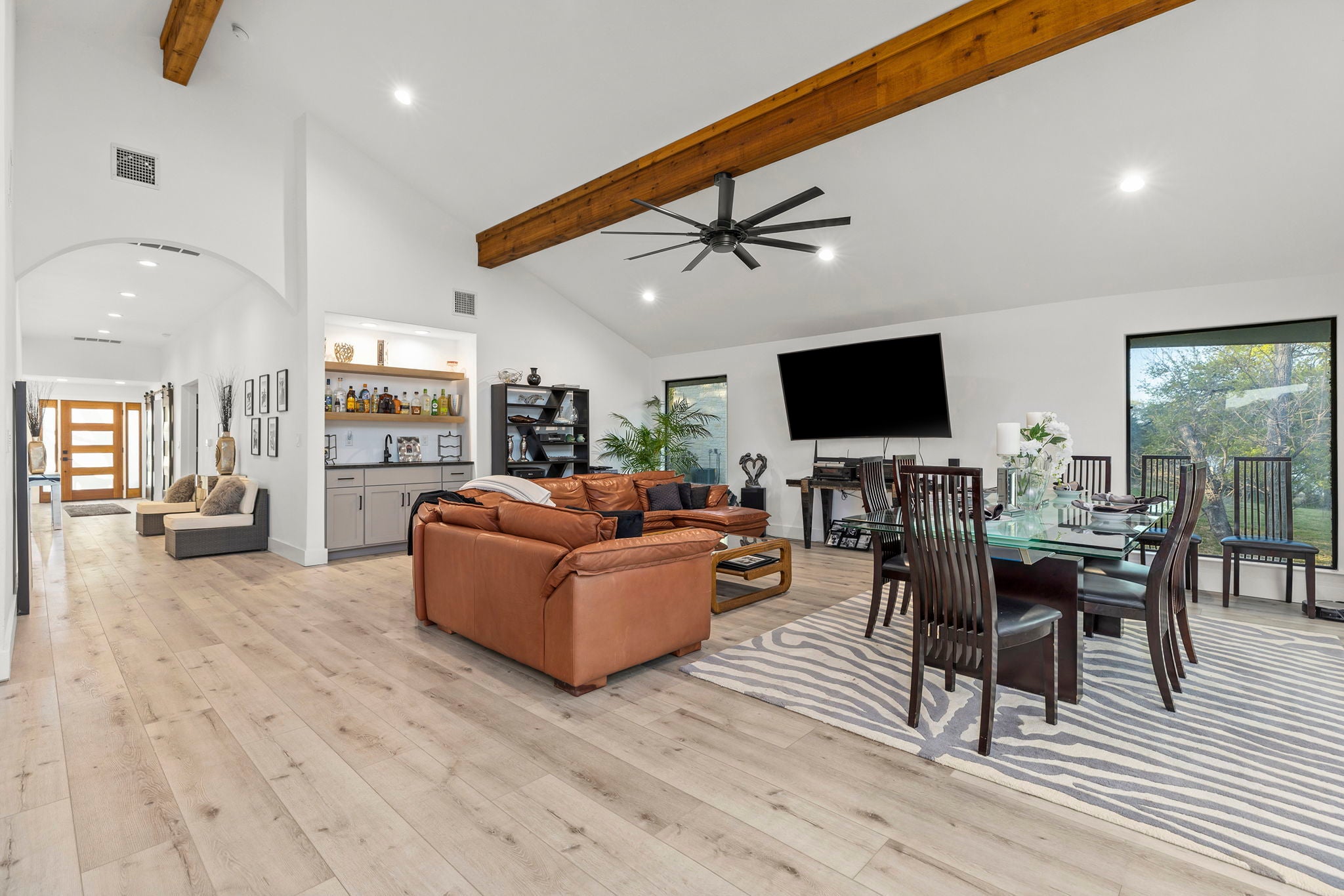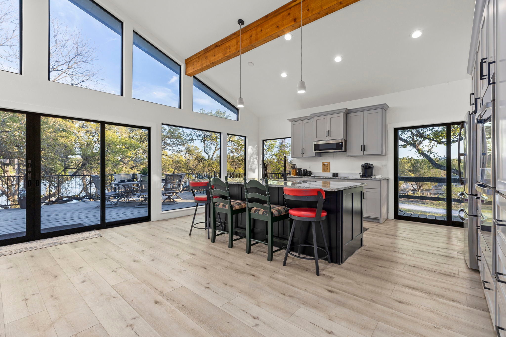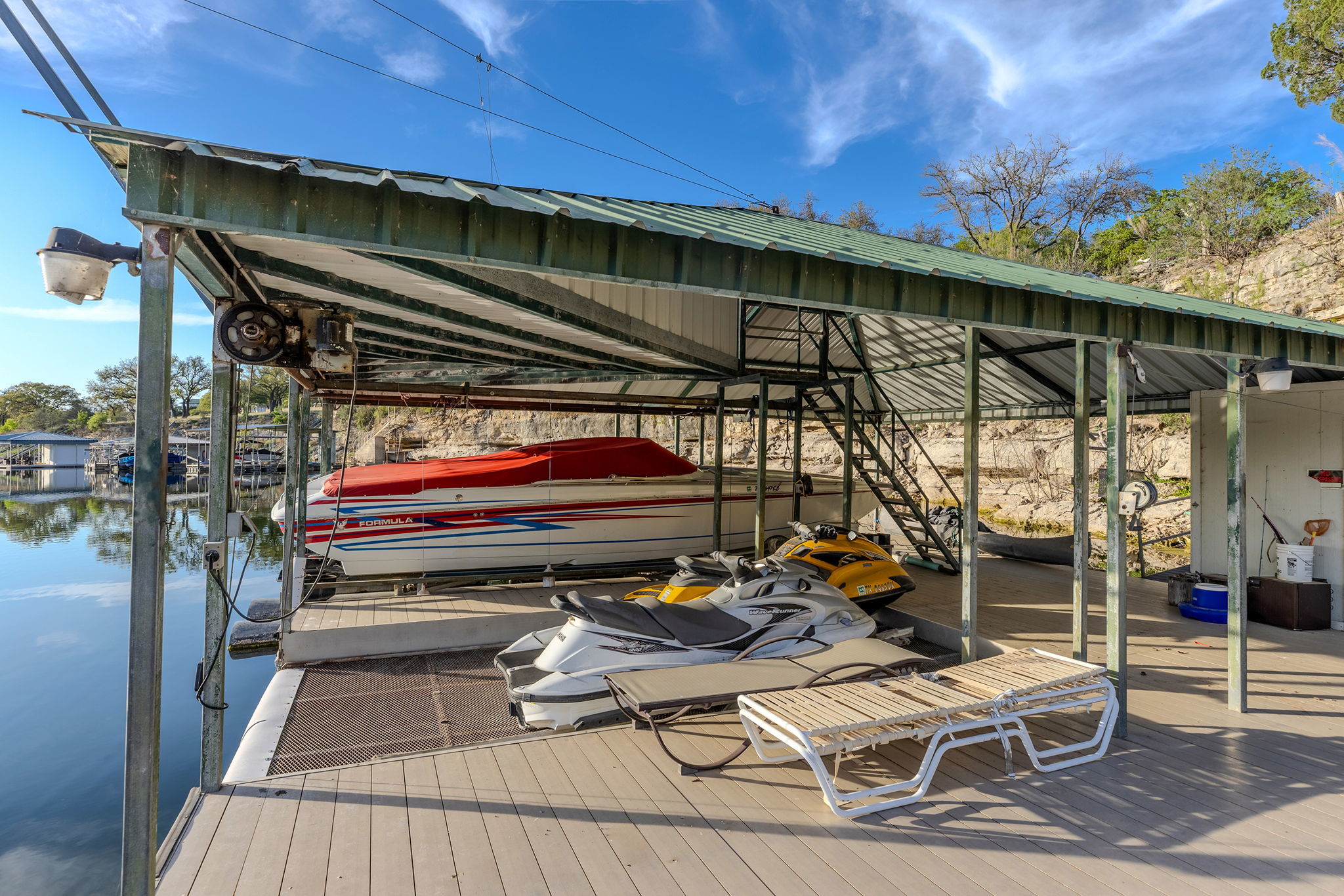 Welcome to this Lake Travis escape with beautiful lake and Hill Country views. This thoughtfully remodeled home blends modern elegance with relaxed lakeside charm. Enjoy slow mornings and sunset evenings on the spacious deck, or gather inside where refined finishes and Energy Star appliances make everyday living feel effortless. The private boat dock is ready for adventure with a boat lift, jet ski lift, dedicated storage, and plenty of space for fishing or simply unwinding by the water. With access to both the cove and main lake, you’ll have dependable, direct water access no matter the lake level. Whether you’re dreaming of a peaceful weekend retreat, a high-performing Airbnb, or a comfortable full-time residence, this lake house offers the perfect blend of comfort, style, and true Texas lake living.