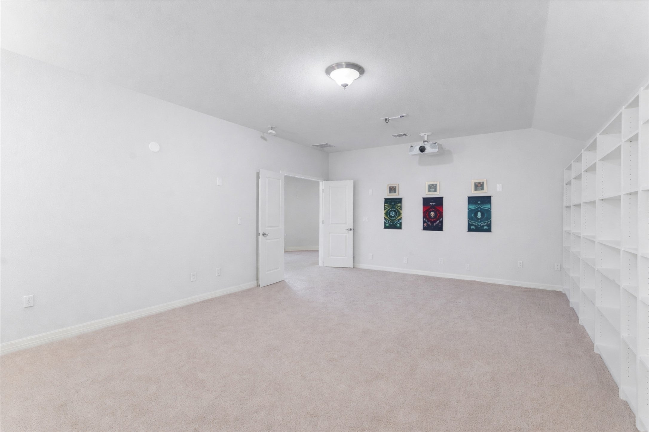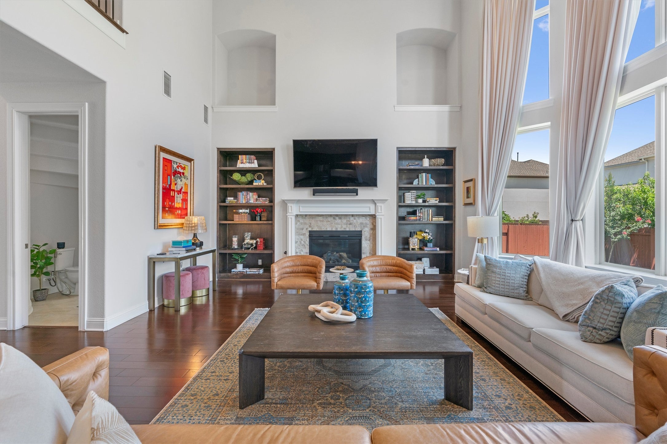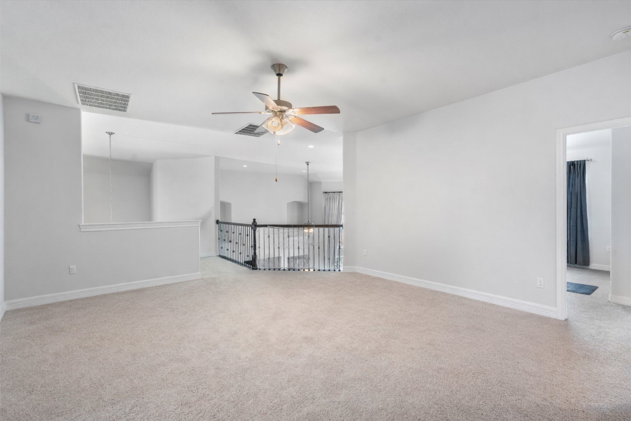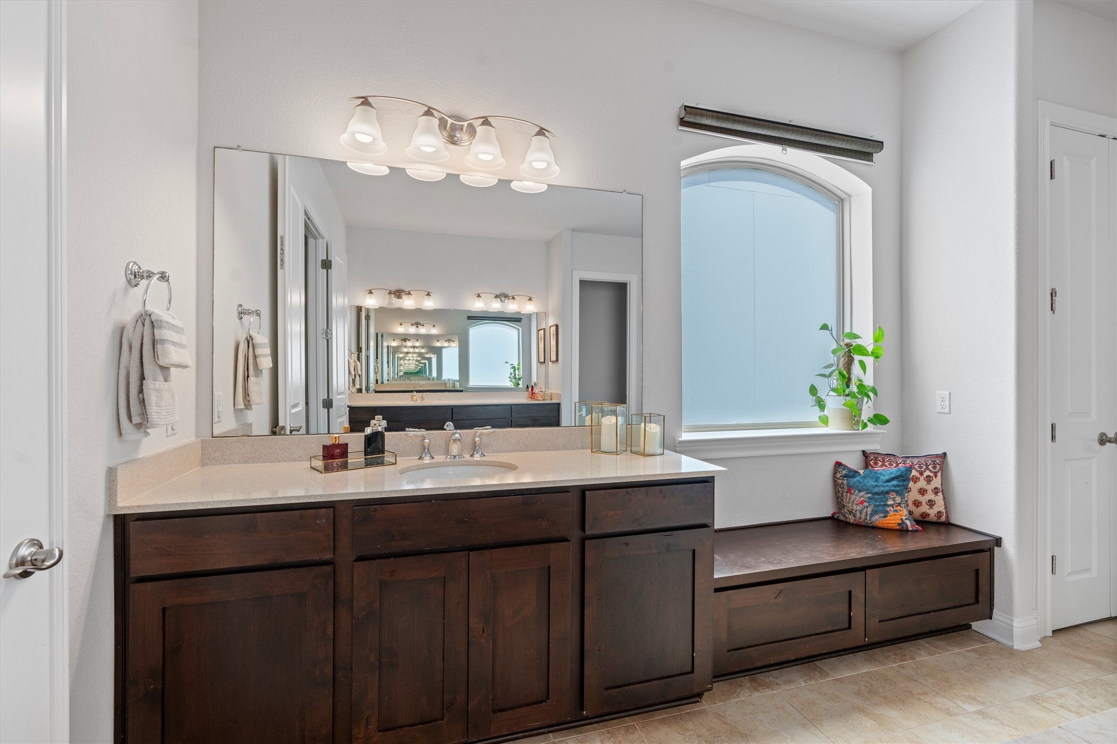 Located on a quiet cul-de-sac in the Sarita Valley community, this luxurious & extremely spacious home offers unmatched flexibility with everything you could want & more. Featuring 5 bedrooms, 4.5 bathrooms, a dining room, office, loft, & media room, this home is also zoned to the award-winning Leander ISD. Step inside and be welcomed by a charming curved staircase, & an open floor plan with soaring ceilings & premium finishes throughout. The expansive living room is filled with natural light from floor-to-ceiling windows & centers around a fireplace flanked by custom built-in shelving. The kitchen features granite countertops, a large island with storage on both sides, dark-stained wood cabinetry with convenient pullout drawers, stainless steel appliances, & a pantry. A breakfast nook offers a spot for casual meals, while the formal dining room is perfect for hosting. A dedicated office at the front of the home provides a quiet workspace, & a guest bedroom with its own ensuite bath is located on the main level. The spacious primary suite is a private retreat featuring a tray ceiling, bay window, & a luxurious ensuite bath with oversized dual vanities, a large soaking tub, walk-in shower, & a generous walk-in closet. Upstairs, you’ll find a large flex space, an oversized media room perfect for movie nights, & three additional bedrooms—each with their own closets. One bedroom features a private ensuite bath, while the other two share a well-appointed full bathroom. Step outside to the fenced backyard and relax in the large patio. The garage includes epoxy flooring & is wired for electric vehicle charging. Residents of Sarita Valley enjoy exceptional community amenities including an amenity center overlooking a scenic pond, & a pool with cabana. Ideally located minutes from abundant shopping, dining, and outdoor recreation, including HEB, Costco, Garey Park, and the Sarita Valley Greenbelt, with easy access to Hwy 183 for commuting to North Austin and downtown.
