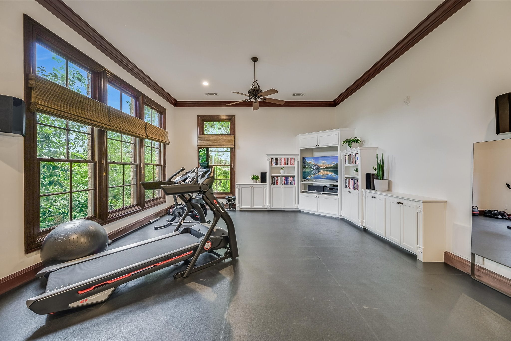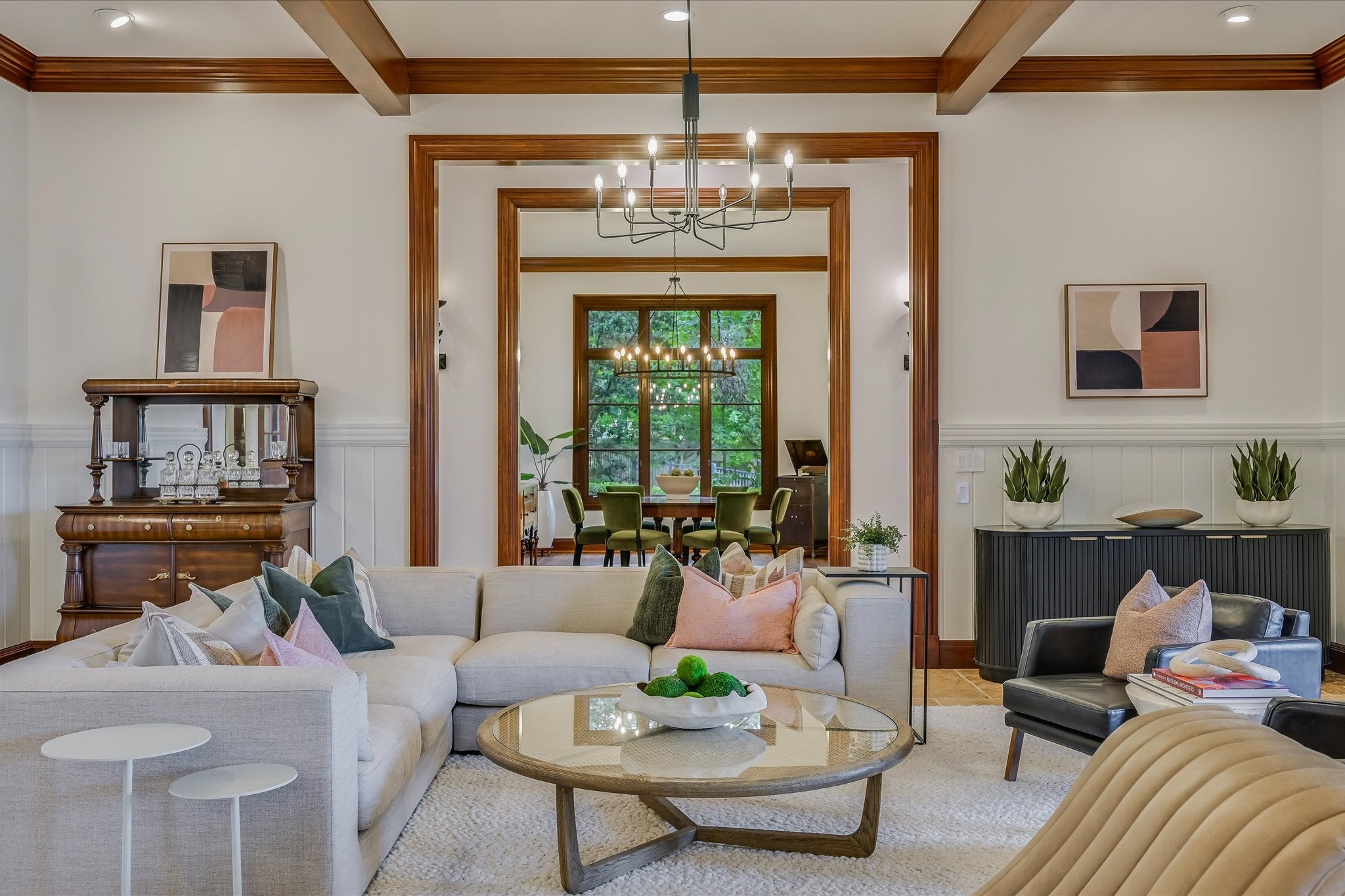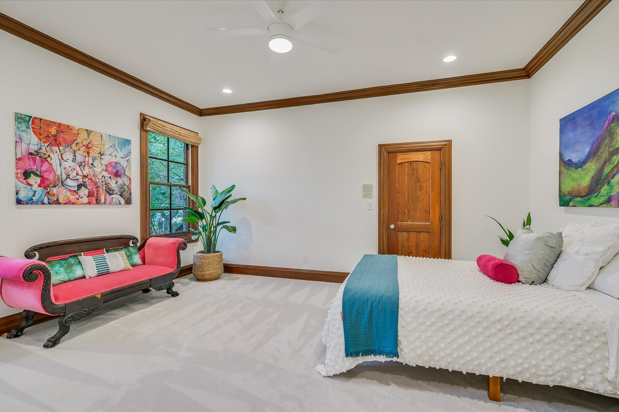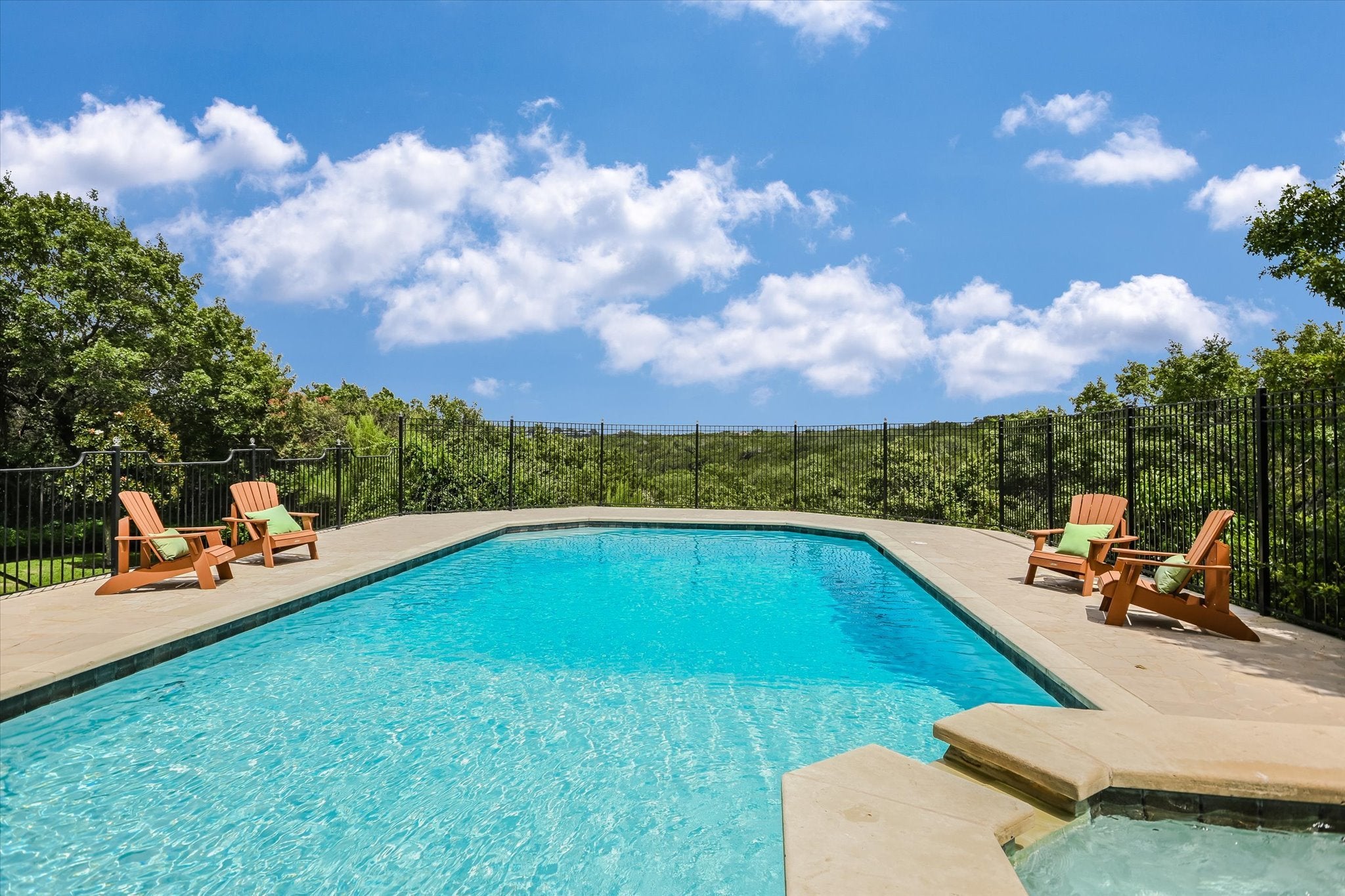 Welcome to this stunning estate tucked in one of Austin's most coveted private neighborhoods. Set on lot backing to a greenbelt, this classic home blends rich woodwork, timeless stone finishes, & transitional charm – offering endless flexibility for both grand entertaining and cozy everyday living. The great room invites you in with soaring coffered ceilings w/exposed wood beams, large gas fireplace overlooking the outdoor patio, pool, and spa. Stone floors and masterful hardwood accents carry throughout the home, creating warmth and sophistication at every turn. The chef’s kitchen is truly expansive, with 2 islands, dual dishwashers, 2wine fridges, 2 sinks, a 6-burner rangetop, butler’s pantry, & abundant cabinetry – designed for effortless entertaining. A spiral staircase just off the kitchen leads to a dramatic 1500 bottle wine cellar and tasting room with ample space for dining and bottle storage. The main level also features a private guest suite, den, a large formal dining room, and a breakfast room that opens directly to the pool area. Upstairs, the primary suite is a true retreat – featuring a fireplace, large dual closets, a spa-like bathroom with soaking tub, and dual vanities. Step out onto the private balcony for serene views of the backyard oasis and your custom built 6 person sauna. The expansive view includes the UT tower and Mount Bonnell. Each additional bedroom includes its own bathroom and walk-in closet. A media room (optional 6th bedroom) w/ full bath, dual offices, a playroom with built-in desks, and an additional flex space accommodate every lifestyle. The home has been recently upgraded with lighting updates, Sonos, water filtration, HVACS, security system, and a cedar sauna. Outdoors, enjoy a view of the greenbelt from your private, fully equipped outdoor living space, including a resort style pool/spa, covered patio, and dining area. All information deemed reliable but not guaranteed. Buyer to confirm all information.