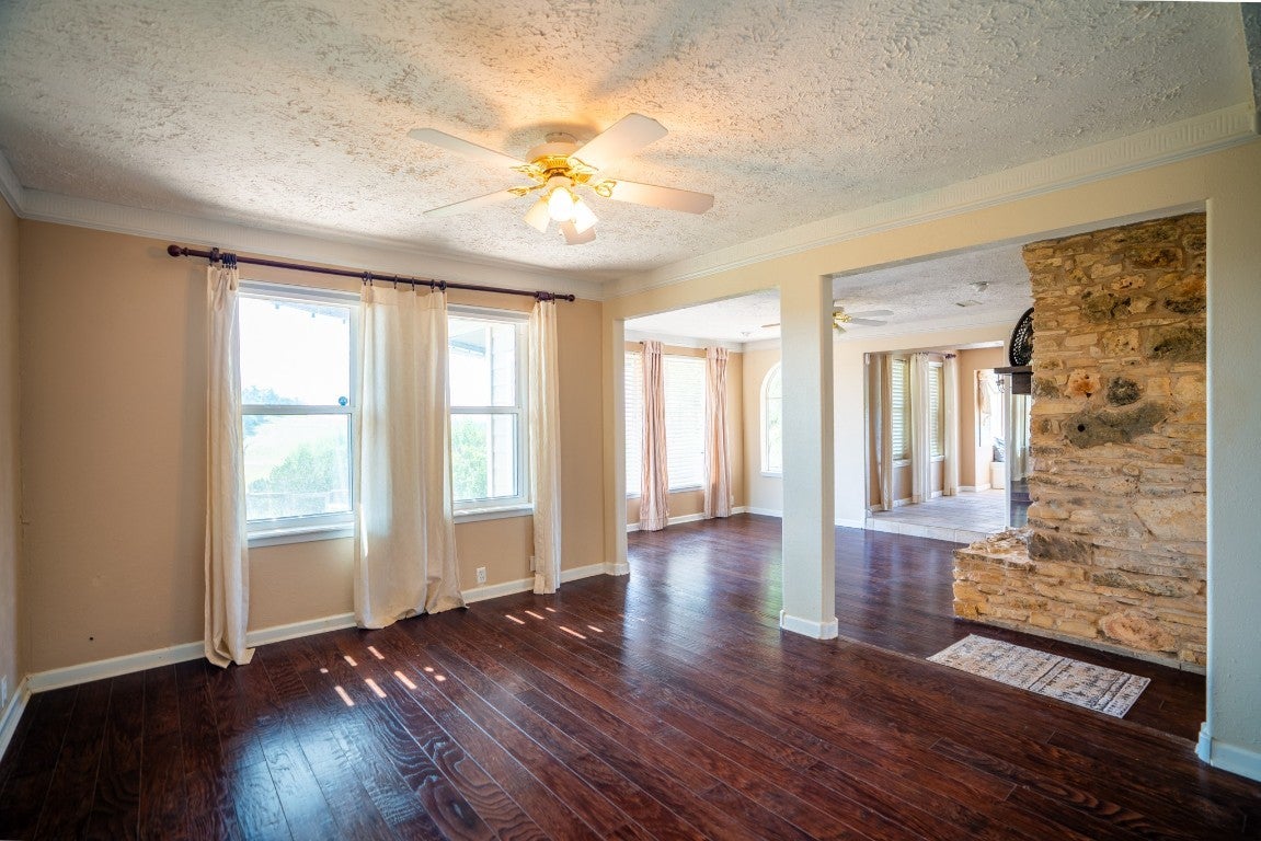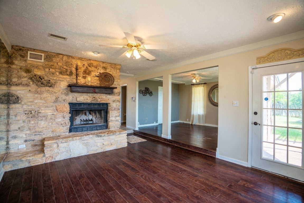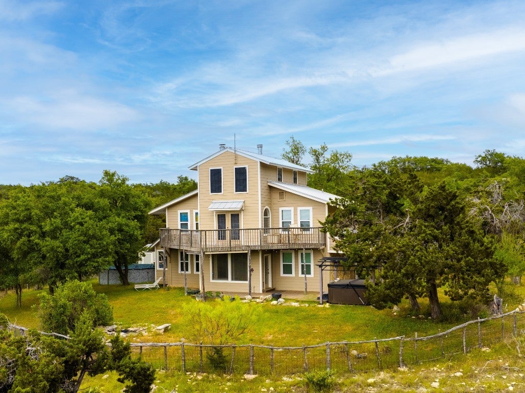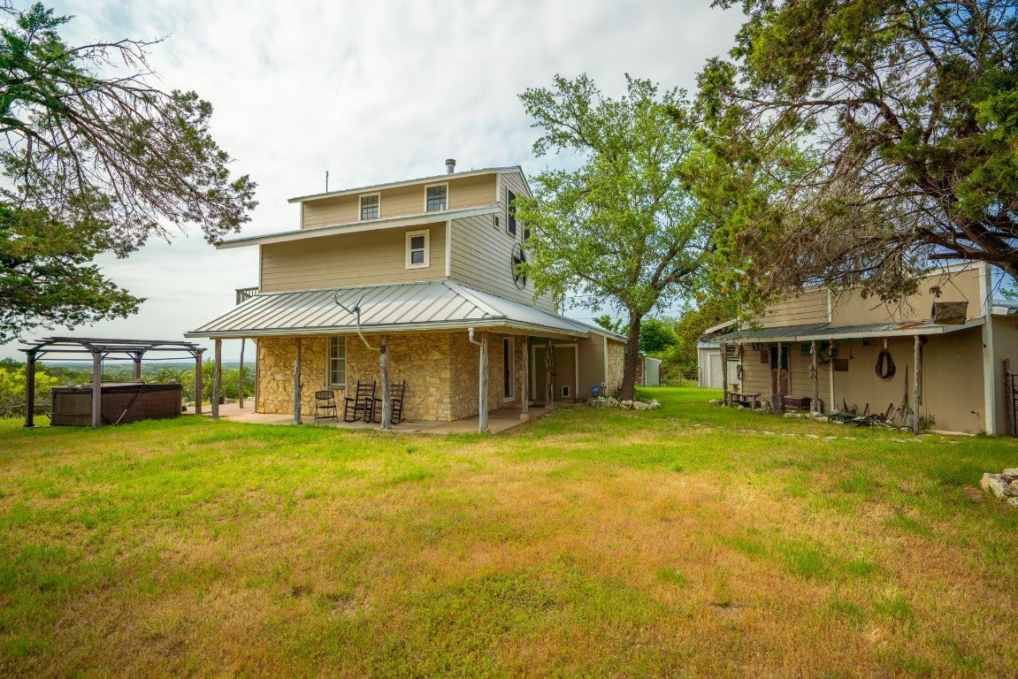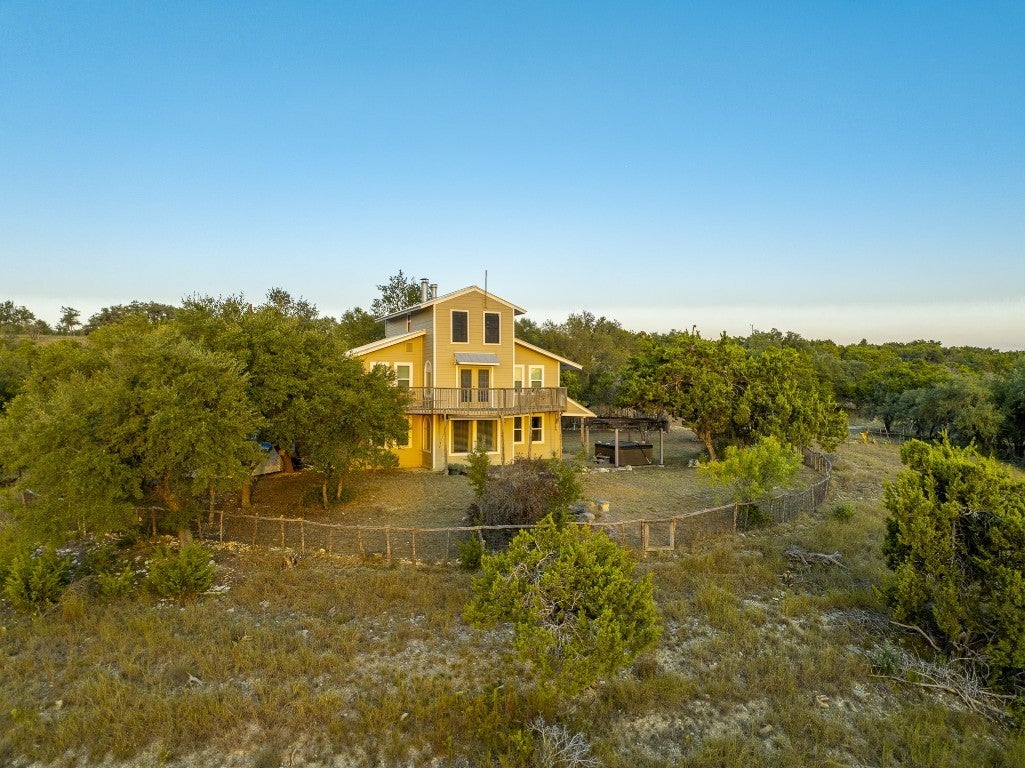 Enjoy acreage with a house in the sought-after Texas Hill Country just 15 minutes from Downtown Dripping Springs! Situated on approximately 47+/- acres of picturesque Texas Hill Country scenery, this 3-bedroom, 2.5-bathroom house sits atop a hill, providing breathtaking views of the rolling terrain. Whether you're seeking a primary residence or a Hill Country weekend retreat, this property checks the boxes for the discerning buyer. Conveniently located just a few miles from renowned wineries and breweries such as Fox 12 Beer, Bell Springs Brewing, Bell Springs Winery, and Texas Hill Country Olive Co., this property offers easy access to local attractions. Scenic views from the wrap-around porch offer breathtaking views spanning for miles! Upon entering, you'll be greeted by a warm and inviting three-story home, complete with a well-equipped kitchen, a charming stone fireplace, a generous living room, and a dining area. The second floor is reserved for the primary bedroom and one additional bedroom. The primary bedroom boasts a cozy adjoining living area complete with its own fireplace. Additionally, the wrap-around porch accessible from both the primary bedroom and living rooms provides the perfect spot to soak in the refreshing Hill Country breeze. Venture up to the third floor, where you'll find a spacious bedroom ideal for stargazing while admiring the expansive property views. The home features a rainwater collection system that provides water to the house! With its abundant live oak and juniper trees, as well as diverse rolling terrain, this property presents endless possibilities for its next owner. Offering the sought-after Hill Country experience within close proximity to town, this property is a gem waiting to be explored.