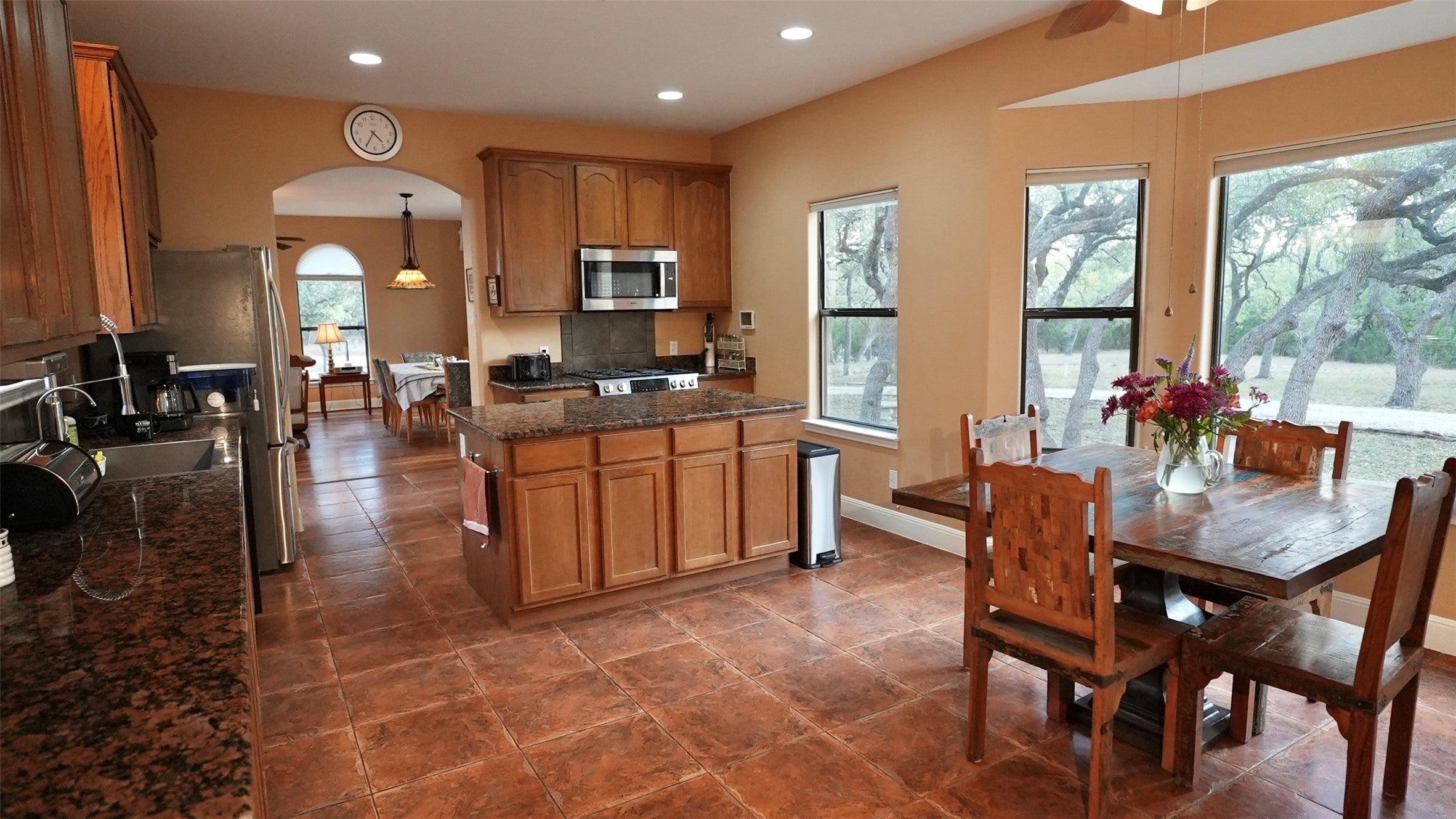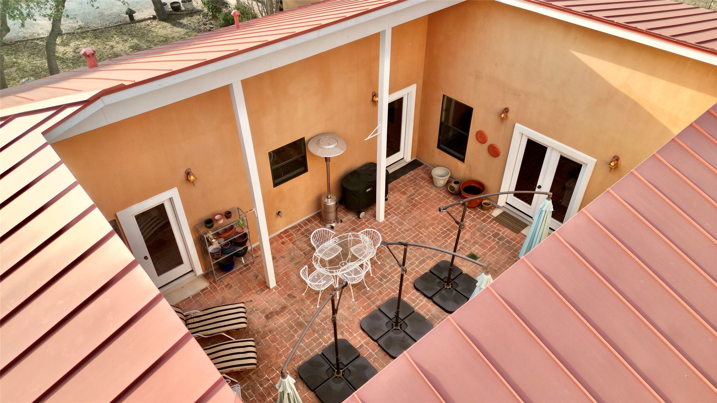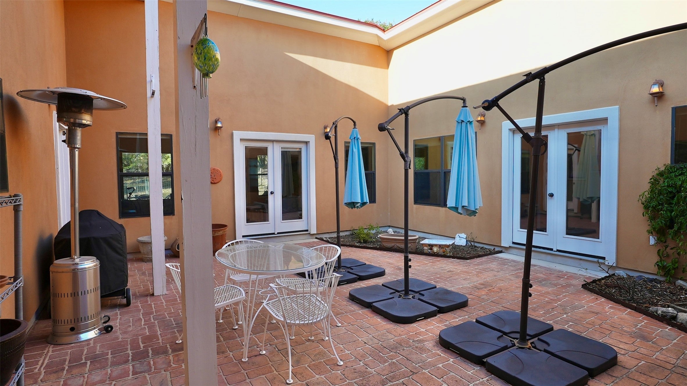 Welcome Home To Wimberley! Courtyard Dream Home with Open Living Spaces & High Ceilings, 2 Living Rooms on each side of the House with Bose Speakers, A Wood-burning Fireplace for cool nights. Five Doors from Inside the home lead you Outside to a True Courtyard Atrium in the Middle of the Home. Live in the Comfort of the Courtyard and Dine under the Sky & Stars. Come Relax Under the Old Oak Trees on a Tree Covered 4.62 Acres or Gaze up at the Night Stars using the Celestron Electric Mounted Telescope. On Hot Days Go Enjoy the River Oaks POA Private Blanco River Water Park. Home Boasts a Wonderful Open Gourmet Kitchen with Granite Countertops, Stainless Bosh 5 Burner Gas Cooking Range & Bosh Microwave. Stainless Fridge and GE RO Water Filter Under the sink. Home has 2 Primary Bedrooms one at each end of the house and both with On-Suite Bathrooms. SAFE STEP WALK-IN TUB/SPA a $25K remodel addition in one bathroom and Walk-in Standing Shower in the other. 3 Bedrooms with Double Closets -2 Full Bathrooms -2 half baths off both Living Rooms. 2 Car Garage was Converted by a professional local builder into a Bonus-Ham Radio Room thus adding 400 sqft of Wall HVAC to home. Bonus Room could remain a Ham Radio Room or could be a Studio for Music or POD Casts, Home Office, Playroom, Yoga Dojo, GYM, Shop or whatever you need the space to become. Bonus Room has been wired with extra electric outlets & it even has a back up 5KW Military Grade Battery Power Generator connected to the Room & Wall HVAC. Property has many Outbuildings, 2 car carport with roll down side covers. a 2nd Mobile Carport, a Barn with Workshop inside that has Power and AC, 2 Storage Buildings, A Green House, A Fenced Garden with Raised Dirt Beds, A 2nd Fenced Back Yard for the Kids or Pets. Gutters Feed the Rainwater Collection Tank for the Garden & Yard. Well with Water Tank for the House. Electric Solar Telescope is mounted in cement. Go See!
