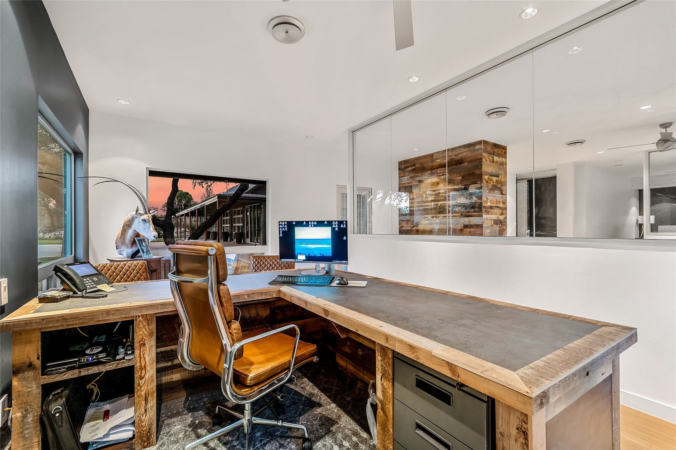 2606 RR 620 N is a truly distinctive property ideally located between Lakeway and Steiner Ranch, offering a rare blend of luxury, functionality, and future potential. Originally built as the caretaker’s home for a 50-acre waterfront estate, the property was completely reimagined in 2017 into a high-design, luxury office space that has served as a corporate headquarters. This thoughtfully transformed space serves as a refined environment for daily operations, client entertainment, and private events. Set on a gated one-acre lot within Austin’s ETJ in western Travis County, the property offers unmatched flexibility and a wealth of future possibilities. Its prime frontage on RR 620 ensures excellent accessibility and privacy, making it ideal for continued use as a boutique office, creative agency headquarters, wellness retreat, hyper-unique co-working space, luxury short-term rental, private estate, or hospitality/event venue concept. The property encompasses approximately 2,990 square feet of interior space across two beautifully designed structures. Building 1 currently serves as the principal’s office and features a welcoming foyer, two private offices, a conference room, full kitchen, mud room, private bathroom with shower, and generous closet and storage space. Building 2 includes a receptionist desk, reception lounge, copy room, four private offices, co-working space, second conference room, kitchen, and two private bathrooms. Design and craftsmanship are evident throughout, with bespoke finishes, custom millwork, architectural detailing, and thoughtful landscaping that reflect a commitment to quality and aesthetics. Outside, the property is enhanced by an in-ground pool, hot tub, lush landscaping, and ample parking—all fully fenced and gated. Whether you're looking to make a bold statement for your business or seeking a flexible property with creative potential, 2606 RR 620 N offers a rare and refined opportunity in one of Austin’s most desirable corridors.