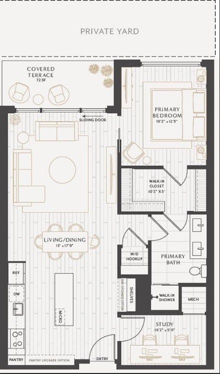 Discover the perfect blend of luxury and convenience at One Oak Condominiums! This unique unit offers an end-unit private yard with direct creek views, ideal for relaxing or entertaining. Inside, you'll find premium finishes that define modern elegance and a well-designed layout featuring a spacious primary bedroom and a versatile second "flex" room—perfect as an office, guest space, or creative studio. Recently completed, One Oak boasts top-tier craftsmanship in a prime Austin location. Don't miss the chance to call this exceptional residence home. Don't miss the chance to call this exceptional residence home. Bosch appliances, Kohler hardware, Italkraft cabinetry, Levolour top down/bottom up cellular shades, and more!