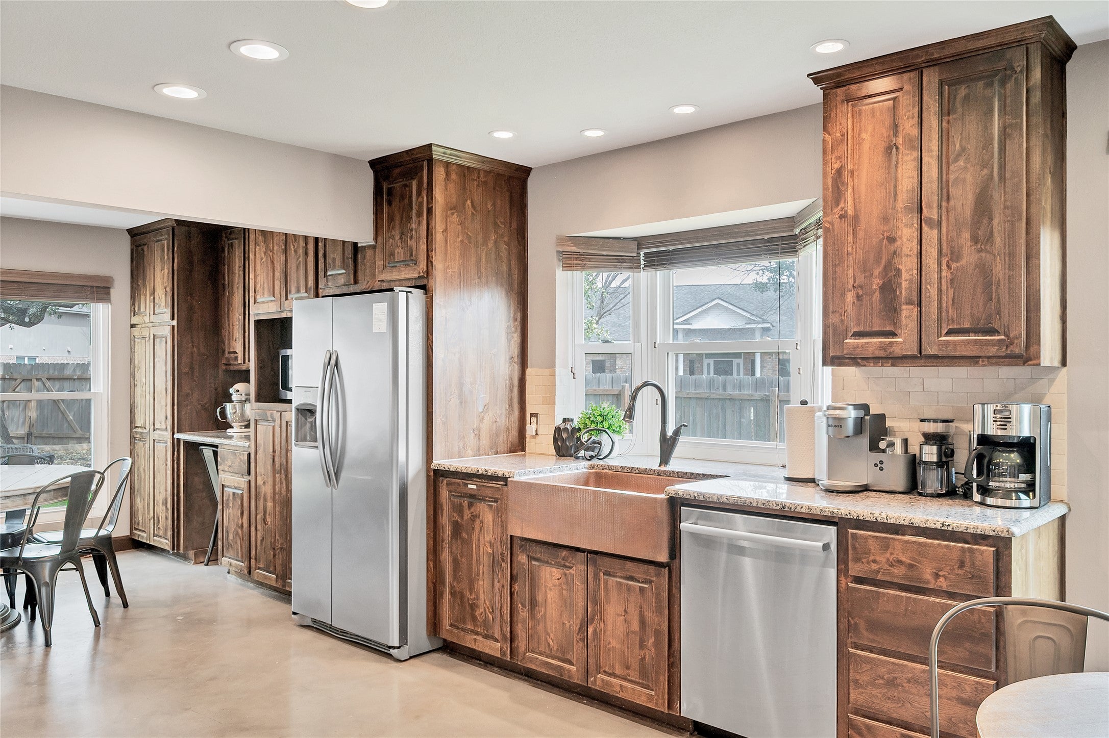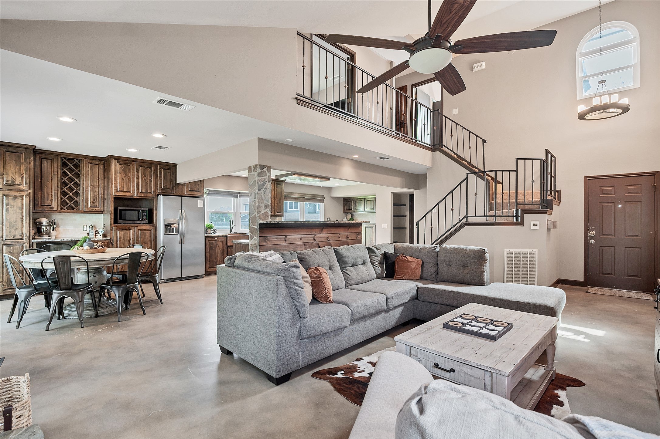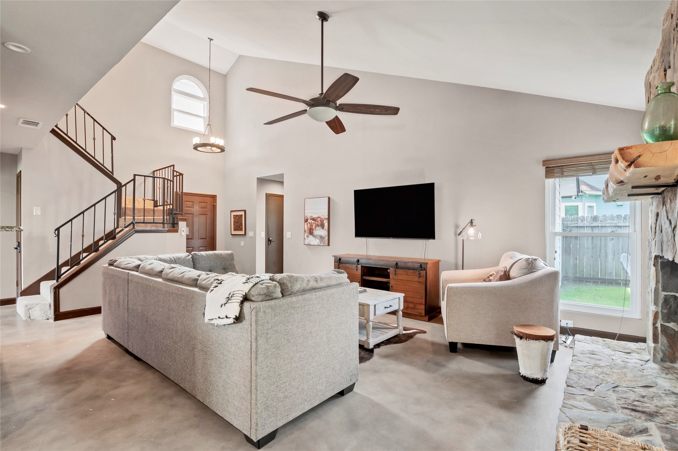 Beautifully maintained and professionally designed, this Cedar Park home sits on a quiet corner cul-de-sac lot and offers comfort, style, and flexibility. Whether you're seeking a short-term lease or a potential long-term investment, this 3-bedroom, 2.5-bath residence with a dedicated home office is an exceptional opportunity. Thoughtful upgrades include stained concrete floors, copper sinks, custom-built cabinetry, and high-end appliances. The open-concept living area features a dramatic 70” ceiling fan and flows seamlessly into a spacious kitchen and dining area—perfect for entertaining. The primary suite offers a frameless glass shower, granite countertops, and a stylish custom cabinet housing the washer and dryer. Outdoors, enjoy a fully fenced backyard retreat with a hot tub, BBQ area, fire pit, and a versatile 17’x25’ workshop/storage shed. Located in a prime Cedar Park neighborhood within Leander ISD, this home provides easy access to top schools, major employers, shopping, dining, and nature trails.